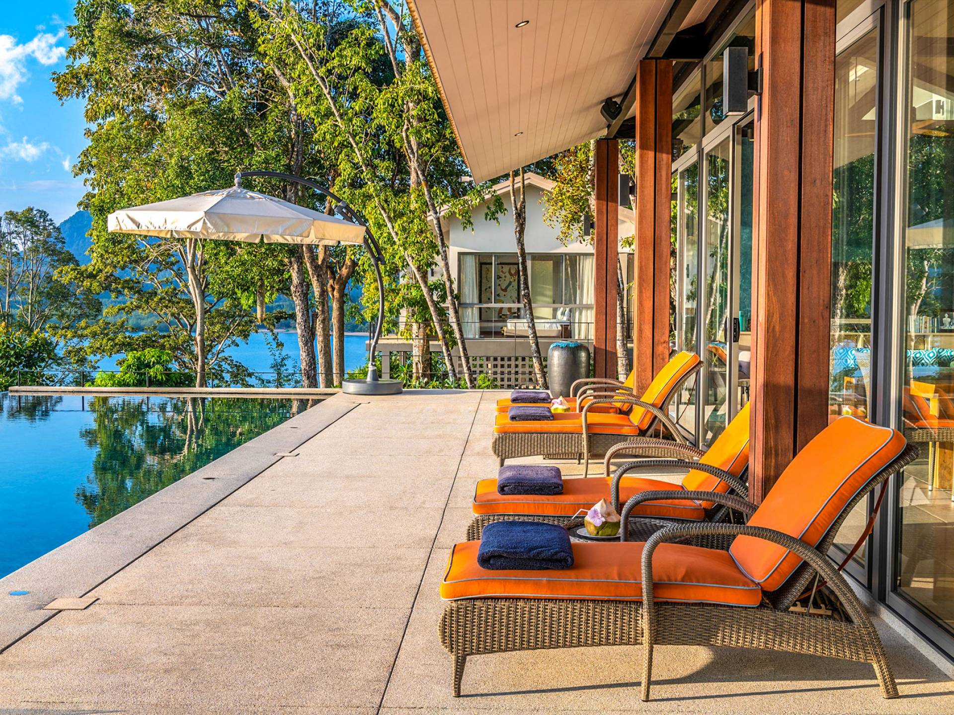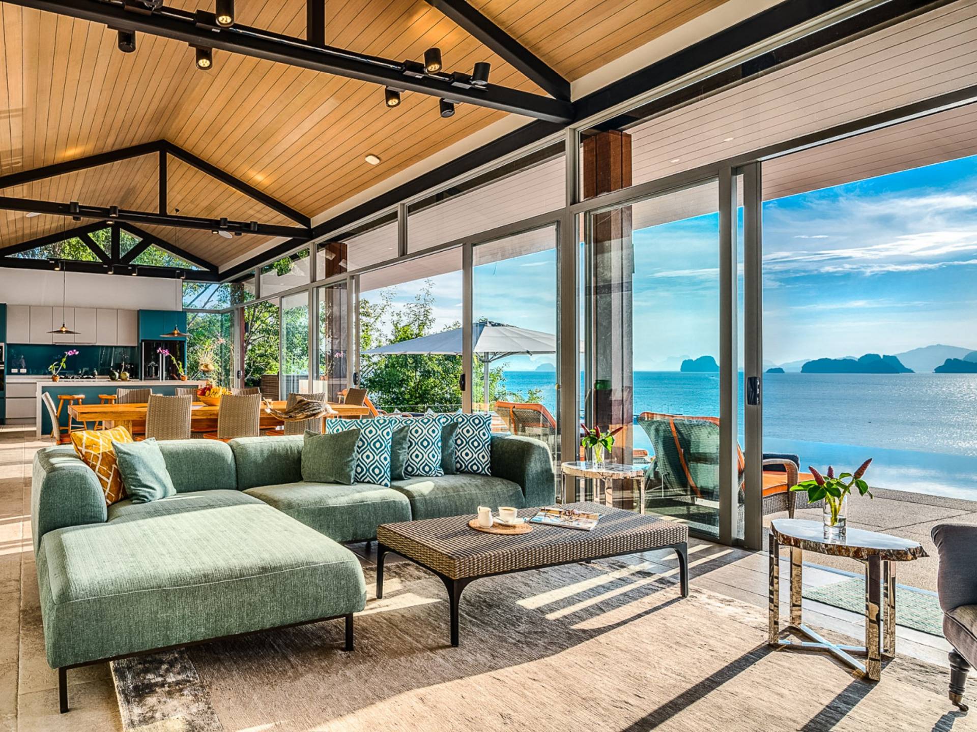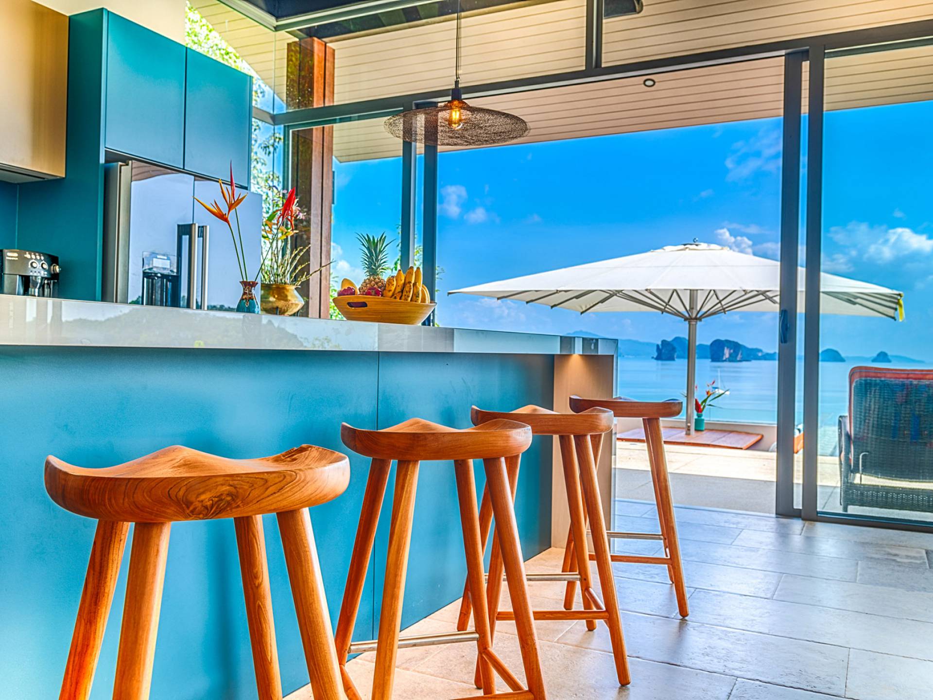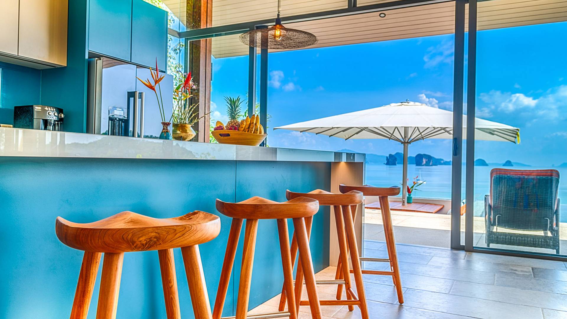 The 15m long infinity pool sets the stage for the stunning backdrop of Phang Nga Bay. Relaxing here is almost mandatory and guests can enjoy one of the sunbeds or the comfortable sofas in the sunken sala. For those up early, the sun rises directly over the water reflecting and casting beautiful hues of gold to frame each morning. A modern kitchen and dining room allow meals to be prepared in-house as desired, and the dedicated villa staff will ensure the villa is always stocked with your favourite cold drinks and foodstuffs.