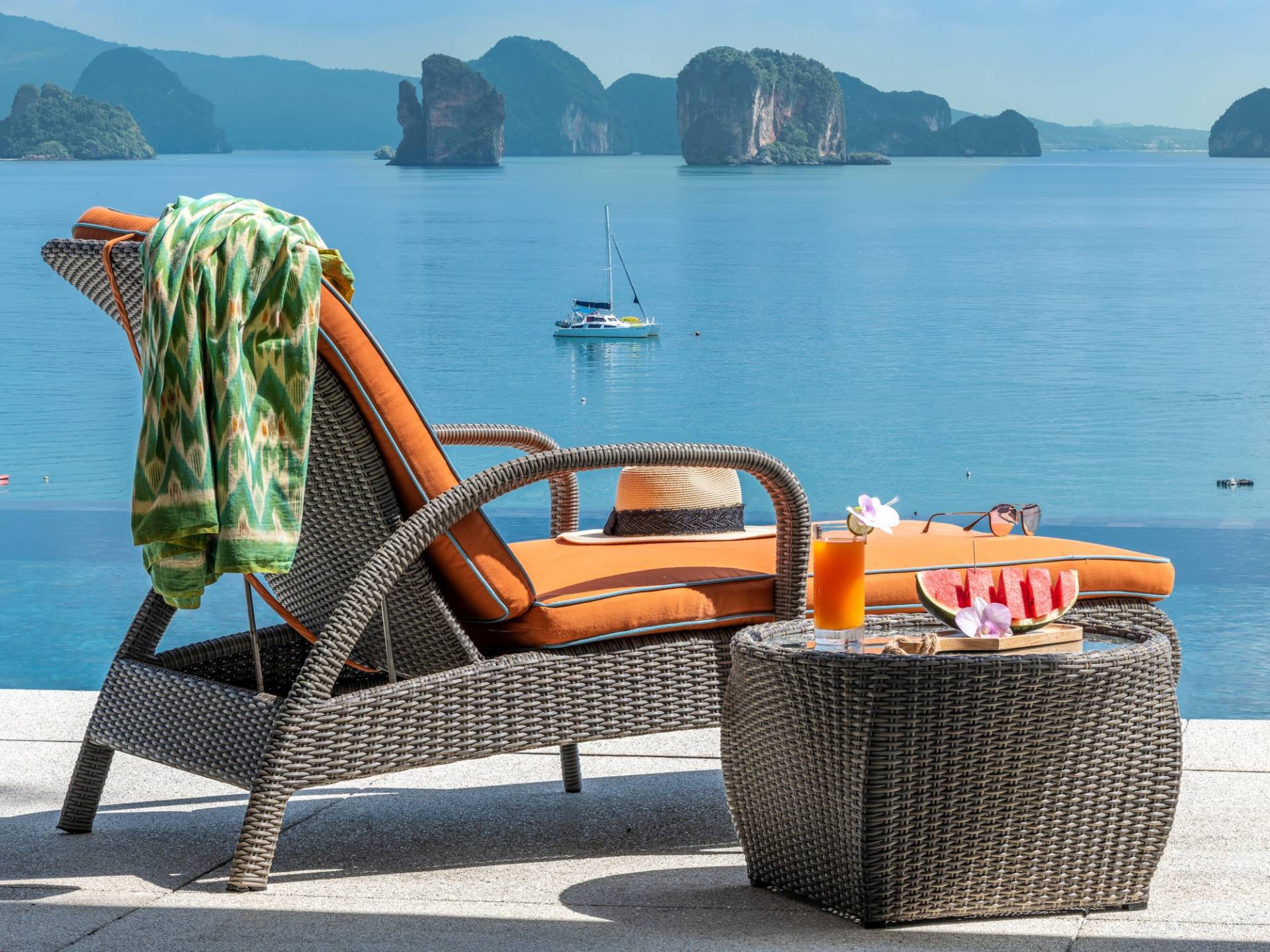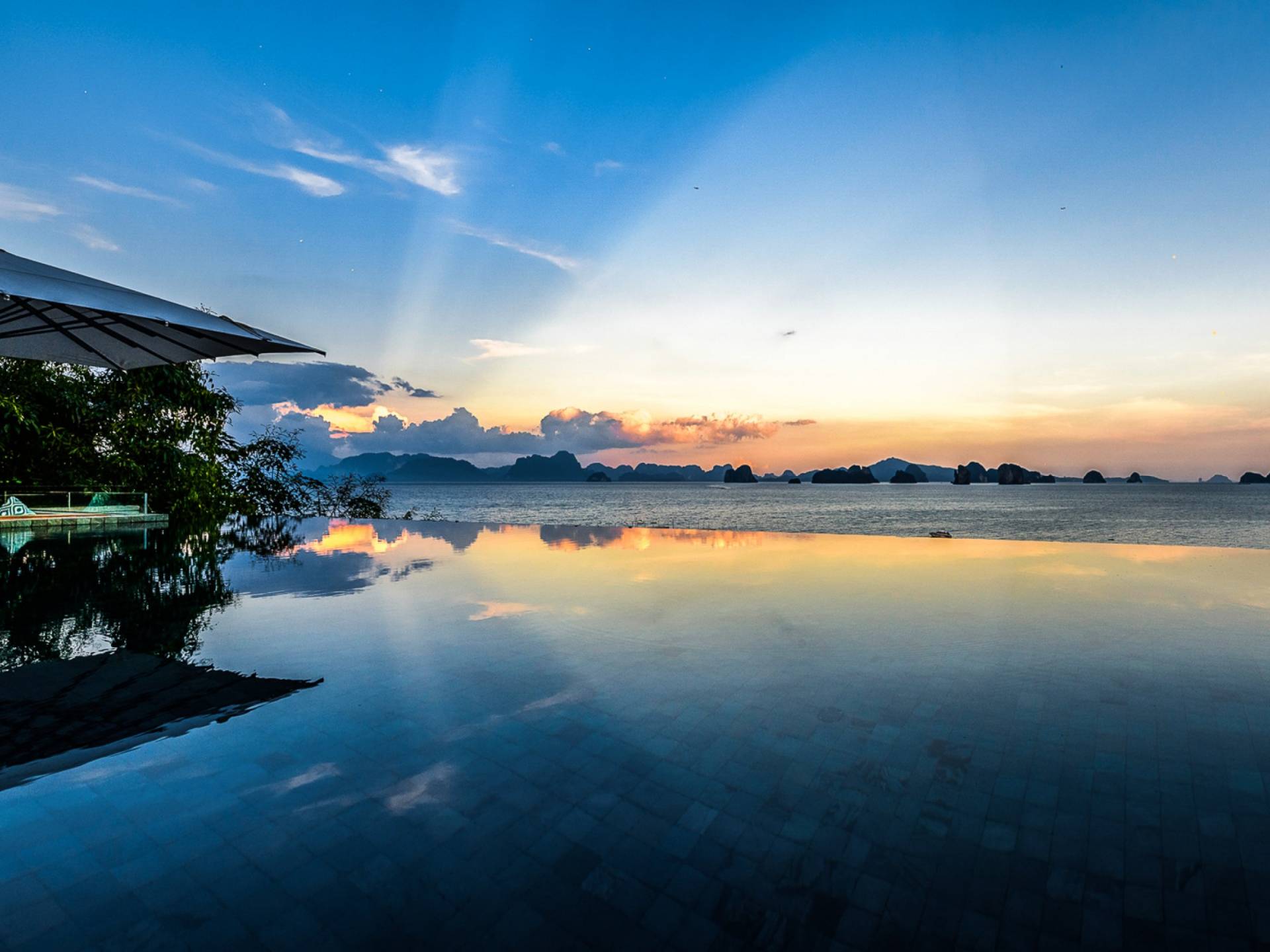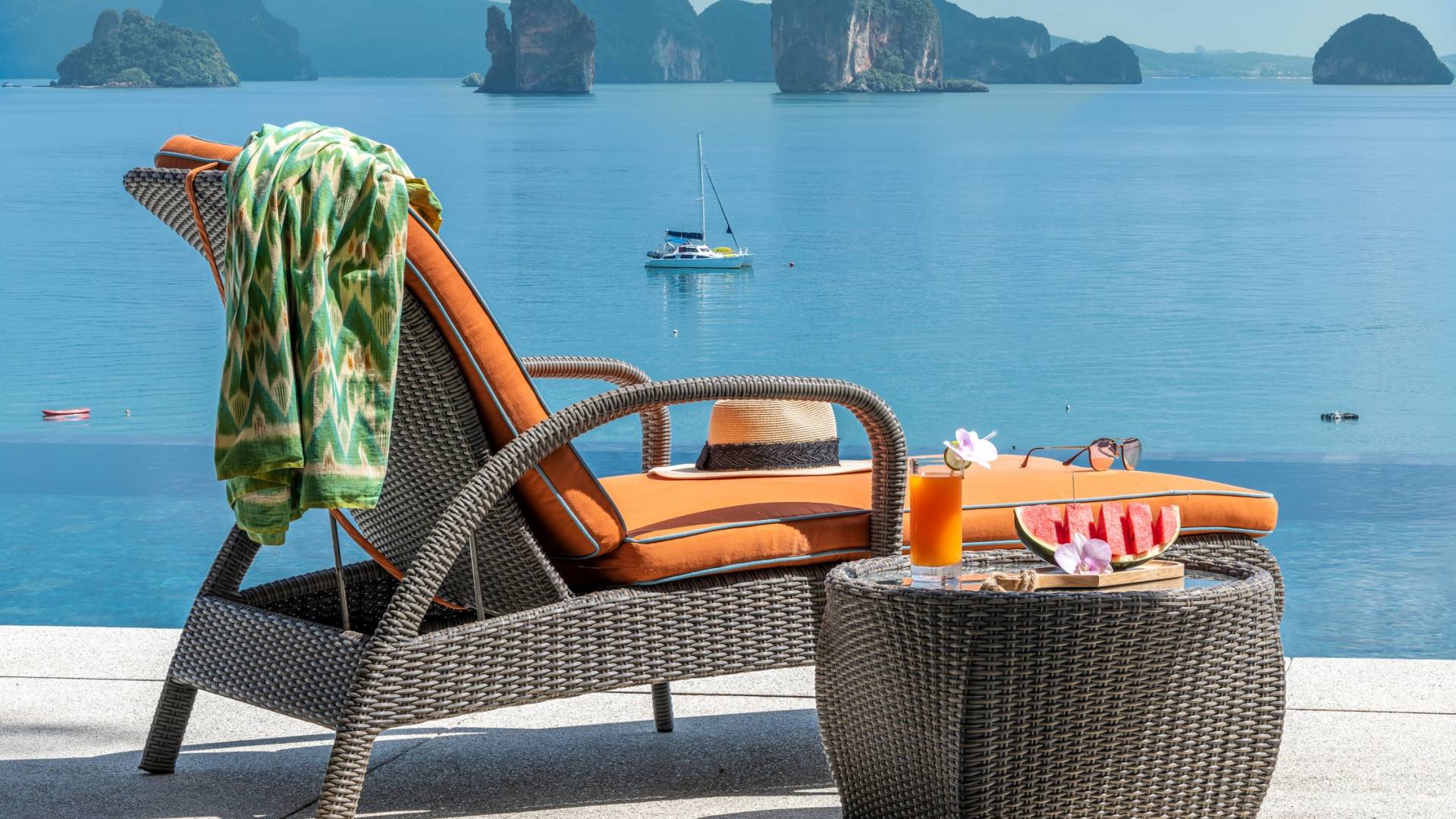The 15m long infinity pool sets the stage for the stunning backdrop of Phang Nga Bay. Relaxing here is almost mandatory and guests can enjoy one of the sunbeds or the comfortable sofas in the sunken sala. For those up early, the sun rises directly over the water reflecting and casting beautiful hues of gold to frame each morning. A modern kitchen and dining room allow meals to be prepared in-house as desired, and the dedicated villa staff will ensure the villa is always stocked with your favourite cold drinks and foodstuffs.