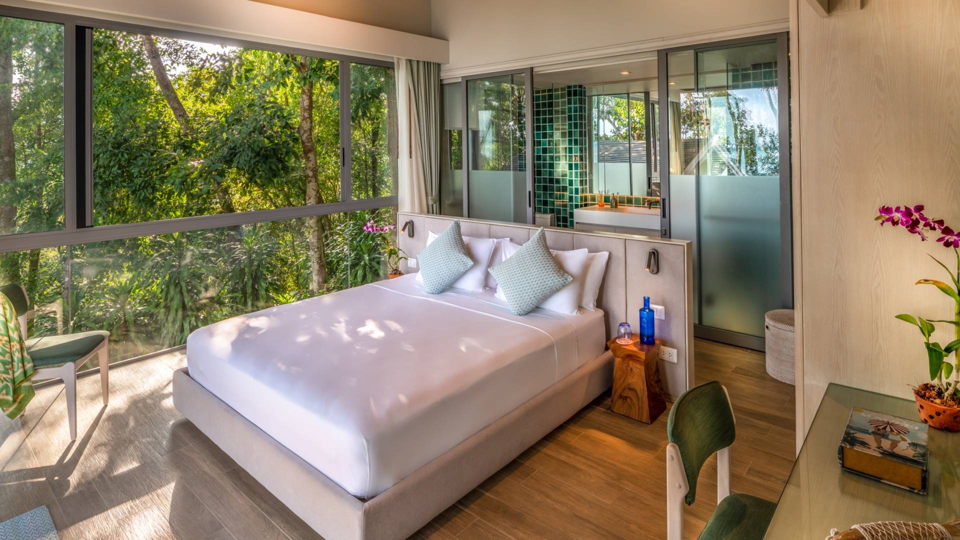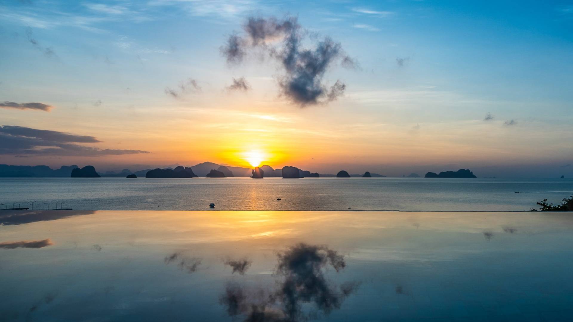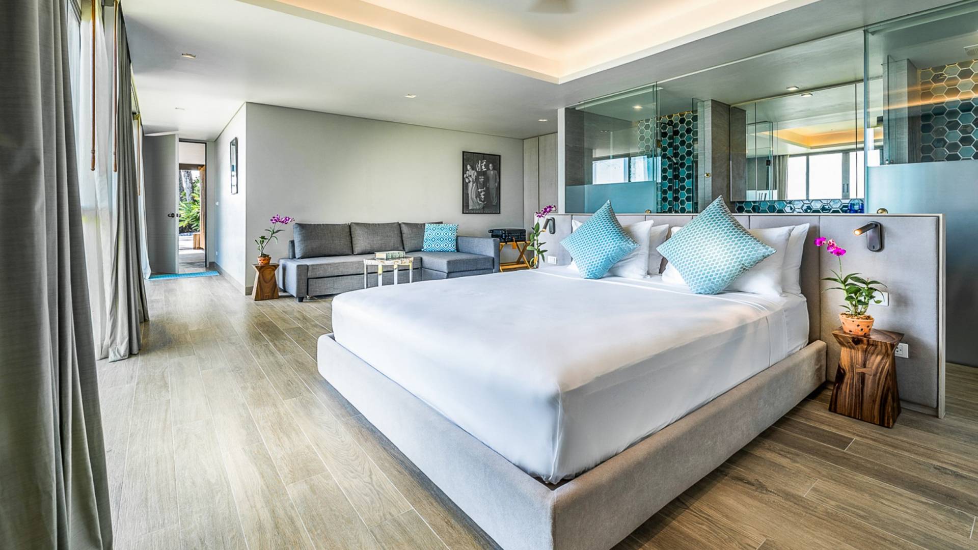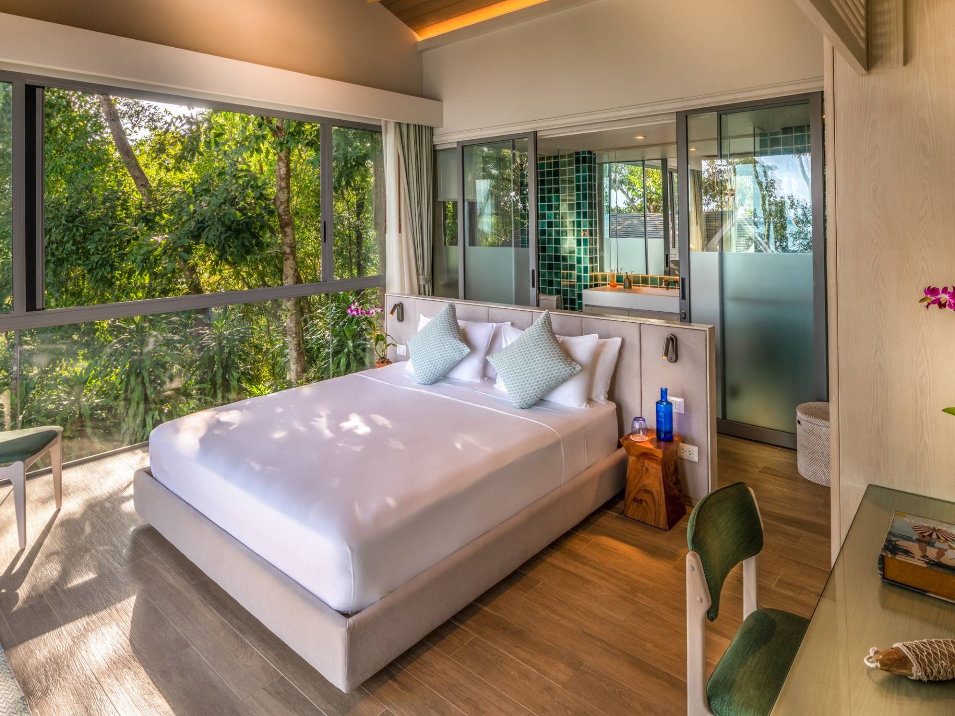 The 15m long infinity pool sets the stage for the stunning backdrop of Phang Nga Bay. Relaxing here is almost mandatory and guests can enjoy one of the sunbeds or the comfortable sofas in the sunken sala. For those up early, the sun rises directly over the water reflecting and casting beautiful hues of gold to frame each morning. A modern kitchen and dining room allow meals to be prepared in-house as desired, and the dedicated villa staff will ensure the villa is always stocked with your favourite cold drinks and foodstuffs.