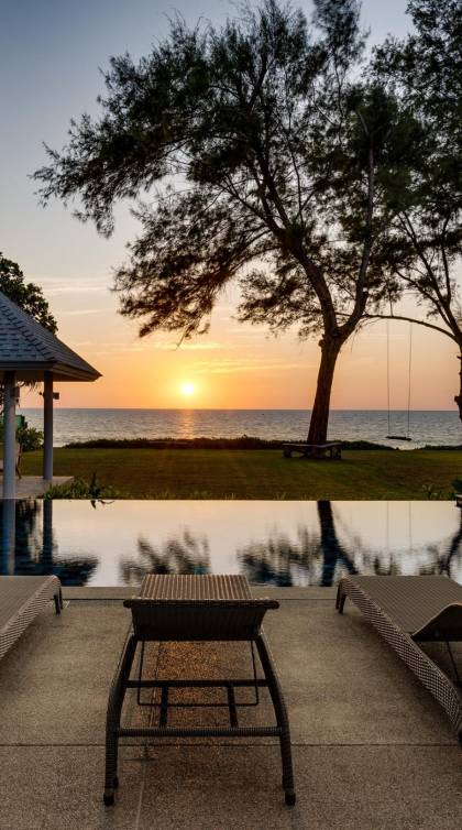 Concerning outdoor activities, you can paddle out in the villa’s kayaks to explore the spectacular Andaman coastline, take a walk along the near-deserted 10km beach, cycle among the coconut groves of the rural Thai landscape, or simply relax with a drink in your hand and watch the fiery tropical sunsets from the poolside gazebo. Evenings spent lazing by the pool, barbequing, or playing beach volleyball will be absolutely remembered forever.