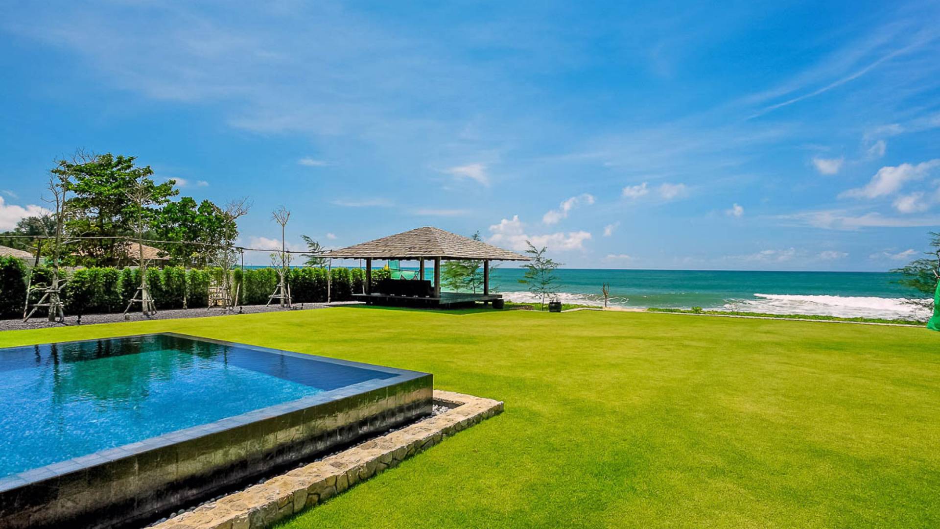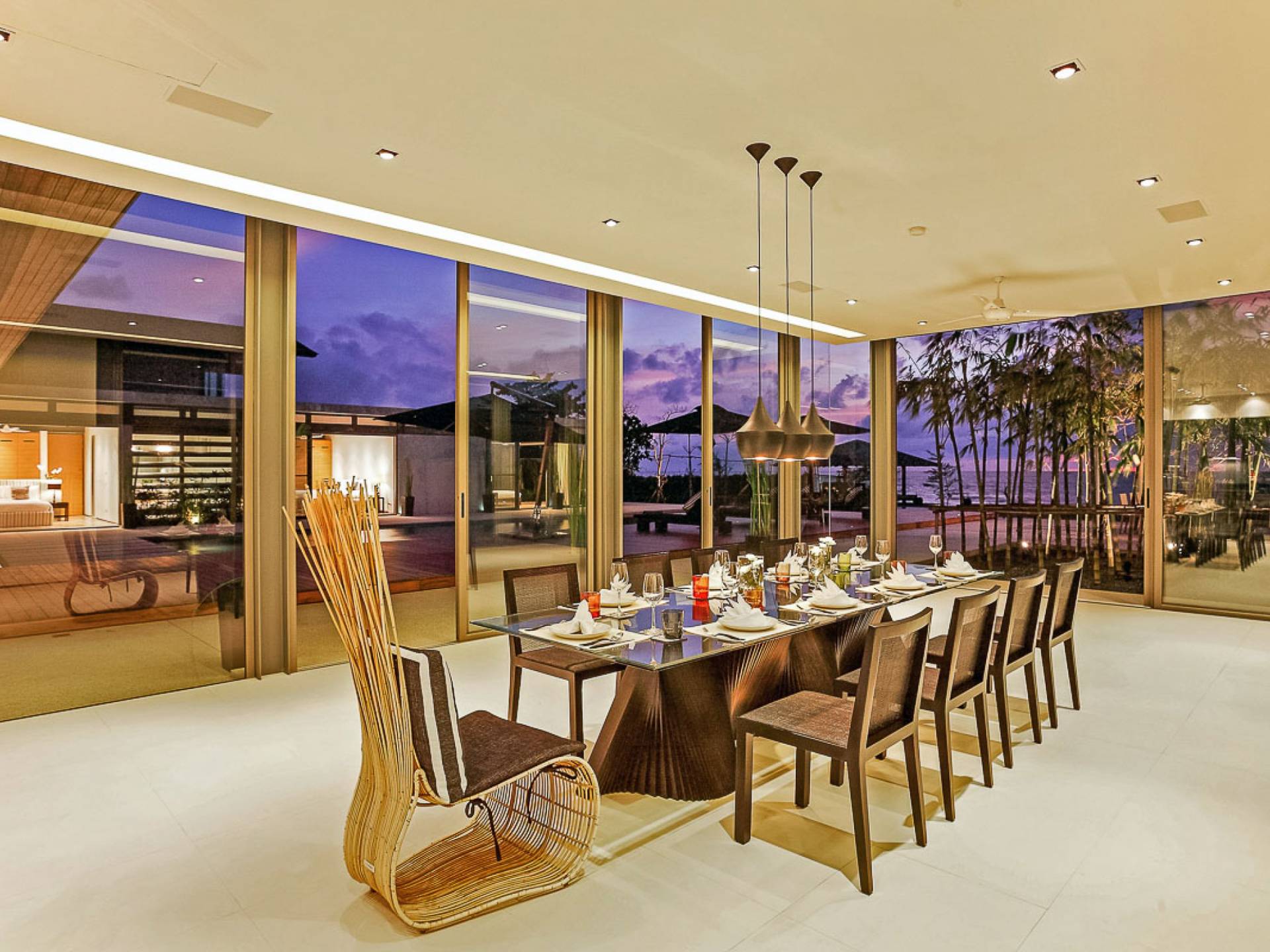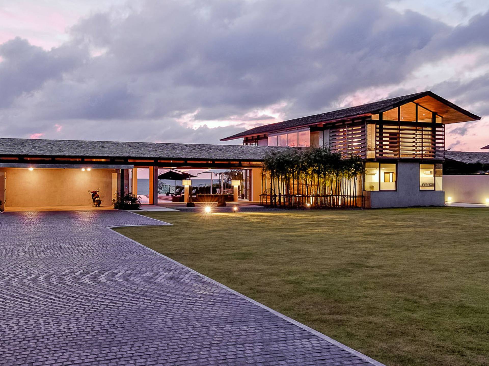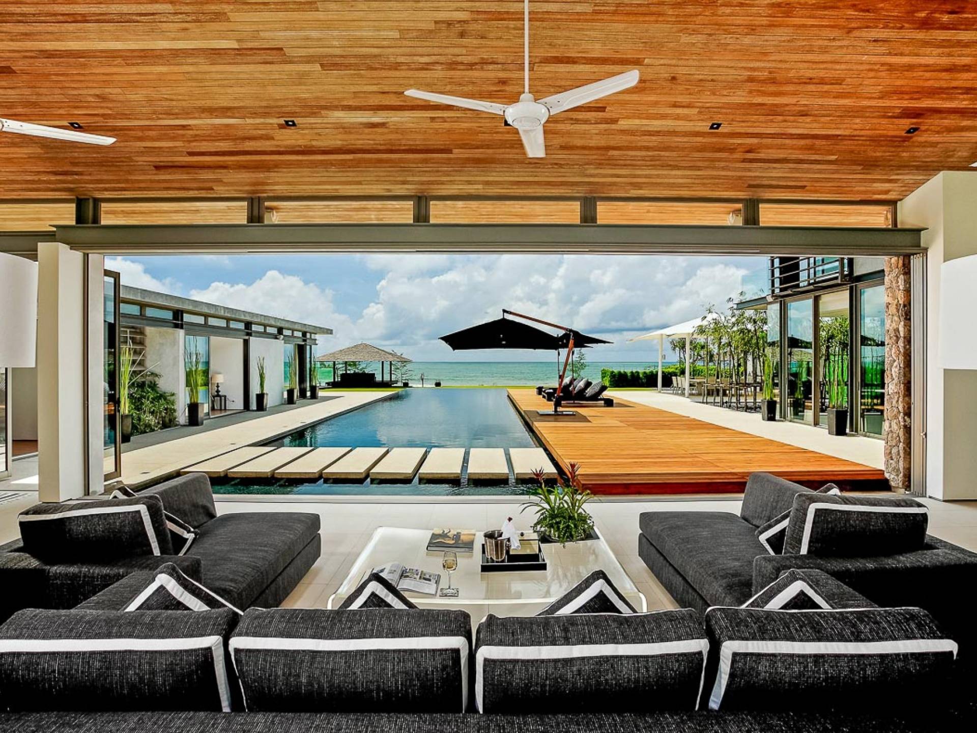 With almost an acre of beachfront land to play on, Villa Essenza is an outdoor lover’s dream home. Cool down and relish the sea views from the enormous infinity pool, then soak up the sun on one of the sun loungers that line the stylish deck. Perfect for events or informal family gatherings, the barbeque dining area is comfortably shaded by a canopy. On the beachfront lawn is a peak-roof sala offering prime sea views, while sports enthusiasts can make use of the villa’s volleyball and football equipment on the large lawn to the rear of the villa.