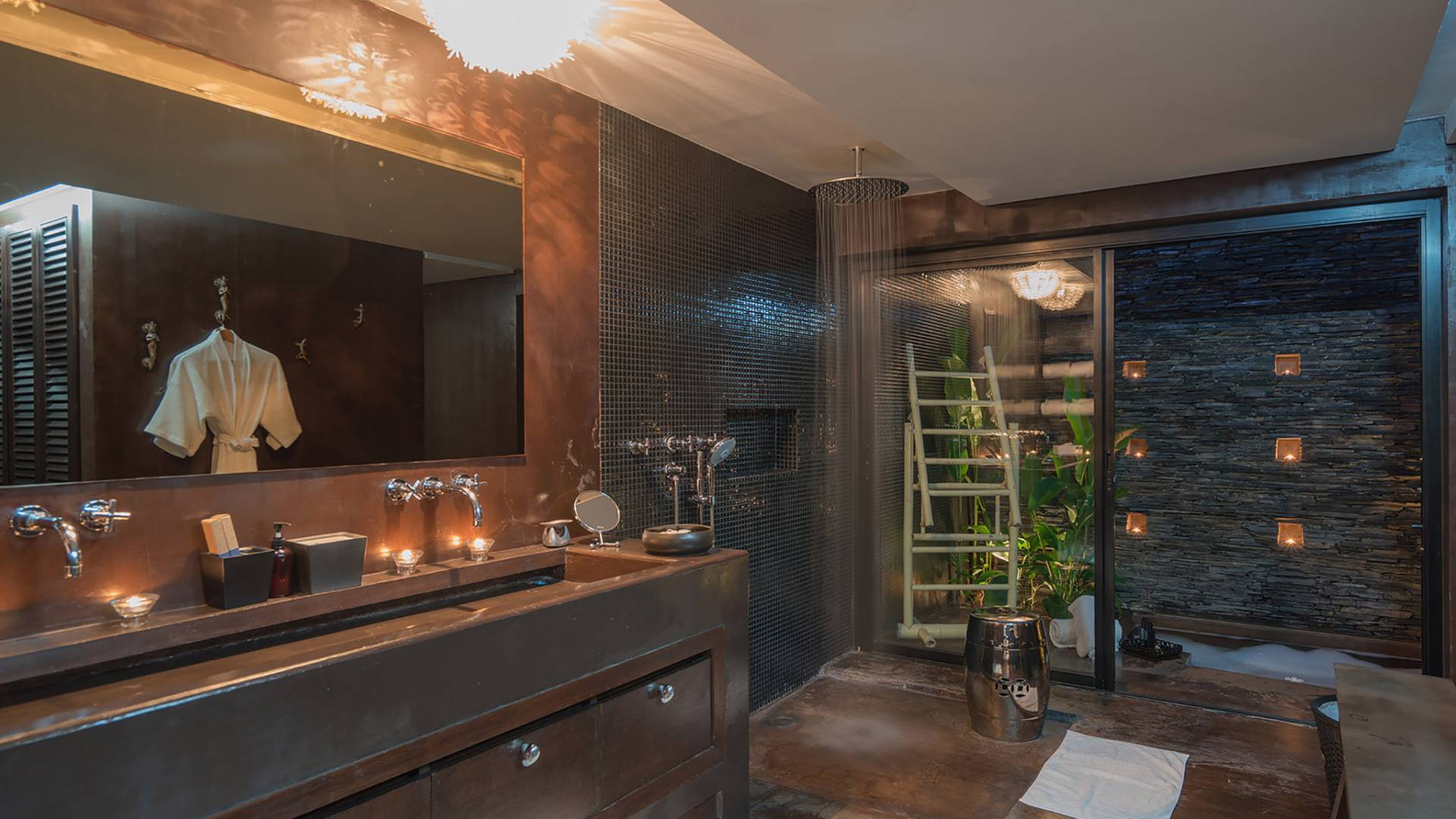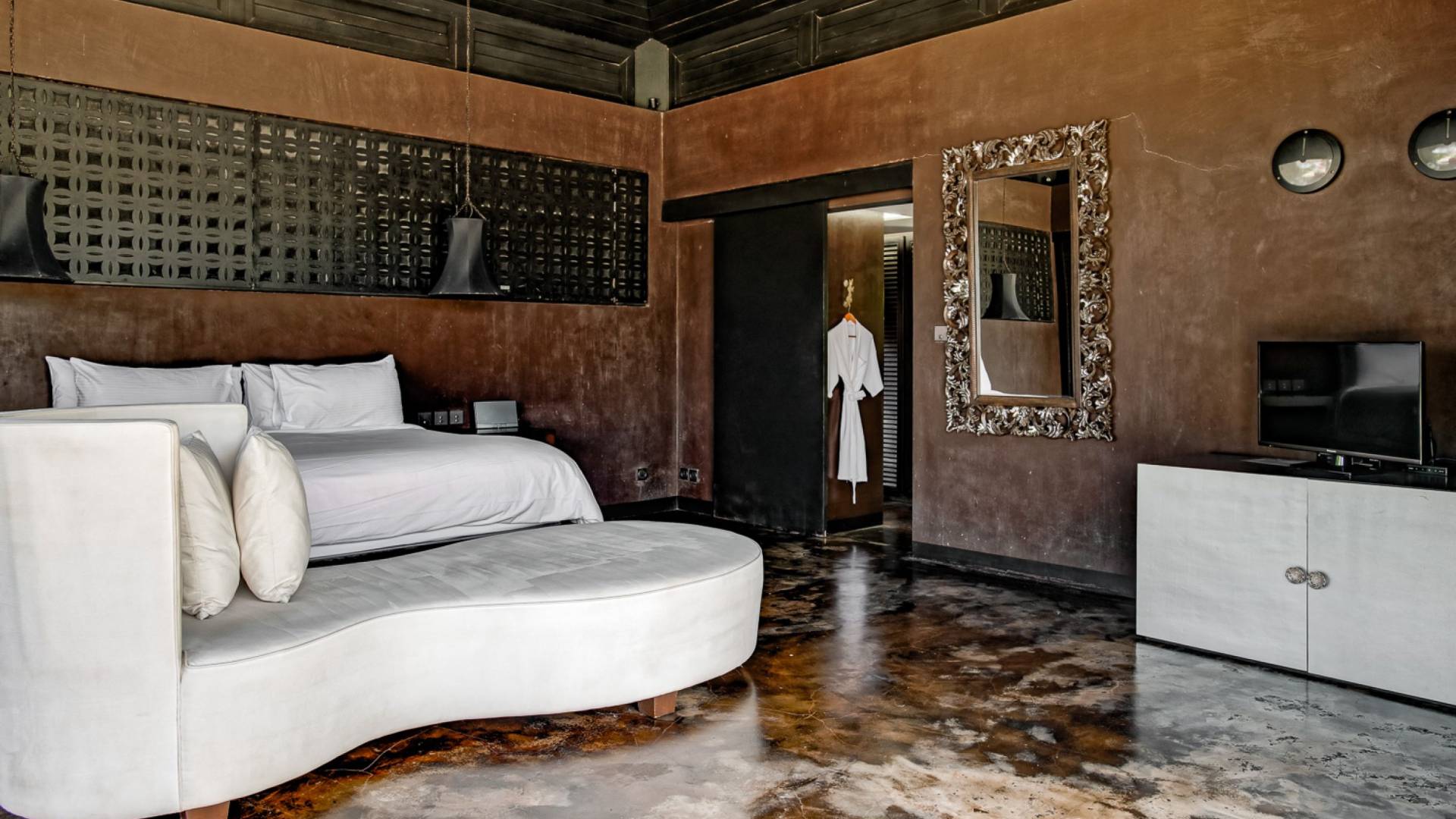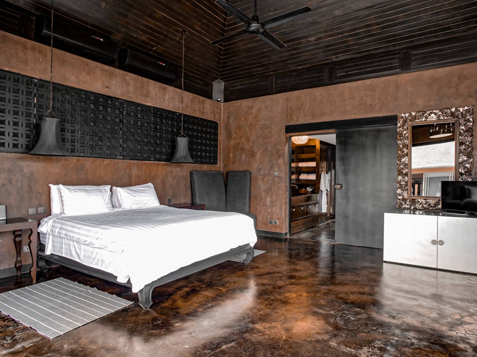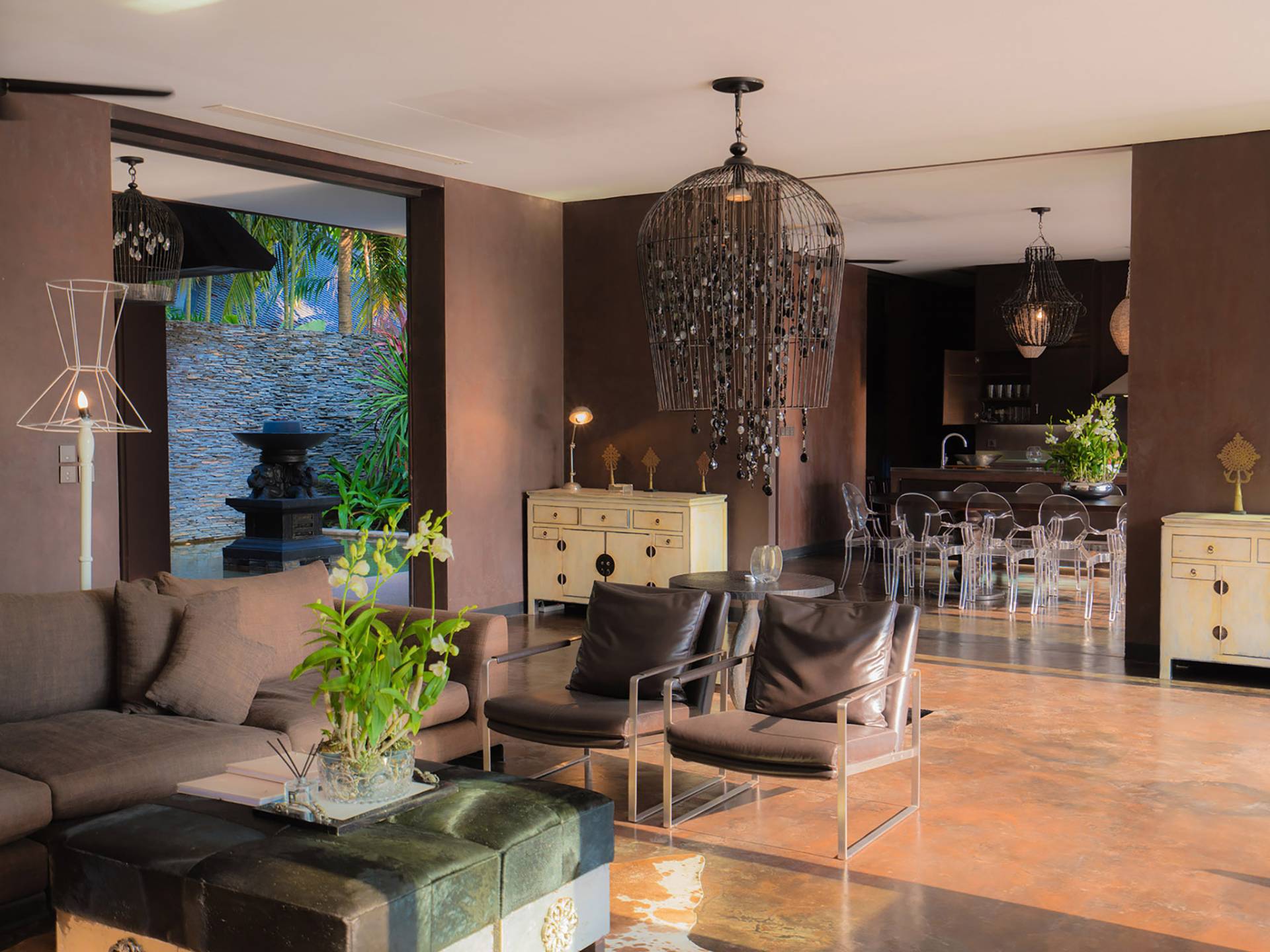 The living and dining spaces are absolutely magnificent. Two enormous private infinity pools – one with a Jacuzzi- and the shady tropical gardens with coconut palms create a majestic scenery you simply can’t enough of. Villa Saanti enjoys views to the west, over the azure waters of the Andaman Sea, giving its guests the chance to watch an exceptional show of colors when the idyllic sunsets reflect in the sea in the evenings.