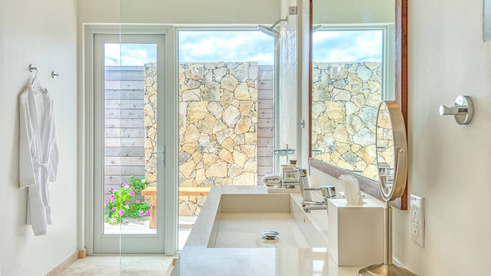 A private entry garden offers another option for outdoor enjoyment. Each bedroom features a private covered terrace and direct views of the Atlantic Ocean. Sailrock Resort is only 1.4 miles away, and guests of the Three-Bedroom Oceanfront Coral Villa are extended full access to the resort's amazing amenities such as secluded beaches, large infinity pool, full-service spa, fitness facility, fresh market, and fine dining options at the Great House Restaurant & Bar and The Cove Restaurant + Beach Bar.
