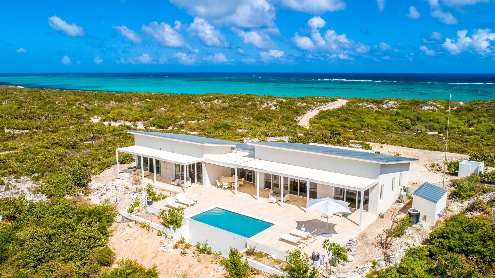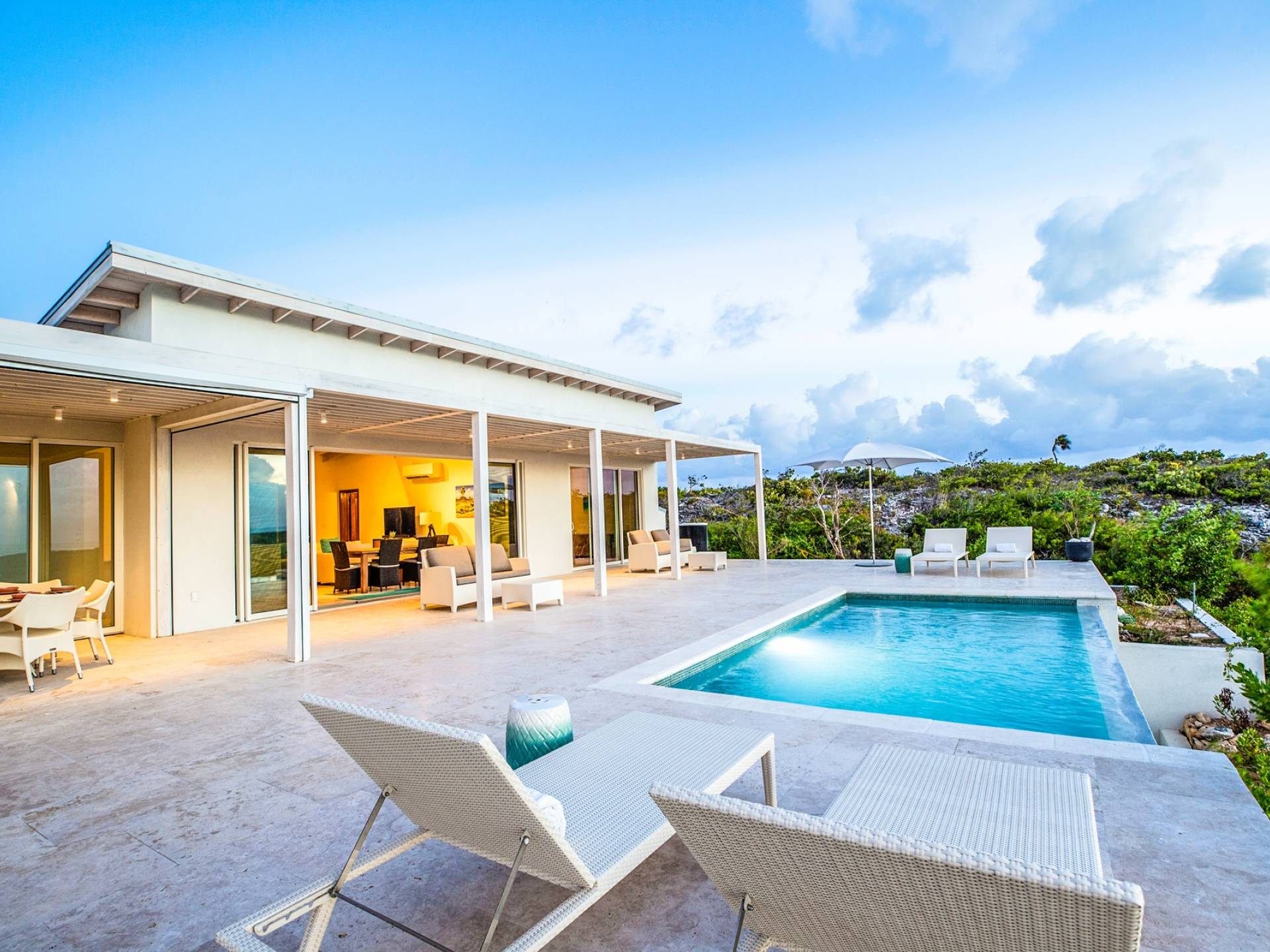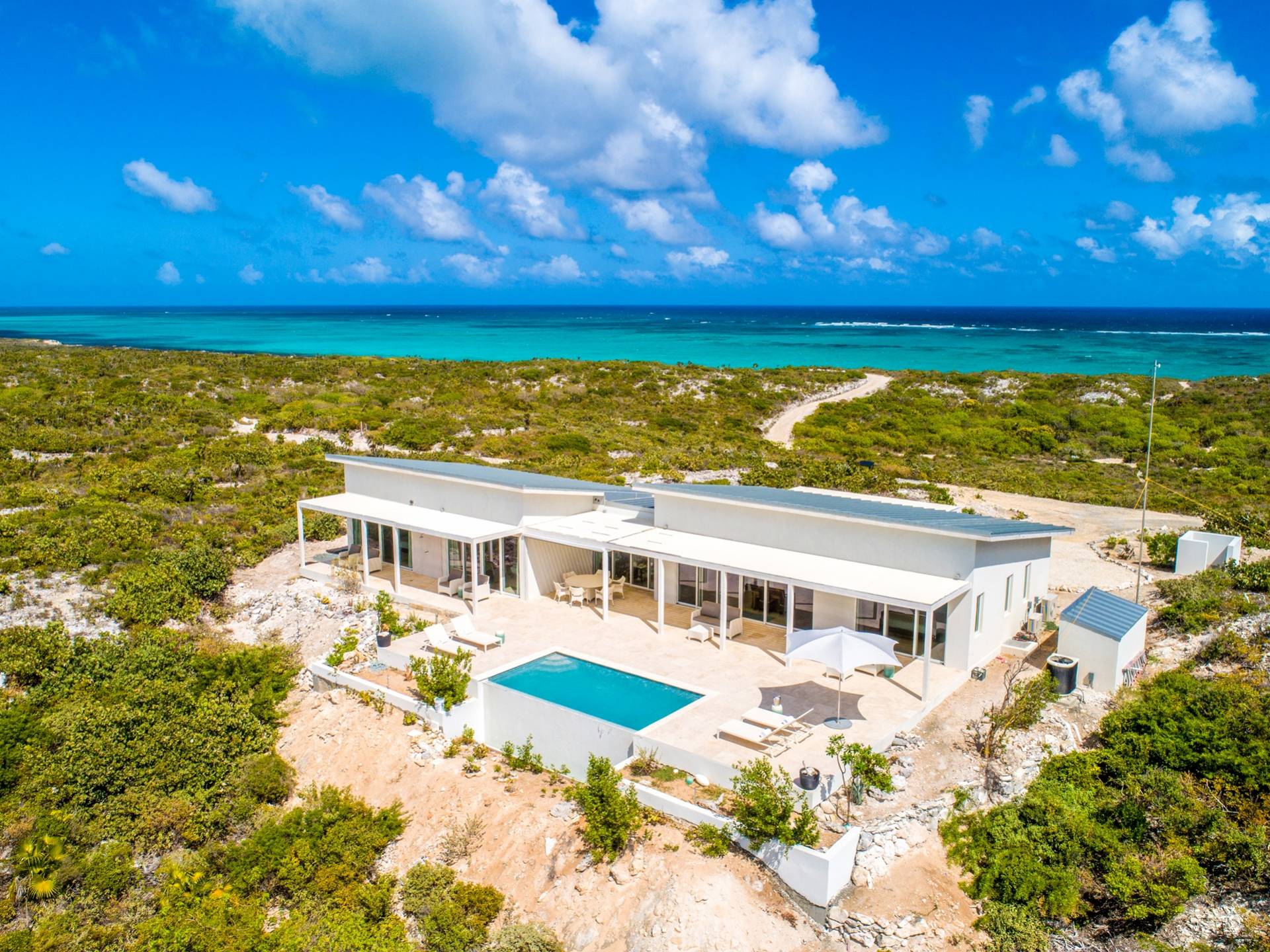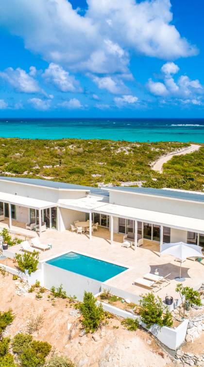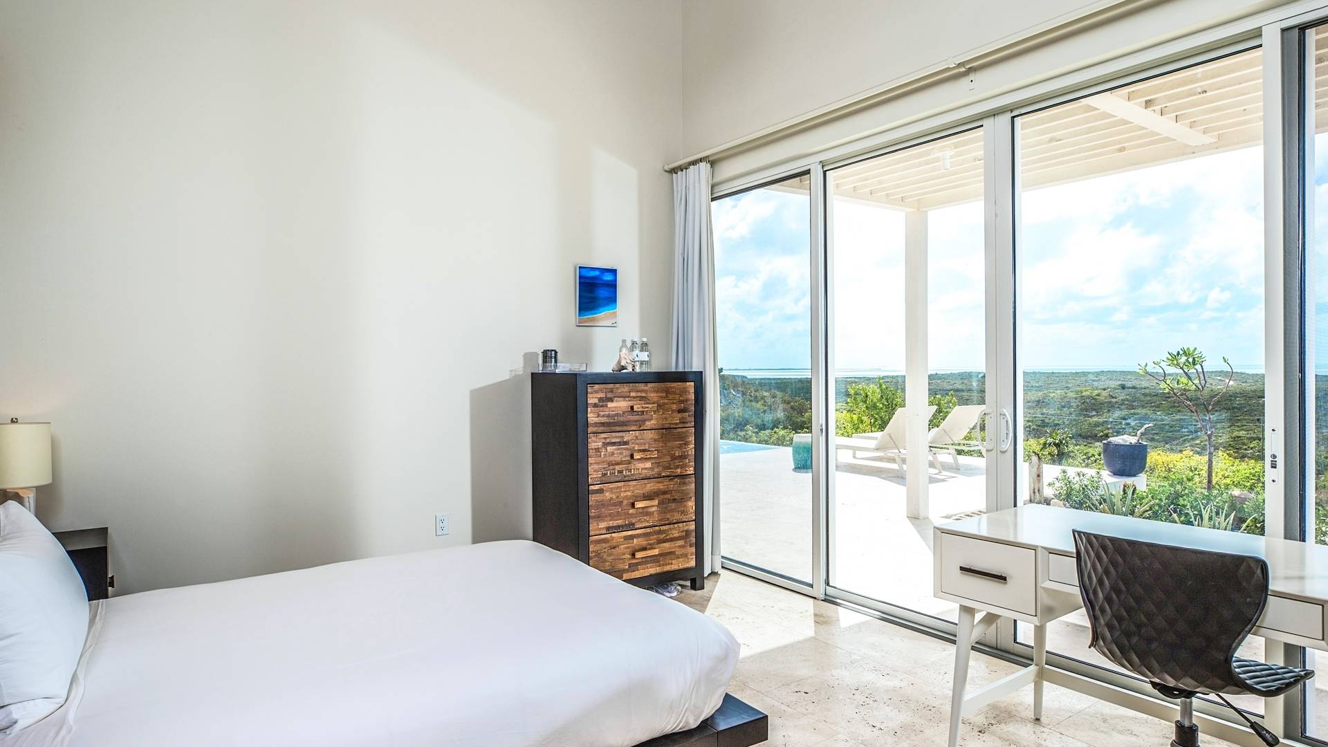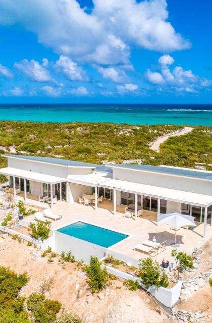 The Three-Bedroom Skyridge Villa, situated on the crest of the Sailrock Private Peninsula, allows a dazzling 360-degree panorama, all the while softly caressed by the Caribbean breezes. A very private setting yet only a short drive to Sailrock Resort with full amenities. Enjoy morning coffee on the east terrace as the sun comes up and tropical birds serenade. Three bedrooms (two King beds and 1 queen), all with a full en-suite, all with endless views of the multi-hued Caicos Banks can accommodate 6.