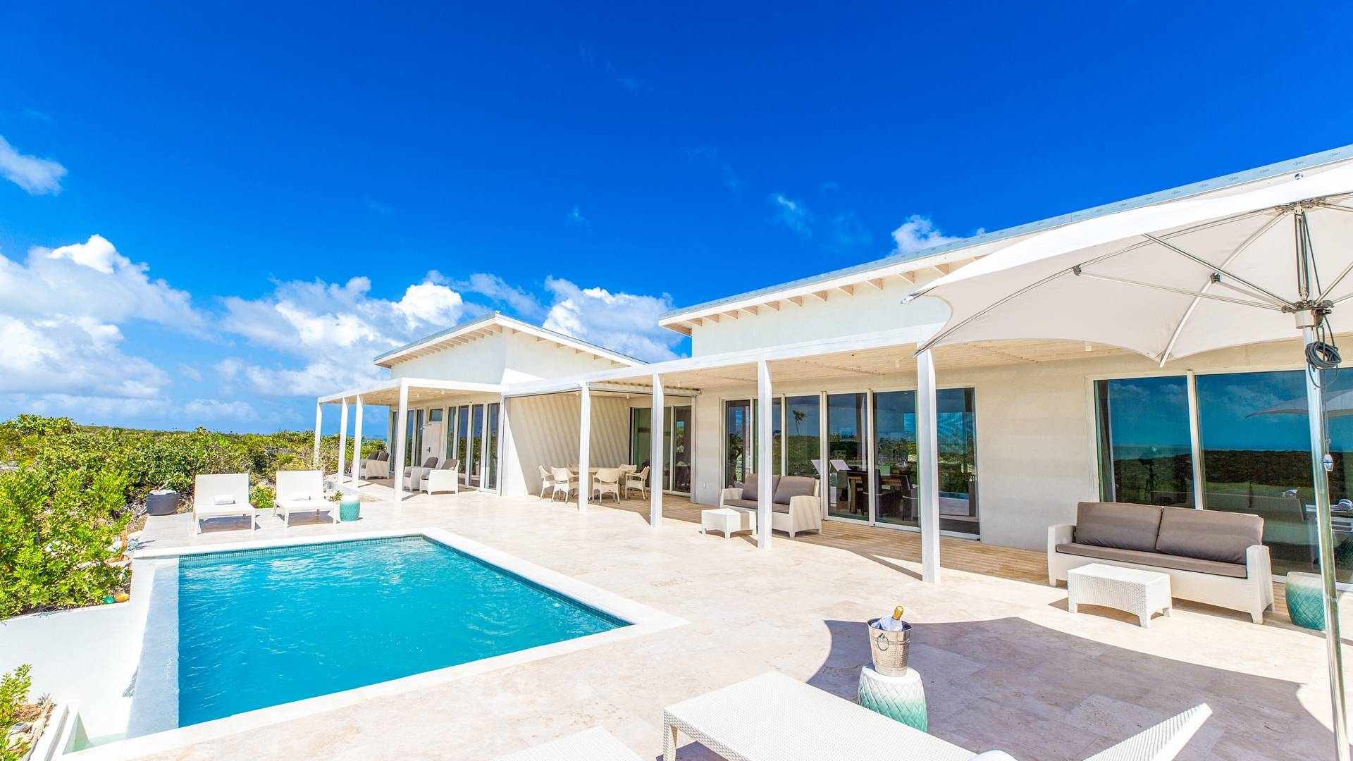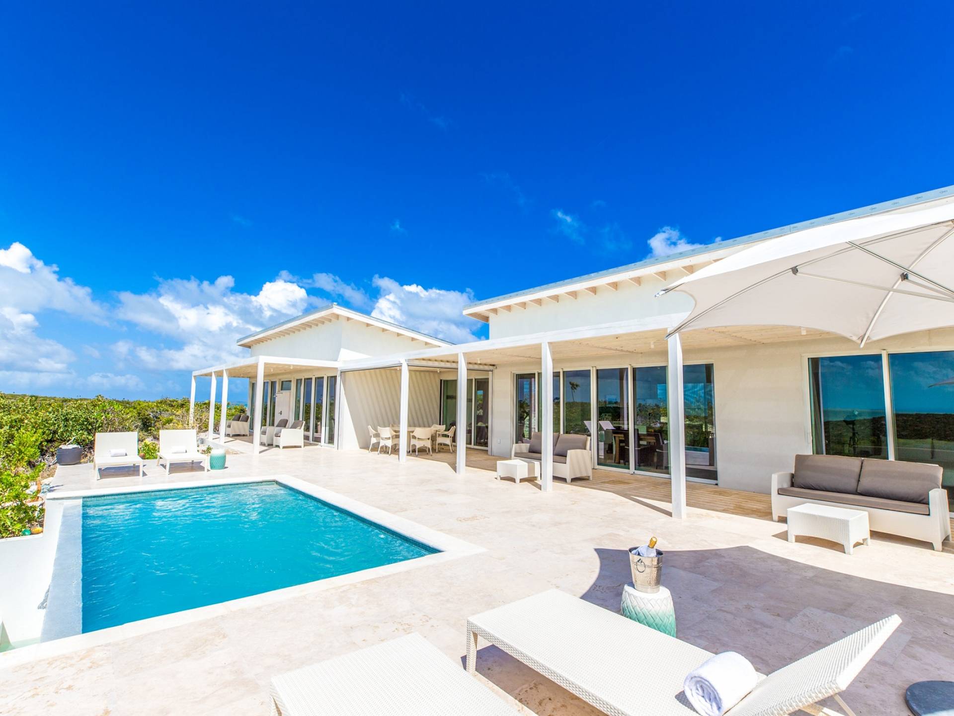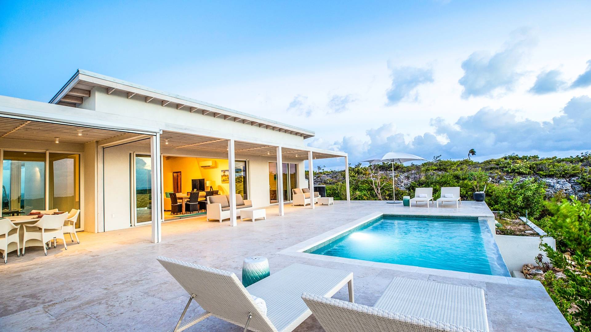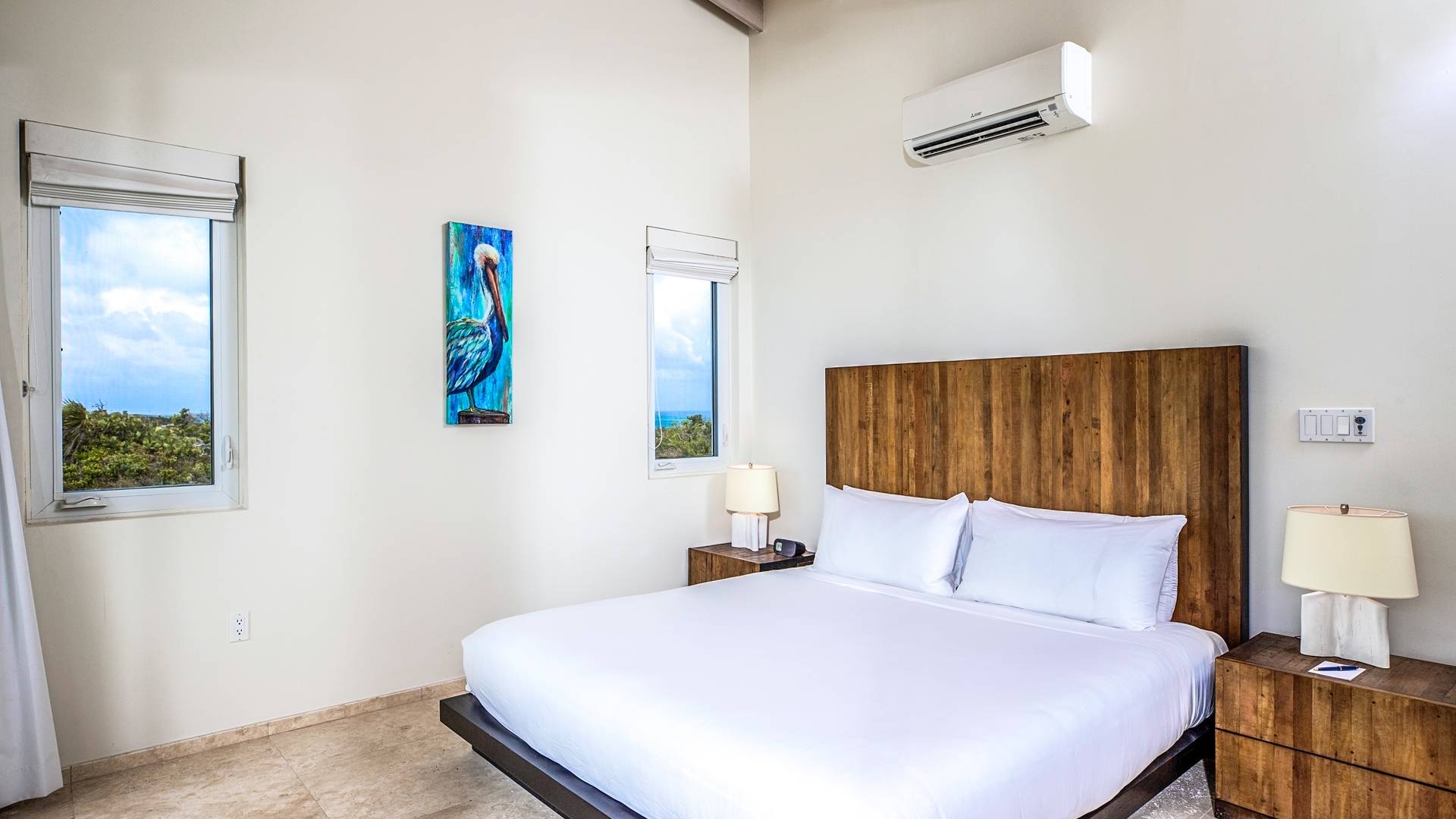 The Three-Bedroom Skyridge Villa, situated on the crest of the Sailrock Private Peninsula, allows a dazzling 360-degree panorama, all the while softly caressed by the Caribbean breezes. A very private setting yet only a short drive to Sailrock Resort with full amenities. Enjoy morning coffee on the east terrace as the sun comes up and tropical birds serenade. Three bedrooms (two King beds and 1 queen), all with a full en-suite, all with endless views of the multi-hued Caicos Banks can accommodate 6.