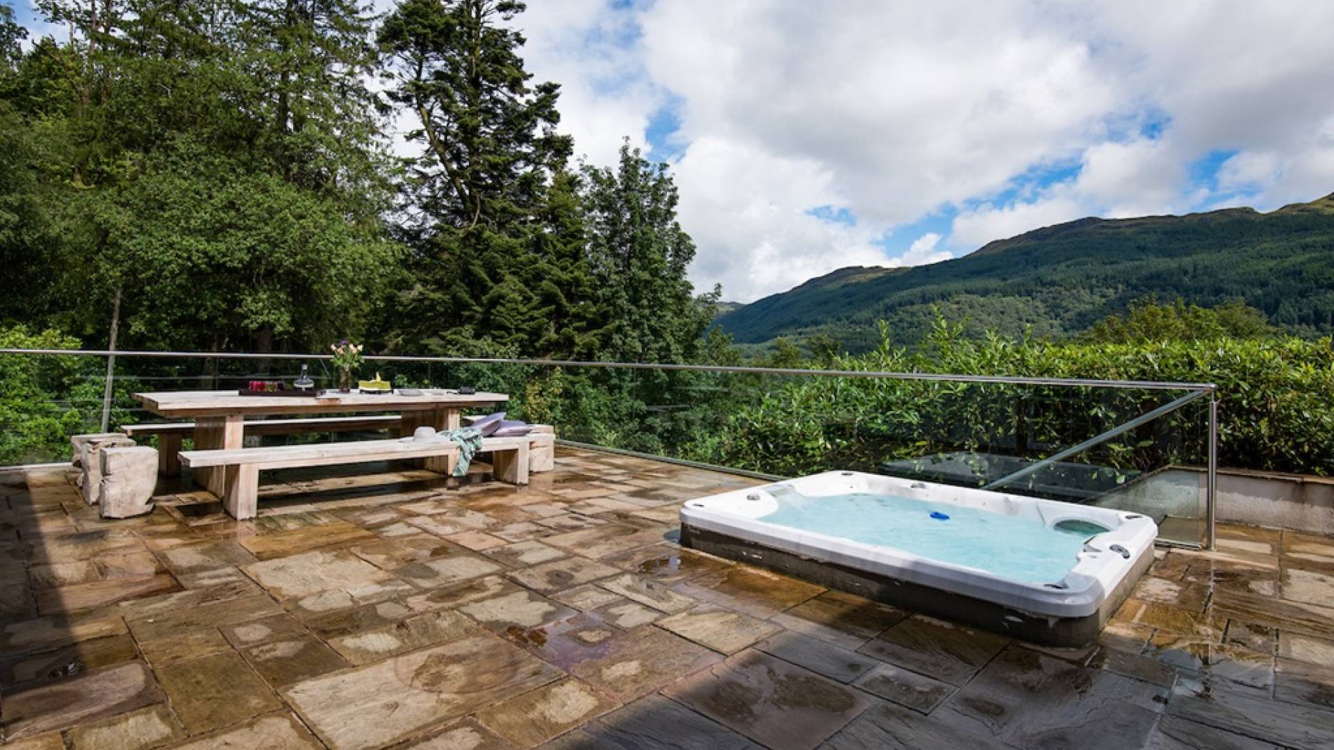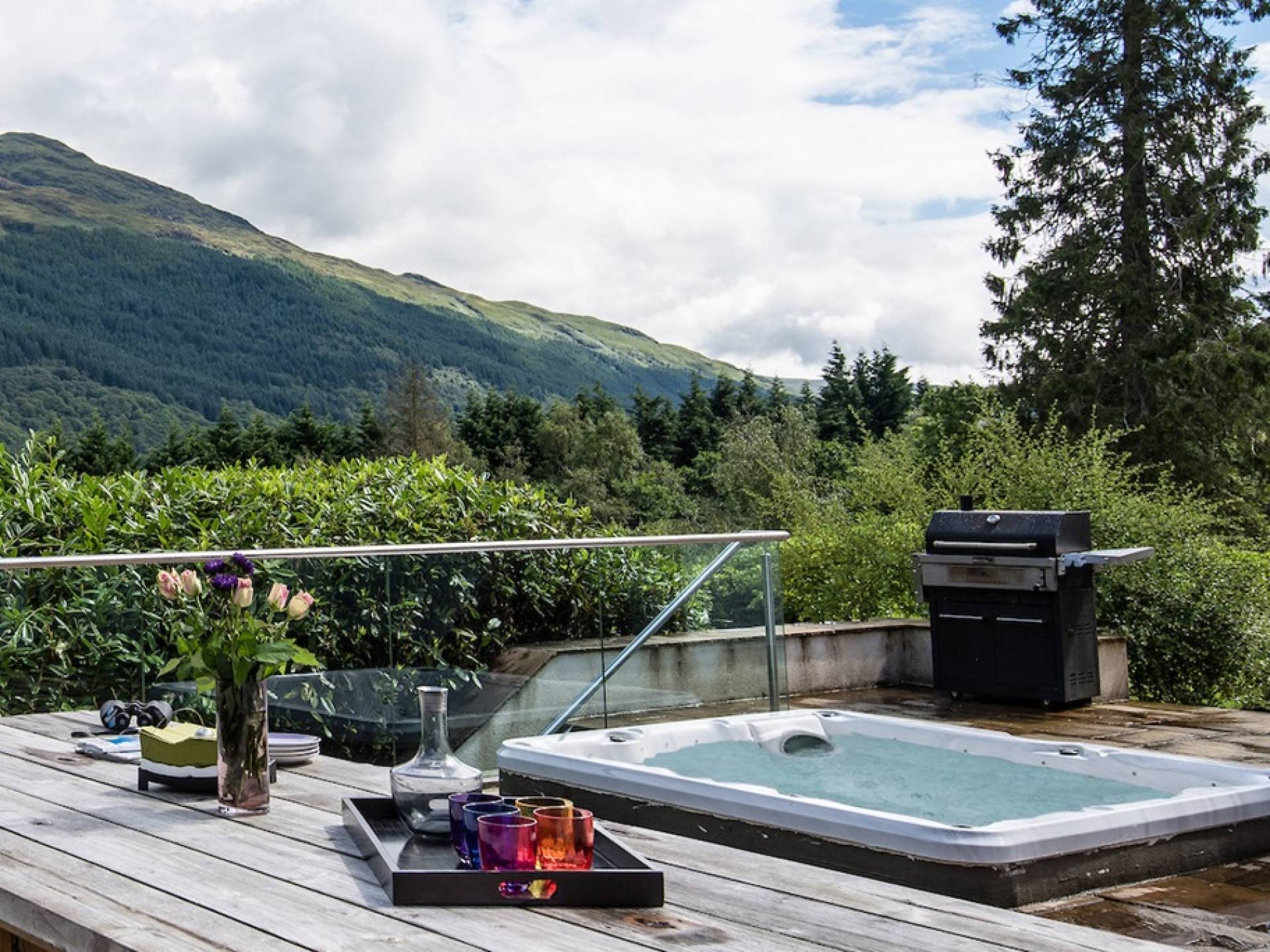 Stuckgowan Loch Lomond offers 9 bedrooms – 1 bedroom with an 8ft circular bed, 1 triple room, 2 double rooms with child’s day beds, 3 further double bedrooms, 2 twin rooms and 6 Bathrooms/shower rooms. All luxury linen and towels are provided. Outdoor Space offers a large terrace with outside dining and a 7 seater hot tub all overlooking Loch Lomond. A stunning, relaxing location in which to take in the surroundings of Loch Lomond and excellent access to venture further to other parts of Scotland.