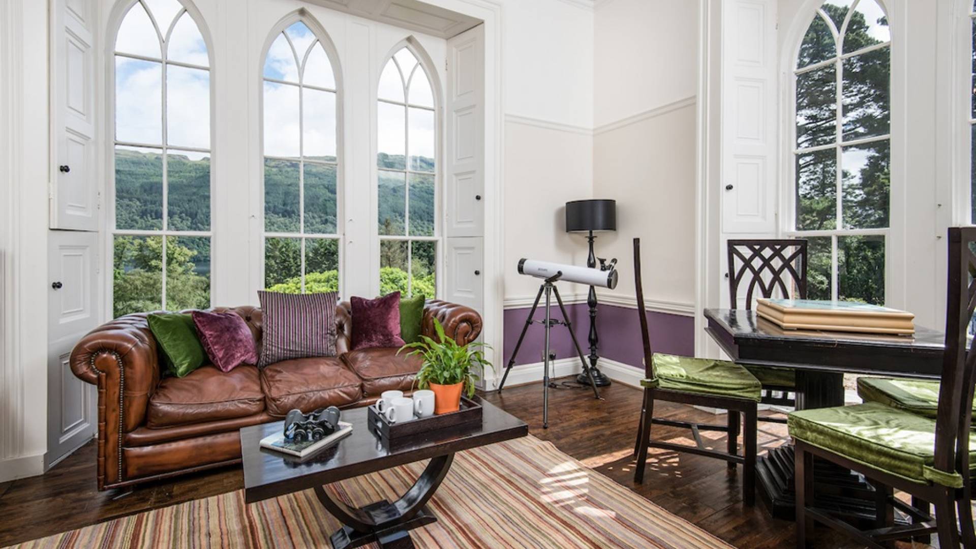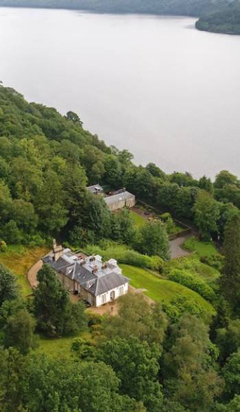 Part of the Stuckgowan Estate Collection of properties – Stuckgowan Loch Lomond dates from before 1820 and was built with elegant lancet windows and arched doorways as Gothic and Norman references but above all with grace and balance. Brought into the 21st century with gorgeous, carefully detailed renovations with stunning views of Loch Lomond. Easy access to Stuckgowan Loch Lomond from the Glasgow airport, or take a train from Balloch or Tarbet Stations.