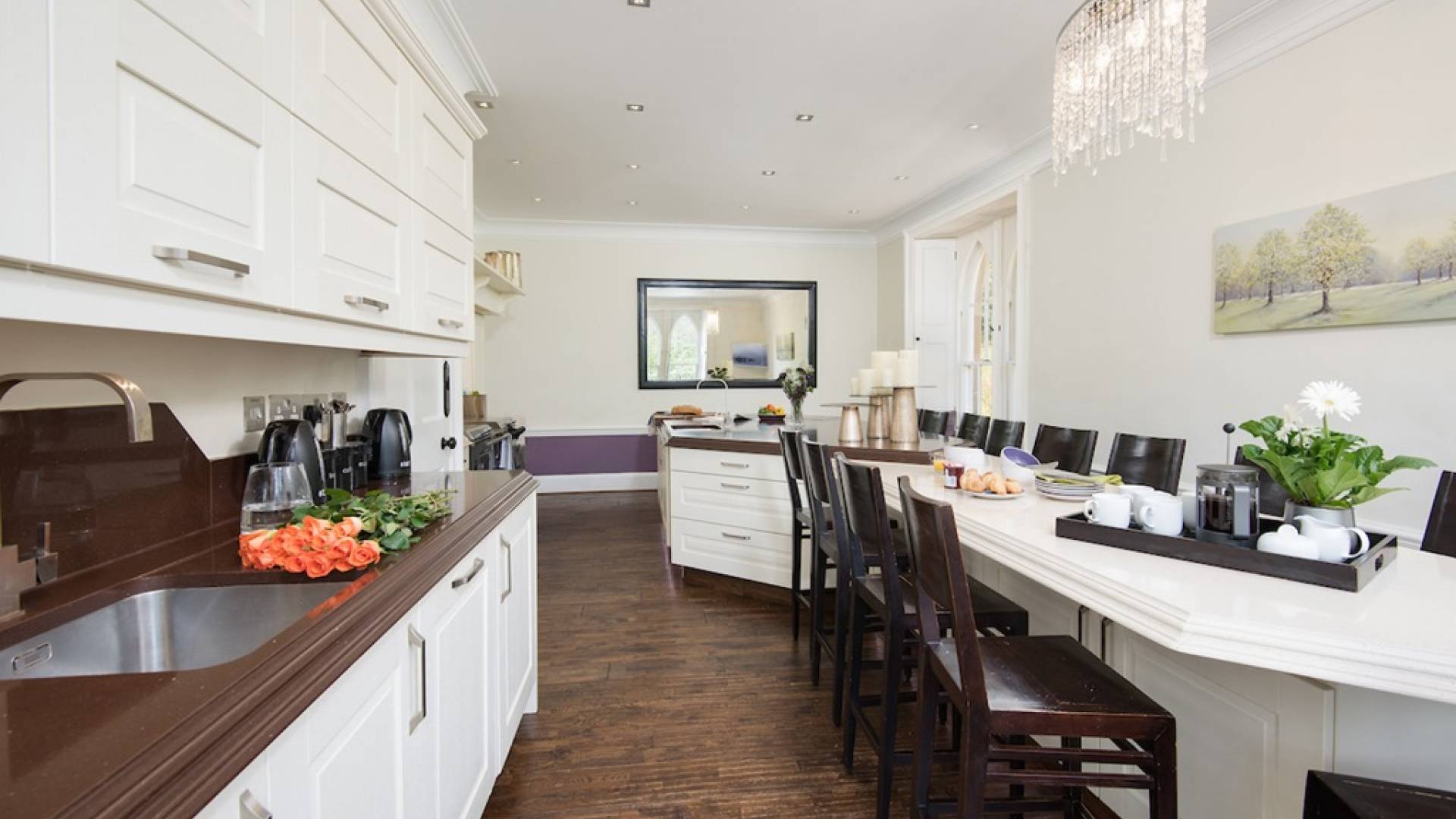 With a breakfast bar and window seating area that holds 14, the kitchen is big enough to accommodate lavish breakfasts or late-night gatherings. There’s also a study, a gym, a snooker table and a host of other thoughtful details to make your stay in this unmatched location incredible and incredibly convenient.