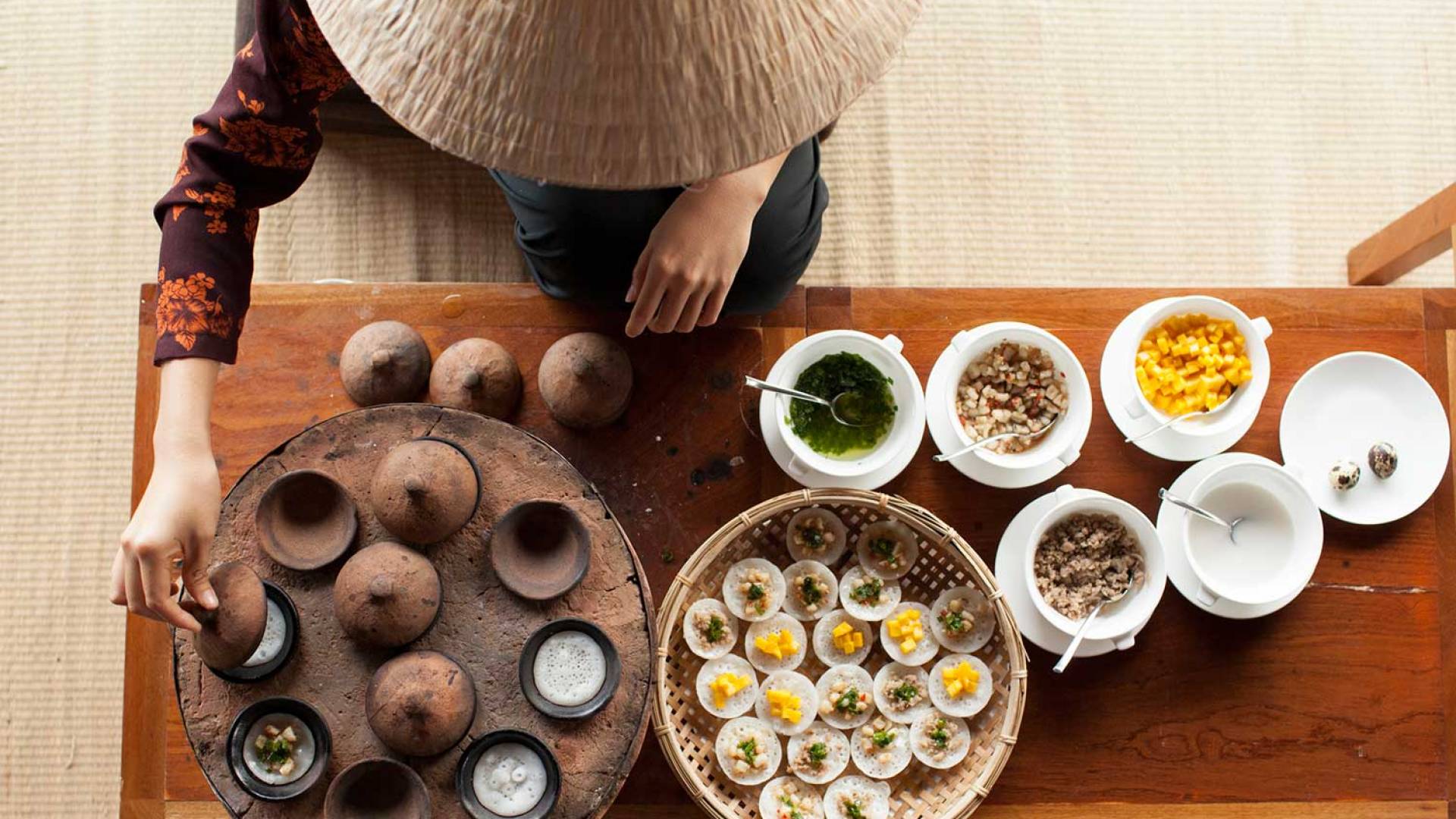 The Central Pavilion houses the restaurant, bar and library are situated at the resort’s highest point alongside the cliff-top infinity pool. From here, single lane pathways weave along the crest of the hill to 31 freestanding guest pavilions (18 with private pools and two Spa Houses), down to the secluded Amanoi Residences and into the valley where the Aman Spa overlooks the lotus-filled lake. Situated right on the shore, the Beach Club opens onto an alfresco dining area and a second swimming pool just steps from the private white-sand beach. The five-star resort's restaurant is open to guests and non-residents. Vietnamese food is considered one of the healthiest and tastiest cuisines in the world, admired for its fresh ingredients and selective use of herbs and spices. Fresh fish features prominently on Amanoi’s menus, delivered daily directly from local fishing boats, while herbs and vegetables are handpicked from the resort’s organic garden.