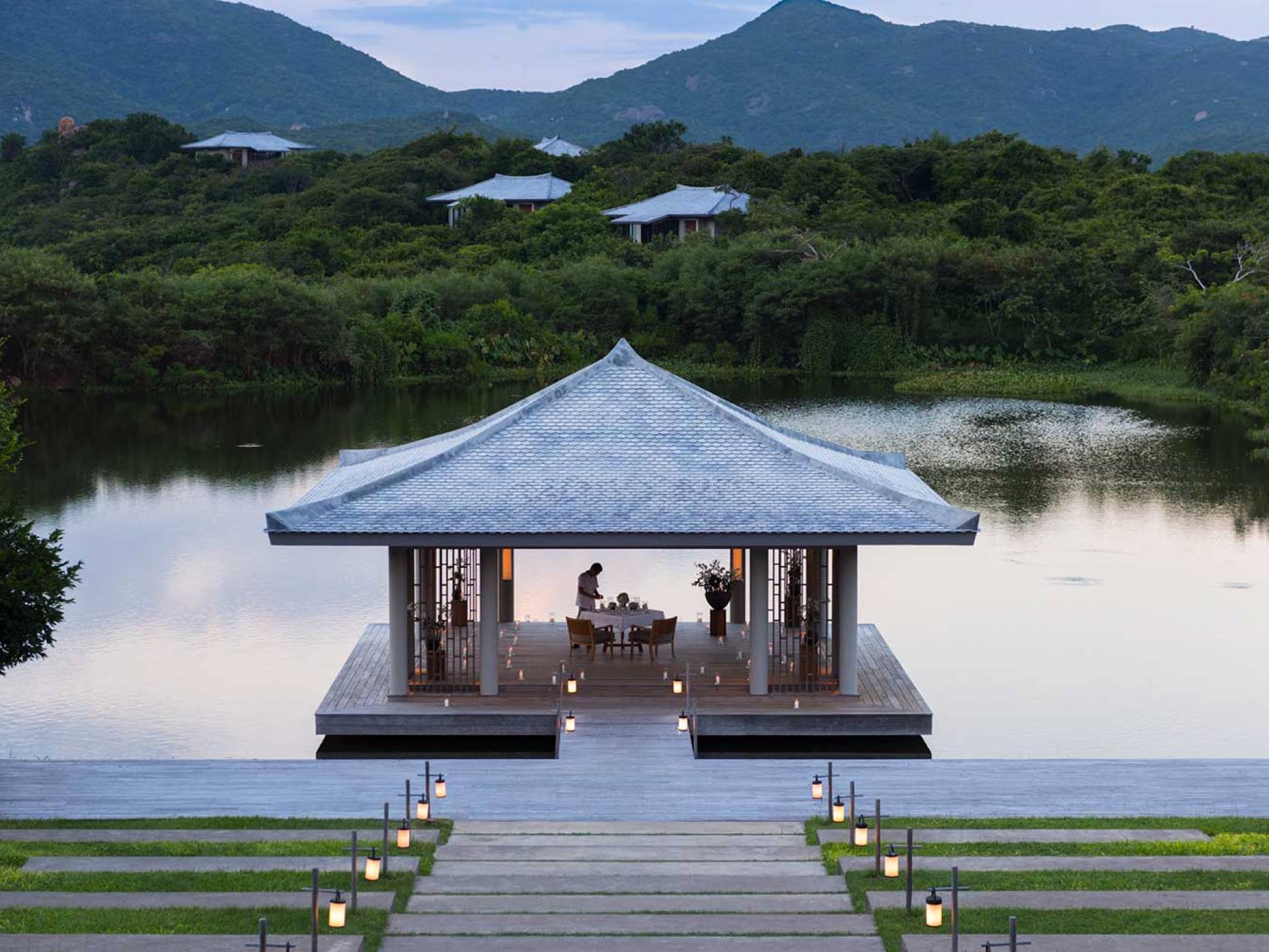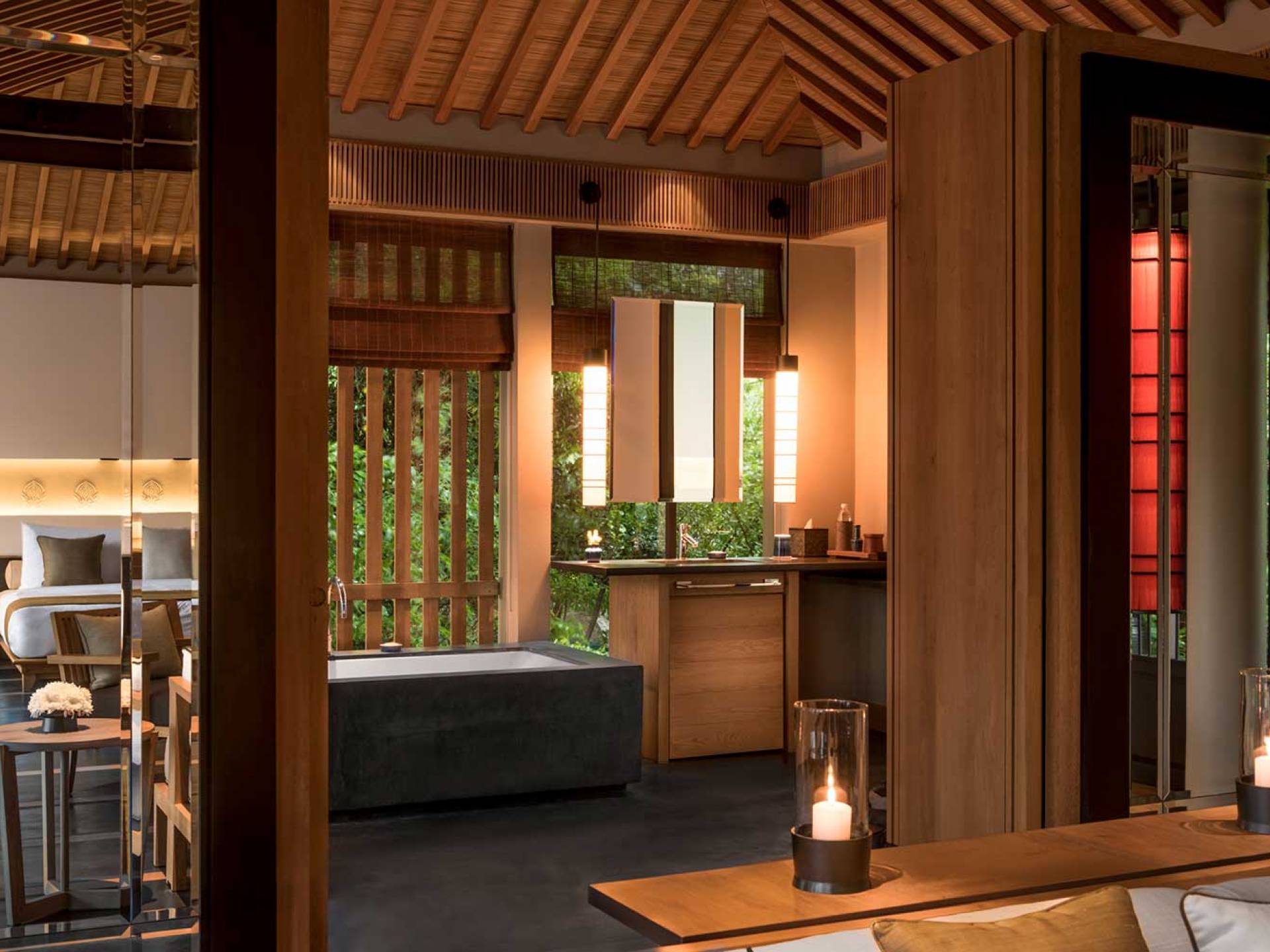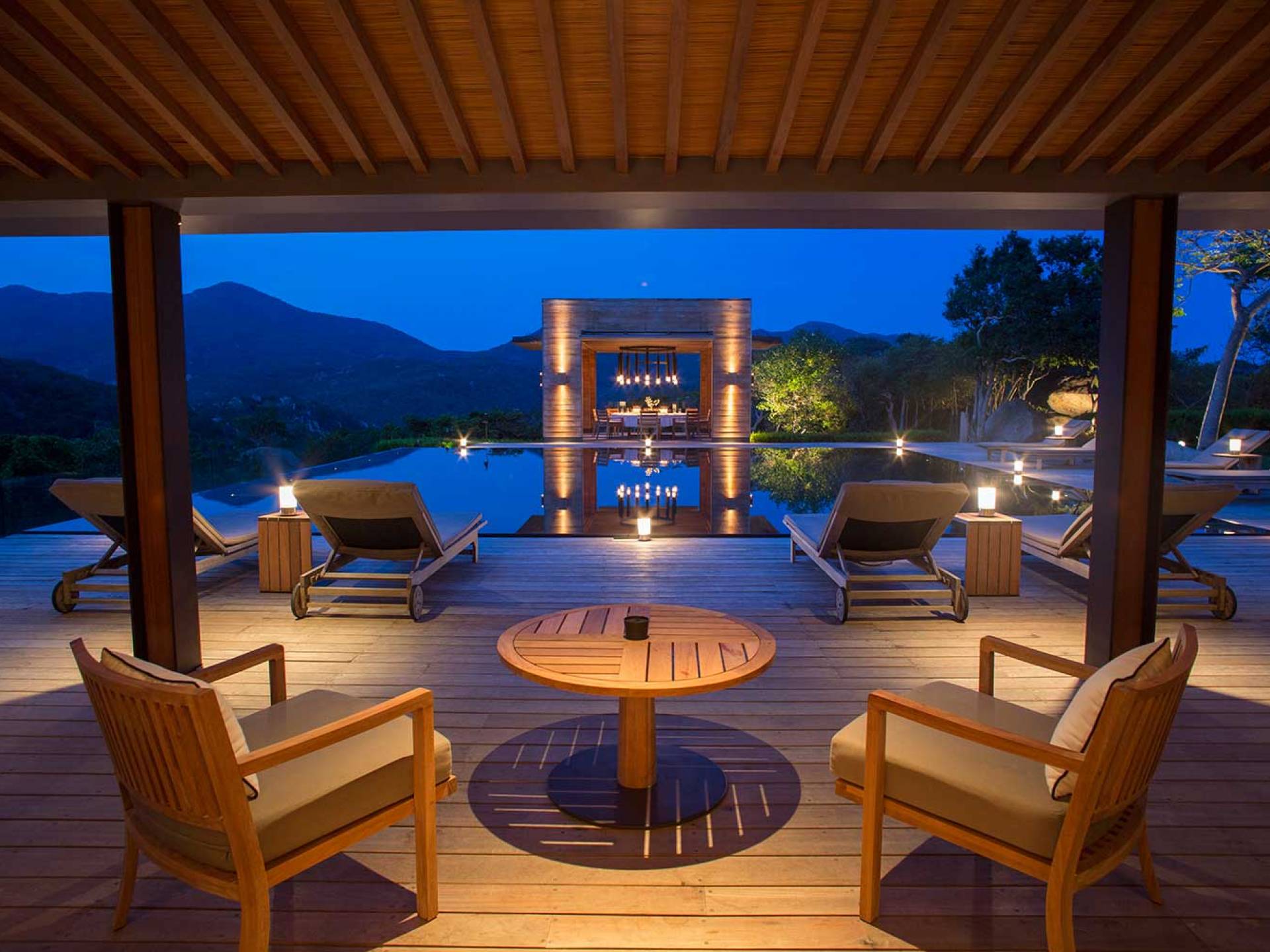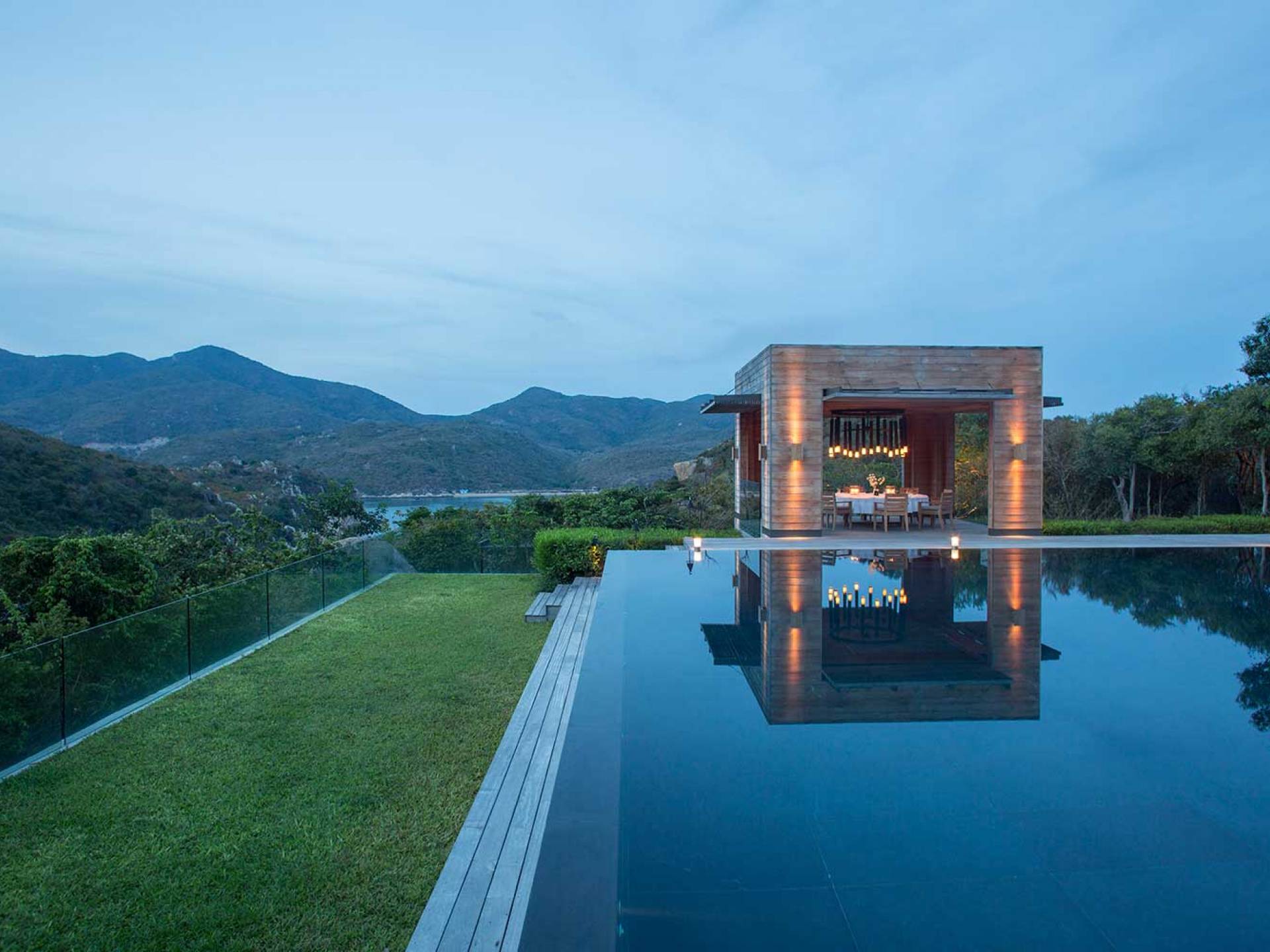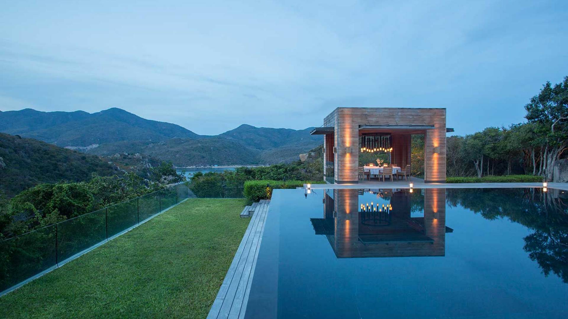 The three-bedroom Residence incorporates a number of pavilions set around a private swimming pool with mountain and ocean views. The total size of the residence is 700 square metres (7,535 square feet). The residence follows the architectural precedent set by the resort. It consists of three bedroom pavilions, as well as living and dining pavilions and a large infinity swimming pool surrounded by expansive decking. A 24/7 personal butler and chef meet all guests’ needs, including the preparation of Vietnamese or Western cuisines in the residence’s private pantry.