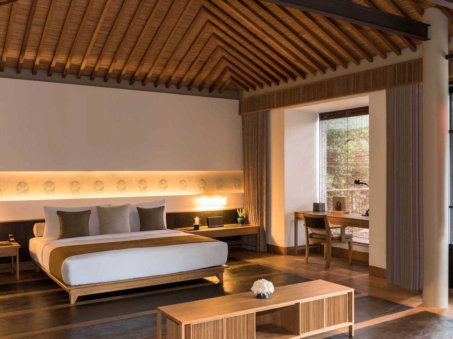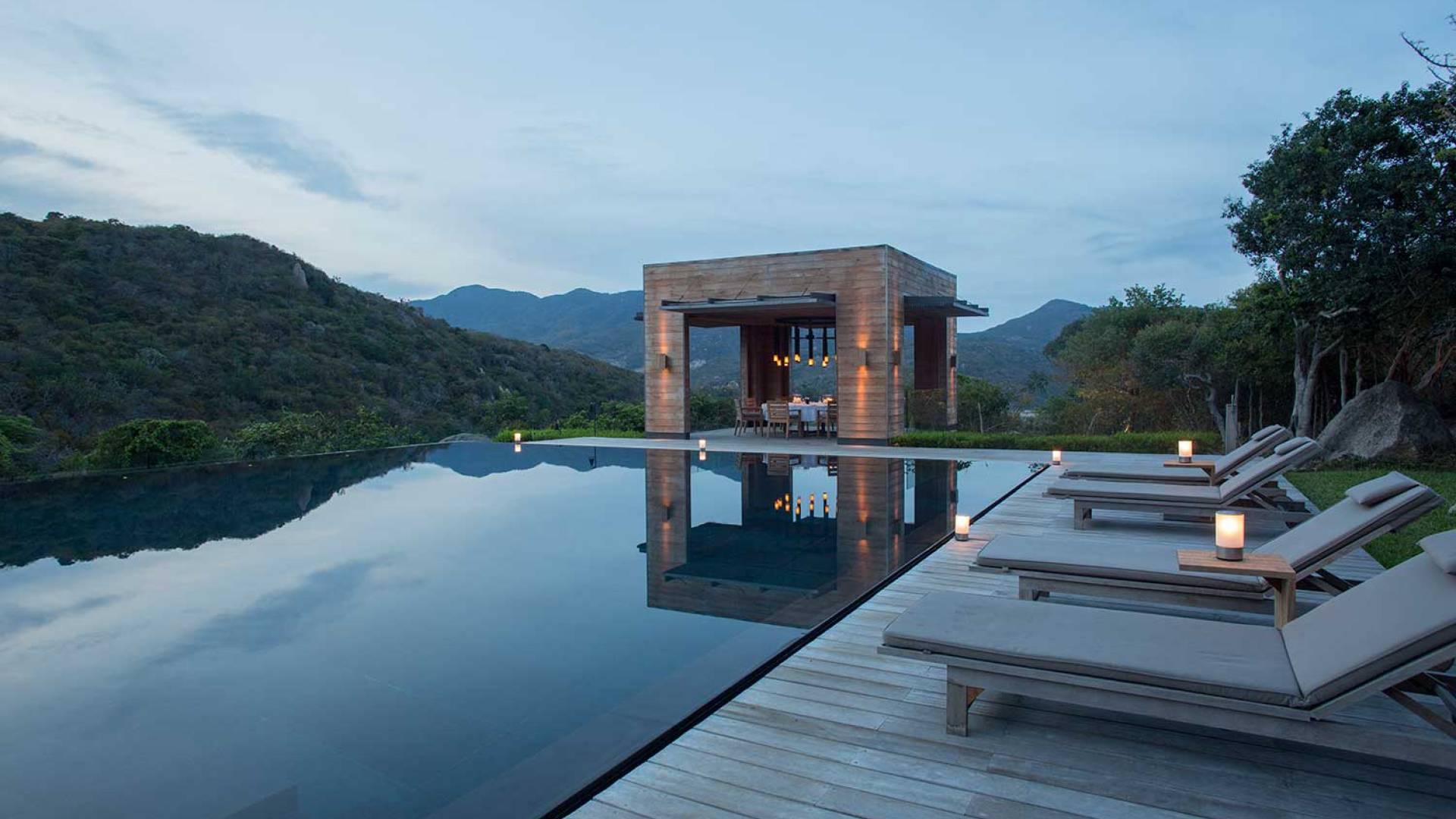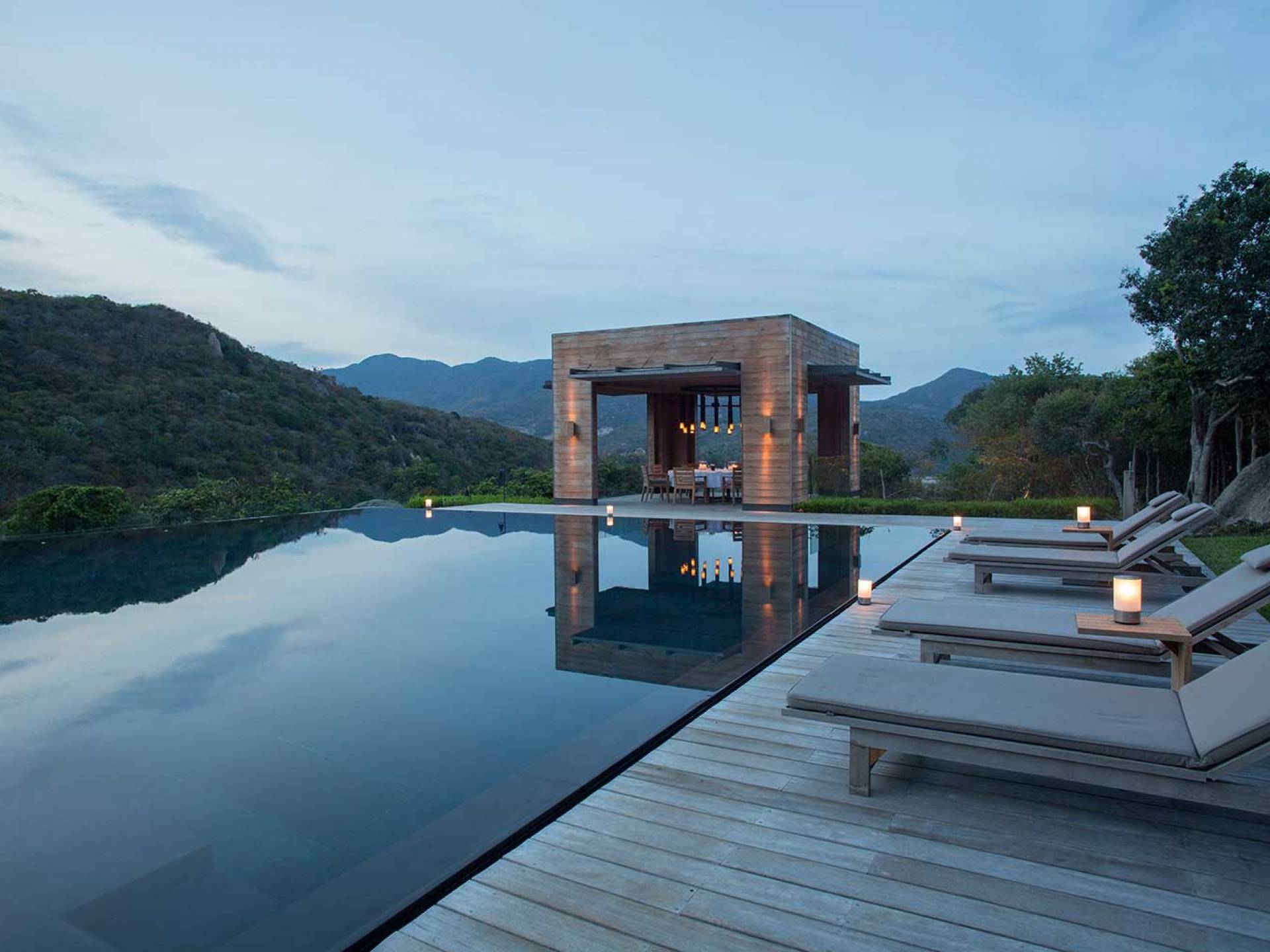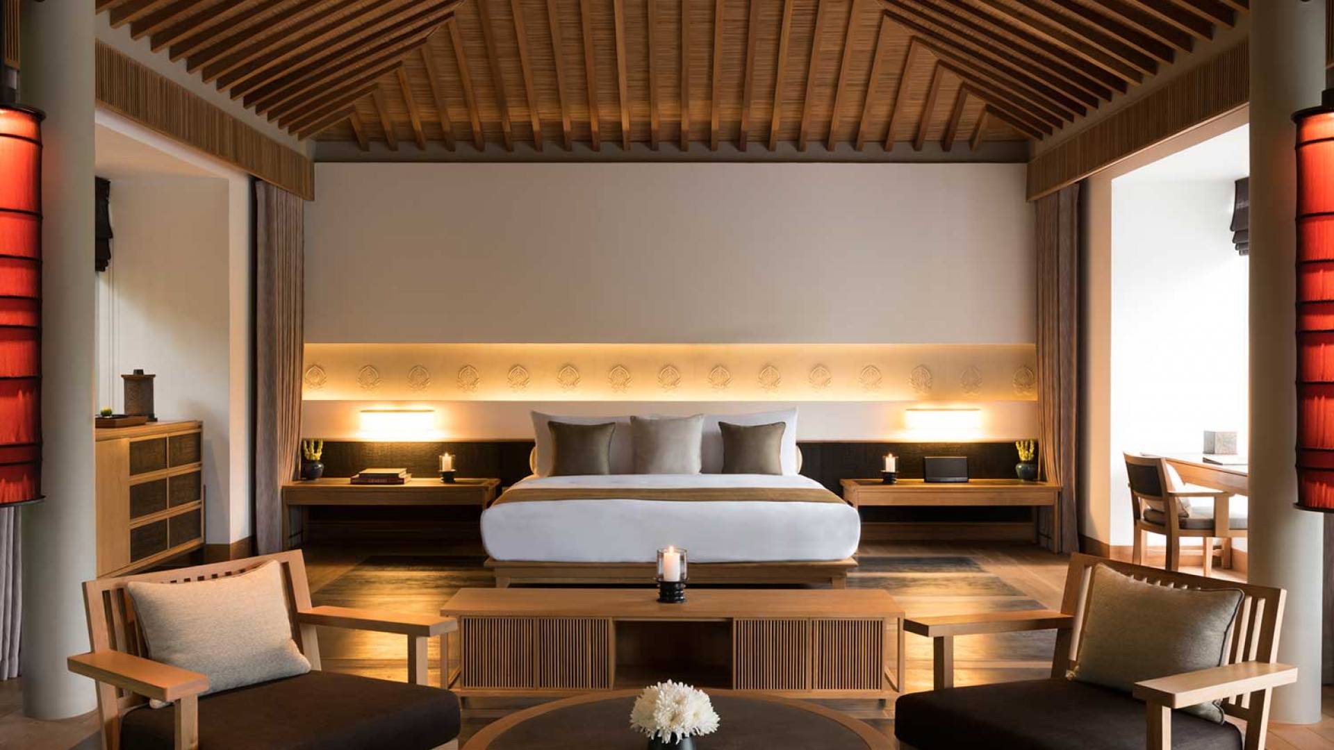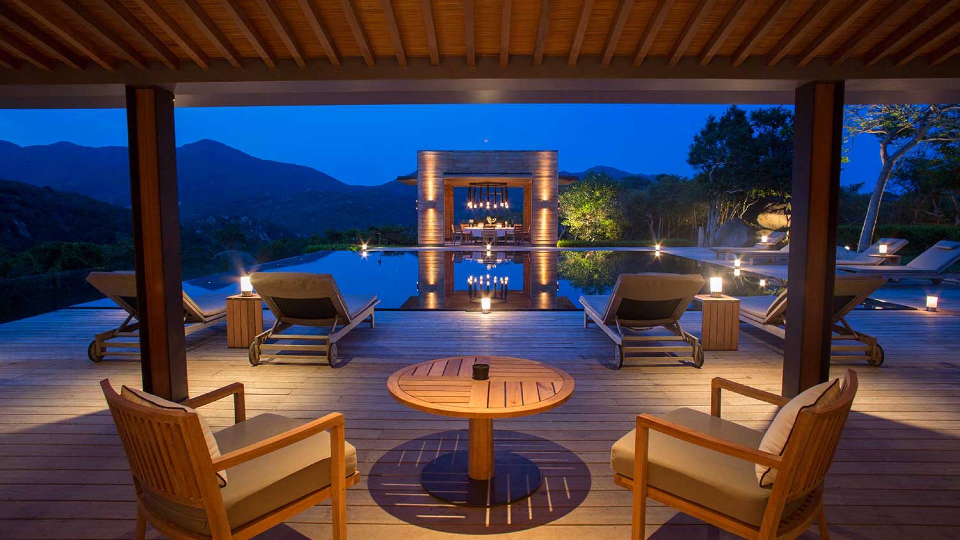 The three-bedroom Residence incorporates a number of pavilions set around a private swimming pool with mountain and ocean views. The total size of the residence is 700 square metres (7,535 square feet). The residence follows the architectural precedent set by the resort. It consists of three bedroom pavilions, as well as living and dining pavilions and a large infinity swimming pool surrounded by expansive decking. A 24/7 personal butler and chef meet all guests’ needs, including the preparation of Vietnamese or Western cuisines in the residence’s private pantry.