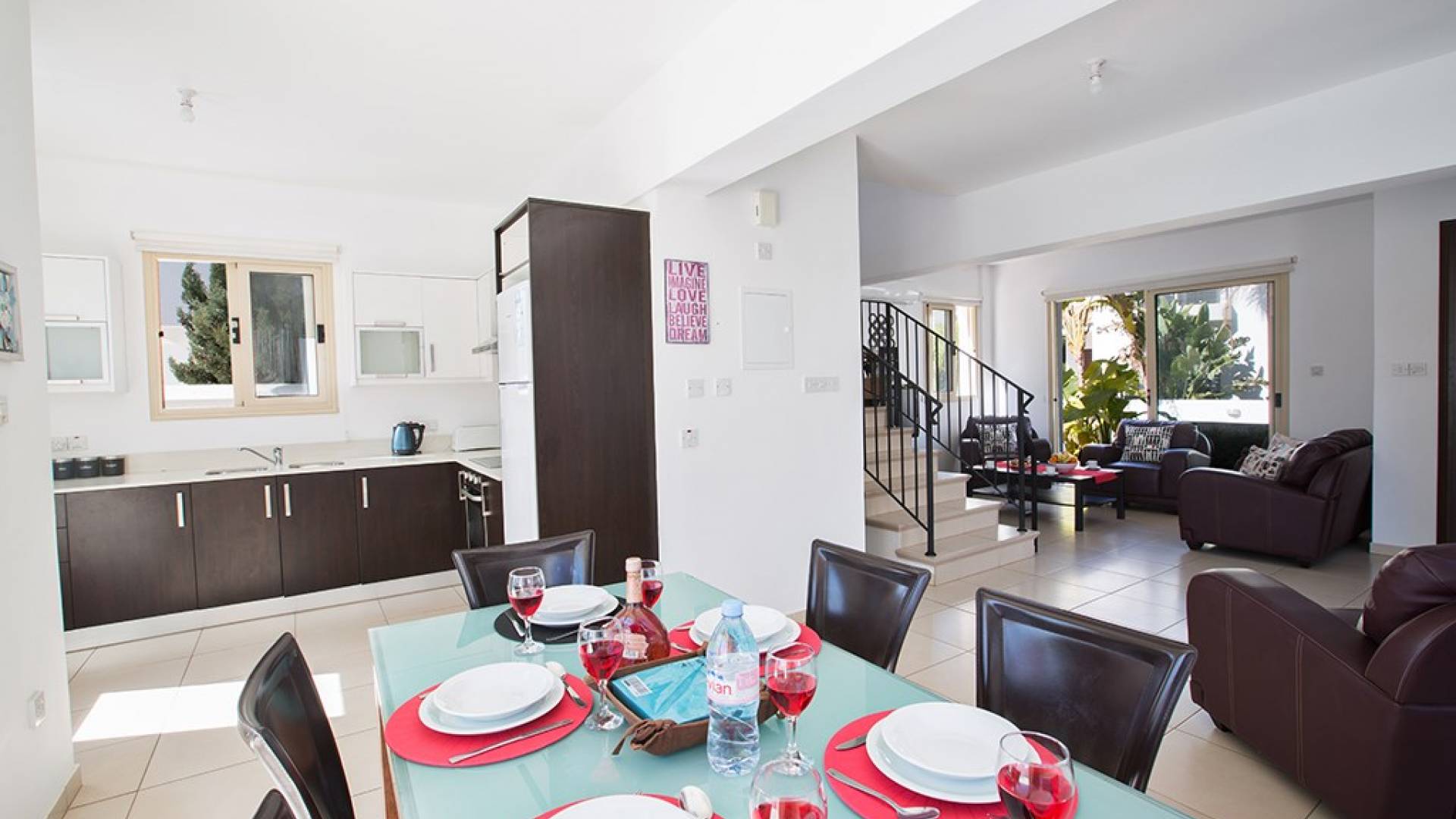 Moderna y espaciosa, la villa está totalmente equipada con todo lo necesario para una estancia relajante. Cuenta con una cómoda sala de estar de planta abierta, un comedor con capacidad para 6 personas y una cocina equipada con electrodomésticos modernos. También hay un W/C en la planta baja.
