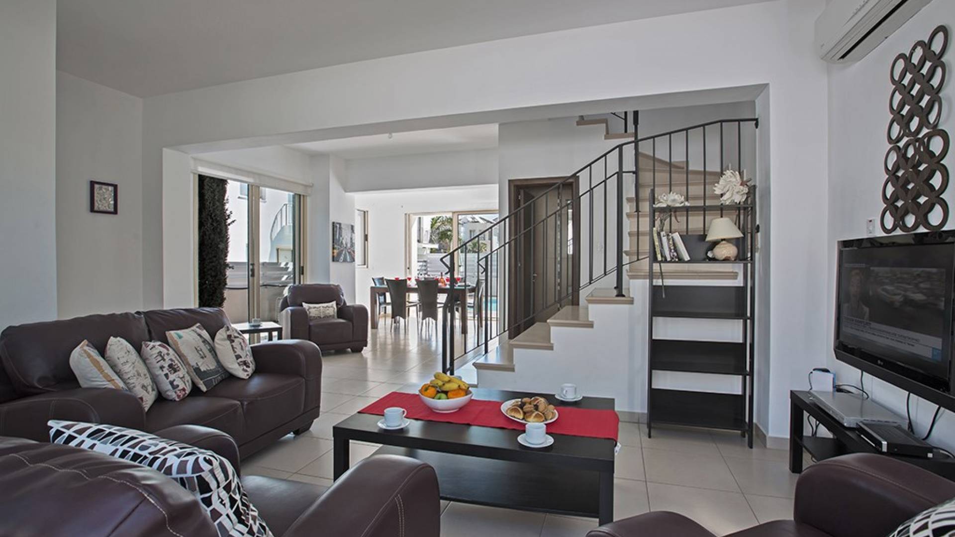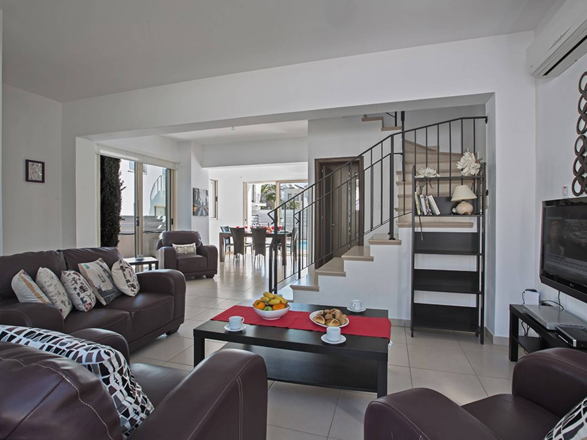 Villa Elpida Protaras es una villa de lujo en alquiler con 3 dormitorios y piscina privada. Esta hermosa villa está ubicada en Pernera, en el popular complejo Palm Villa and Apartment. El centro turístico y las playas de Pernera están a solo unos minutos a pie y el centro de Protaras también está a poca distancia. La villa es una excelente opción para familias y grupos que desean estar ubicados cerca de todas las comodidades del resort.
