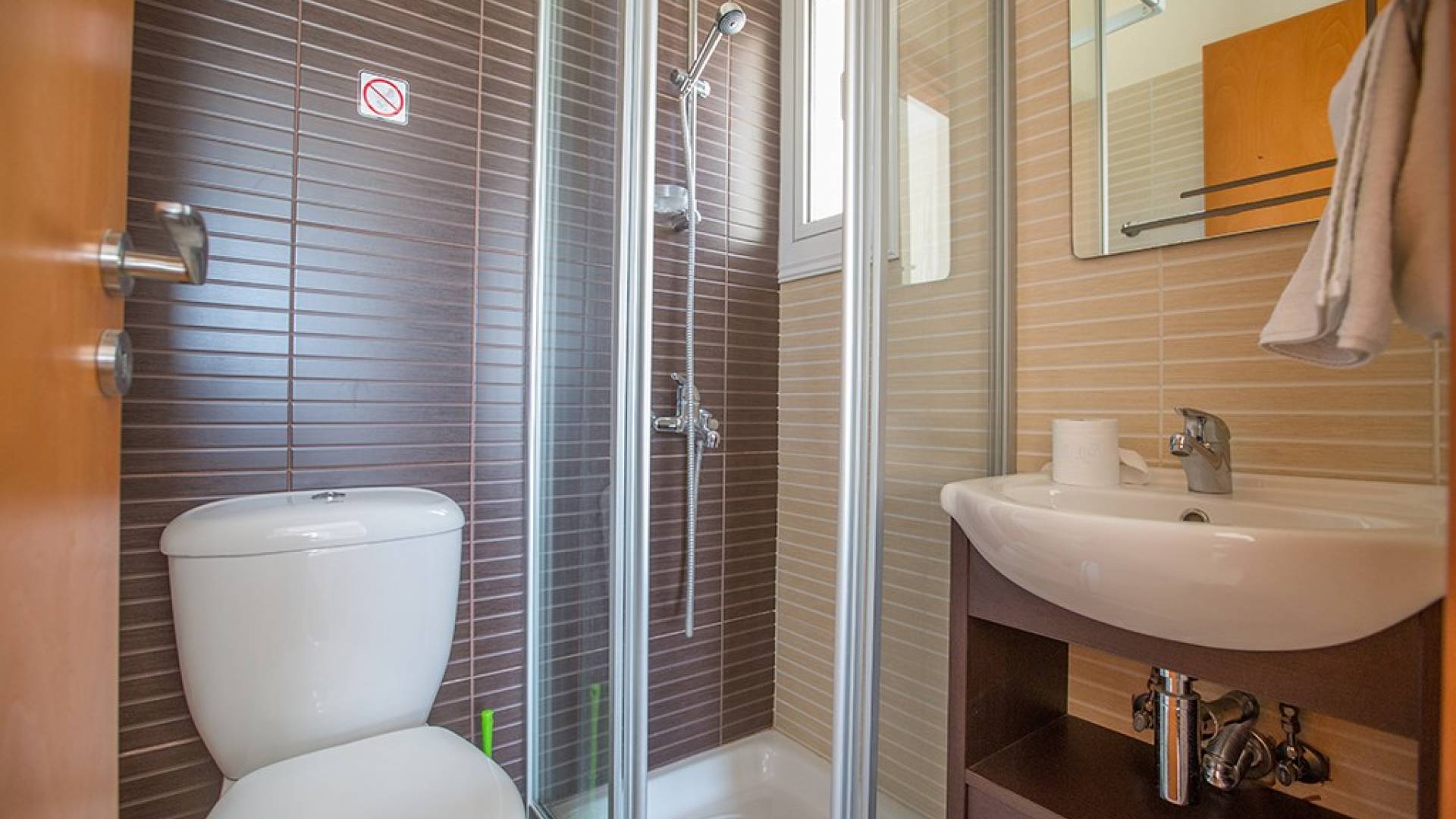 Arriba, encontrará los tres dormitorios. El dormitorio principal tiene baños en suite con ducha y WC y una cama doble, hay otro dormitorio doble y el dormitorio 3 tiene dos camas individuales. También encontrará el baño principal con bañera, ducha y WC.