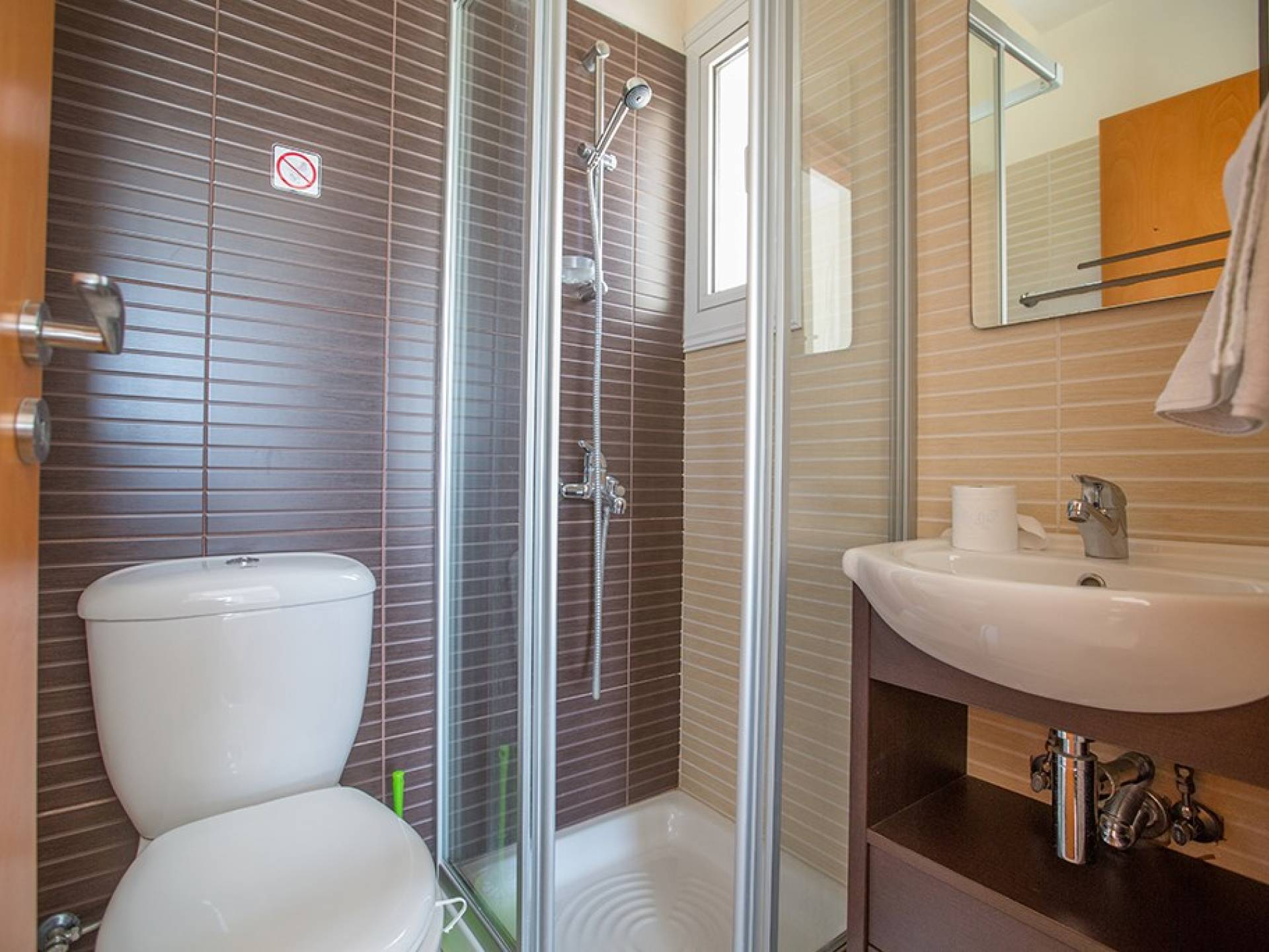En la planta baja, encontrará una gran sala de estar, cocina y comedor de planta abierta. El salón cuenta con cómodos sofás y televisión de pantalla panorámica con satélite. El comedor tiene una mesa y sillas para 6 personas y la cocina está totalmente equipada con todos los electrodomésticos modernos que necesitará durante su estadía. También hay un W / C en este piso.