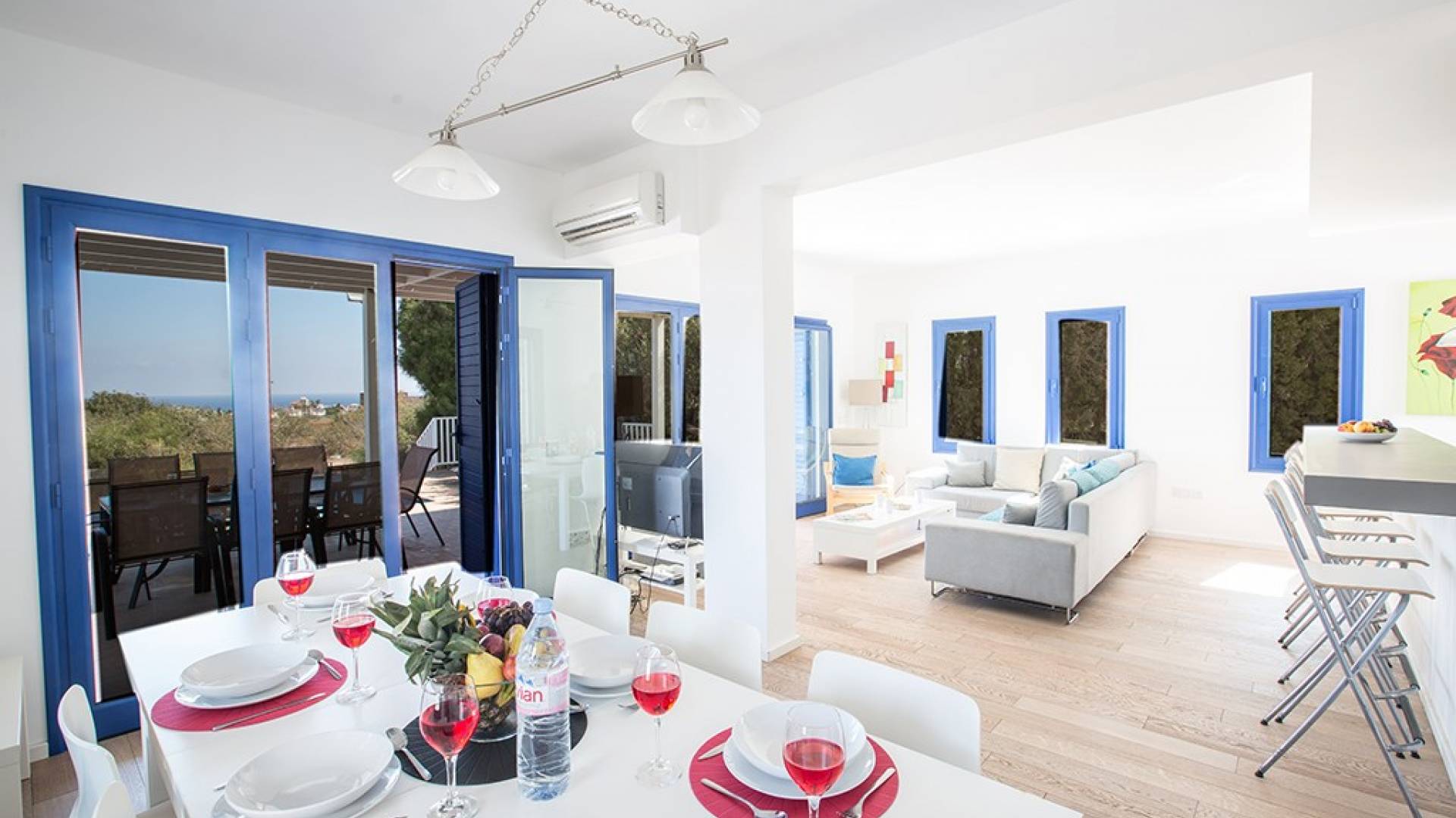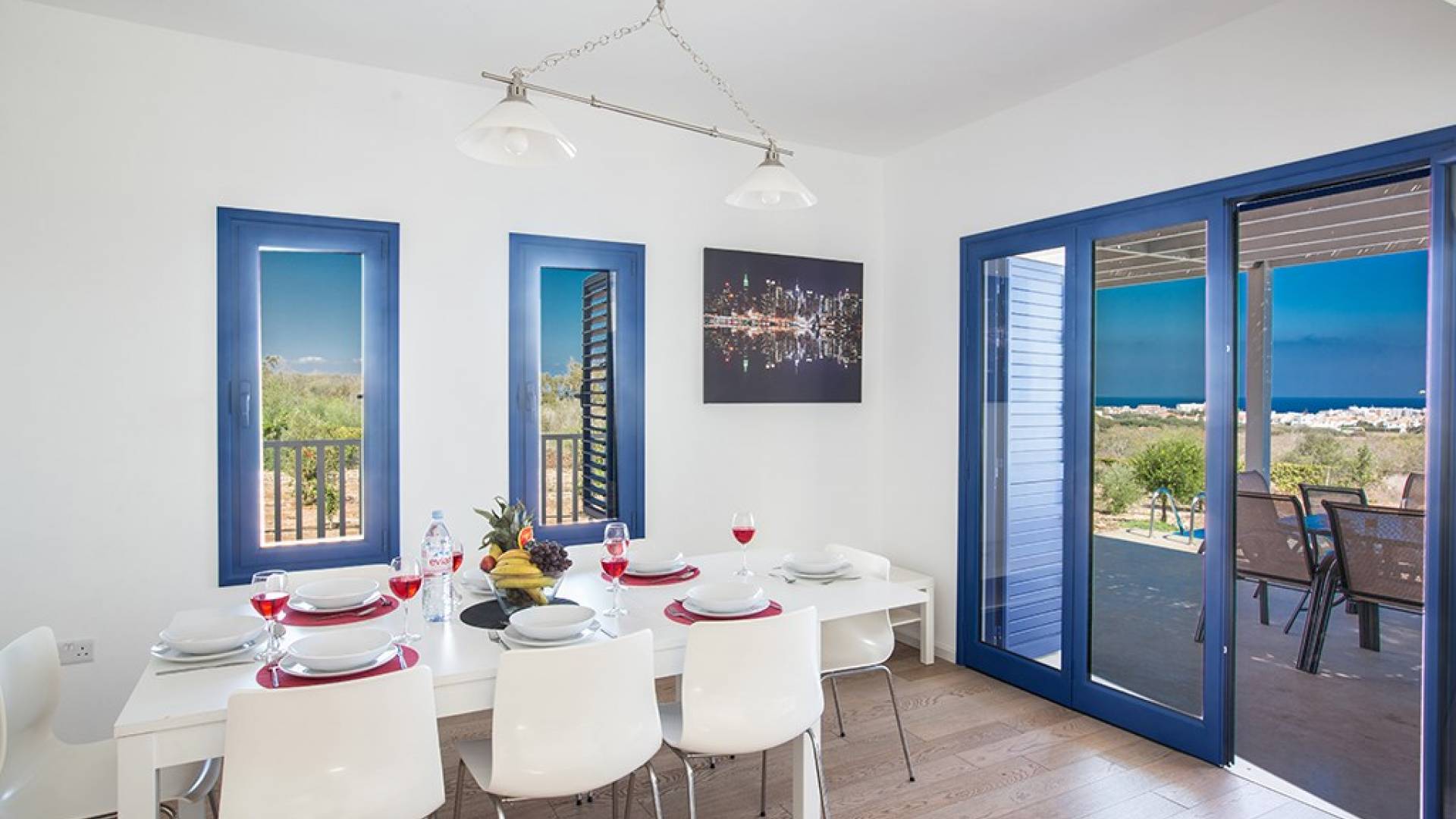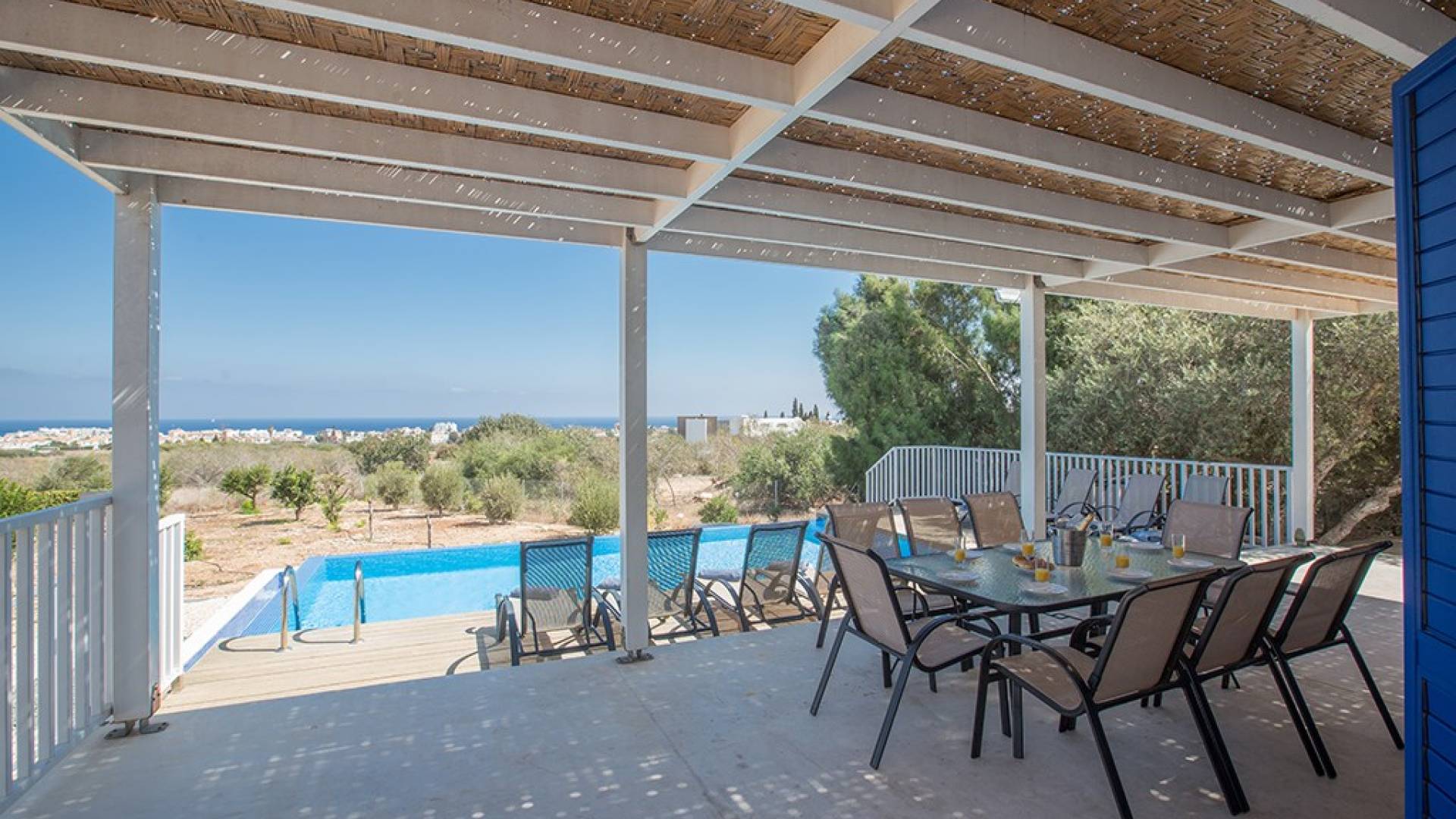 Villa Kalliopi Protaras es una villa de lujo en alquiler con 4 dormitorios y piscina privada. Esta villa se encuentra en Protaras, a solo 2 minutos en coche del centro de la localidad y de las fabulosas playas de Protaras. Ubicada en una tranquila ubicación en la ladera con fabulosas vistas al mar, la villa es espaciosa, moderna y está equipada con todo lo necesario para una cómoda estadía con cocina. La villa es ideal para grandes grupos familiares que buscan disfrutar de unas vacaciones relajantes y tranquilas.