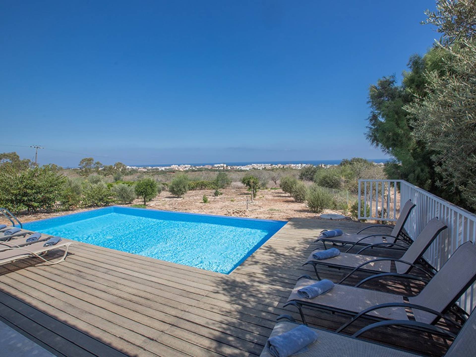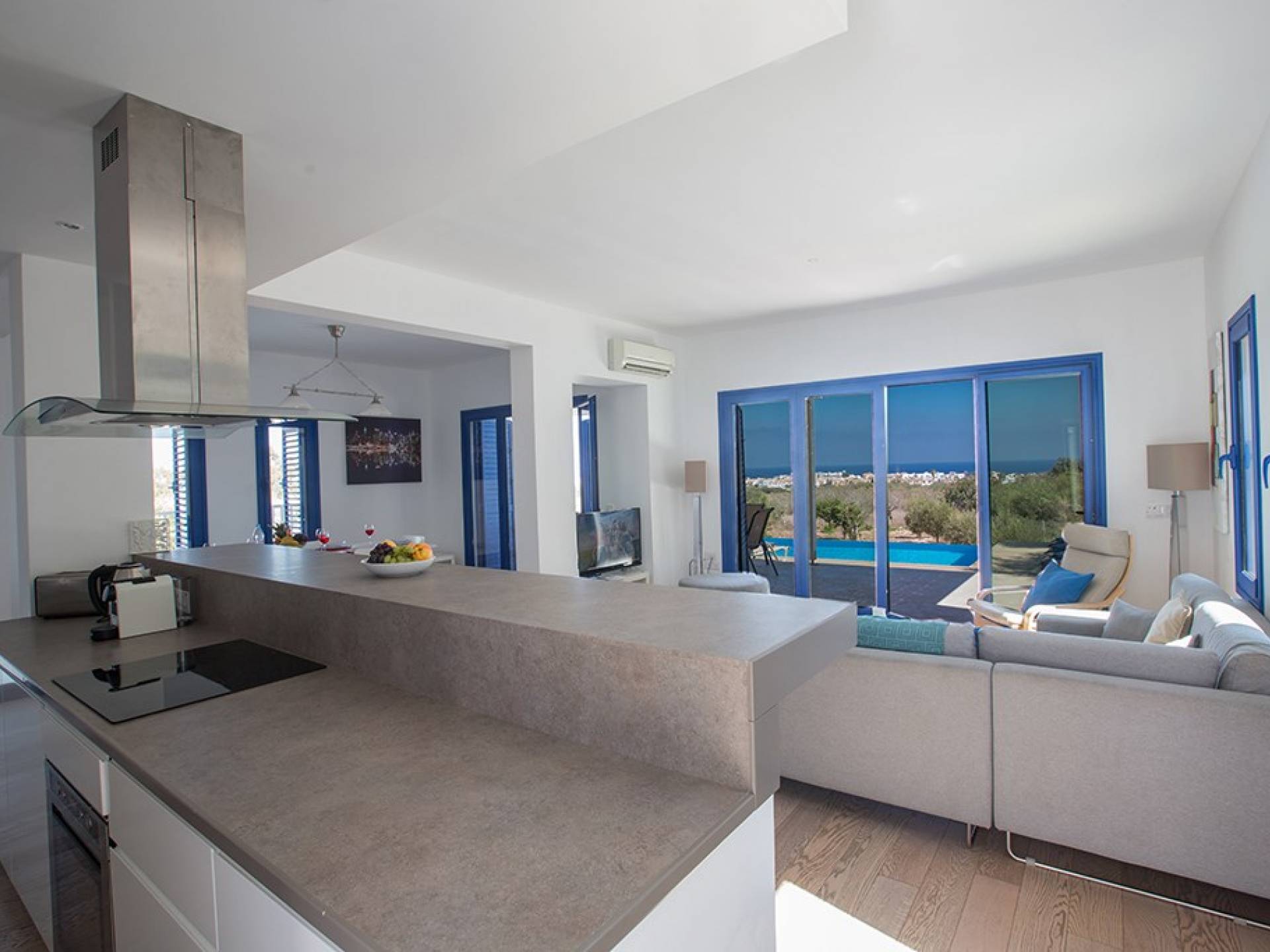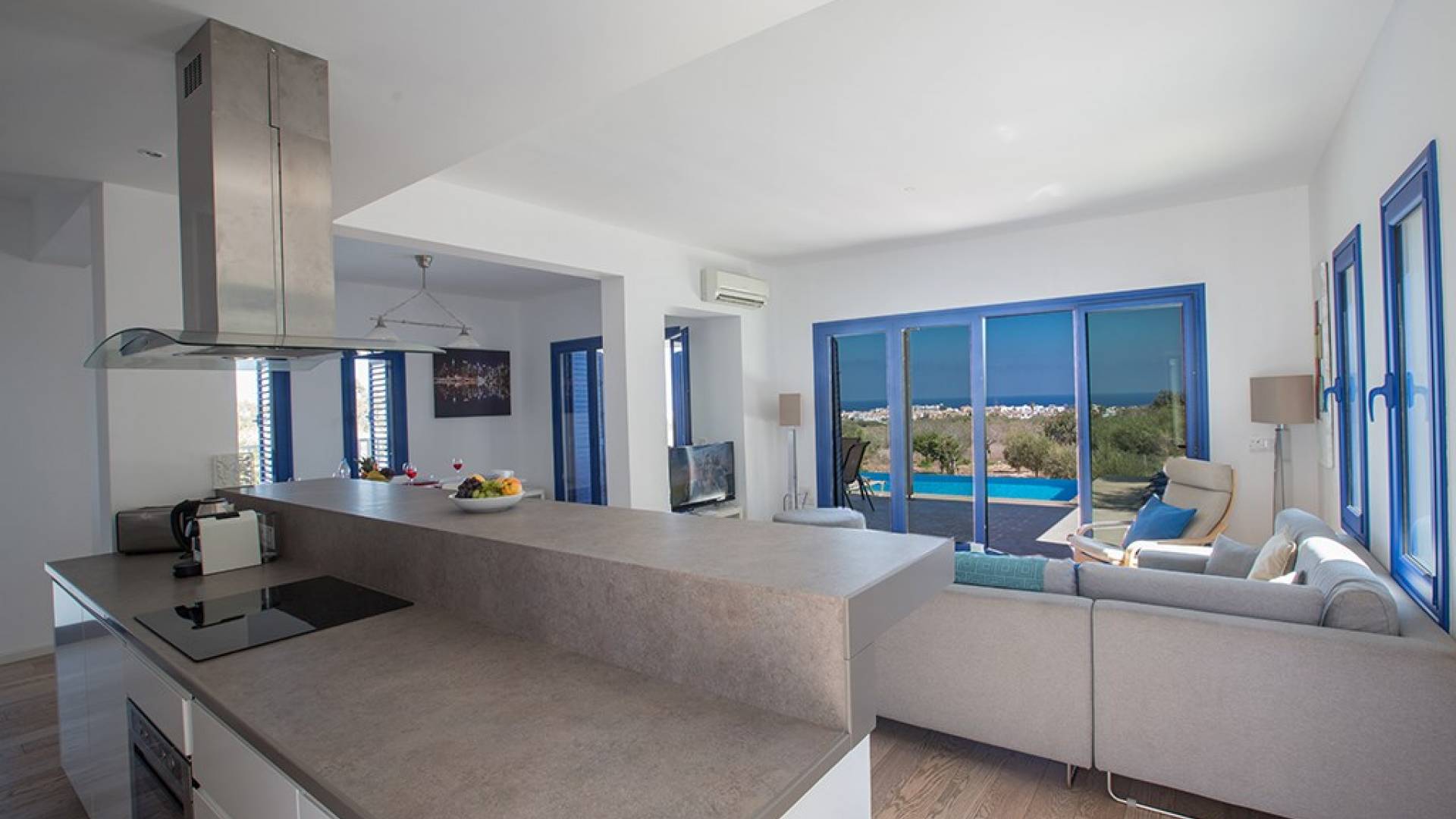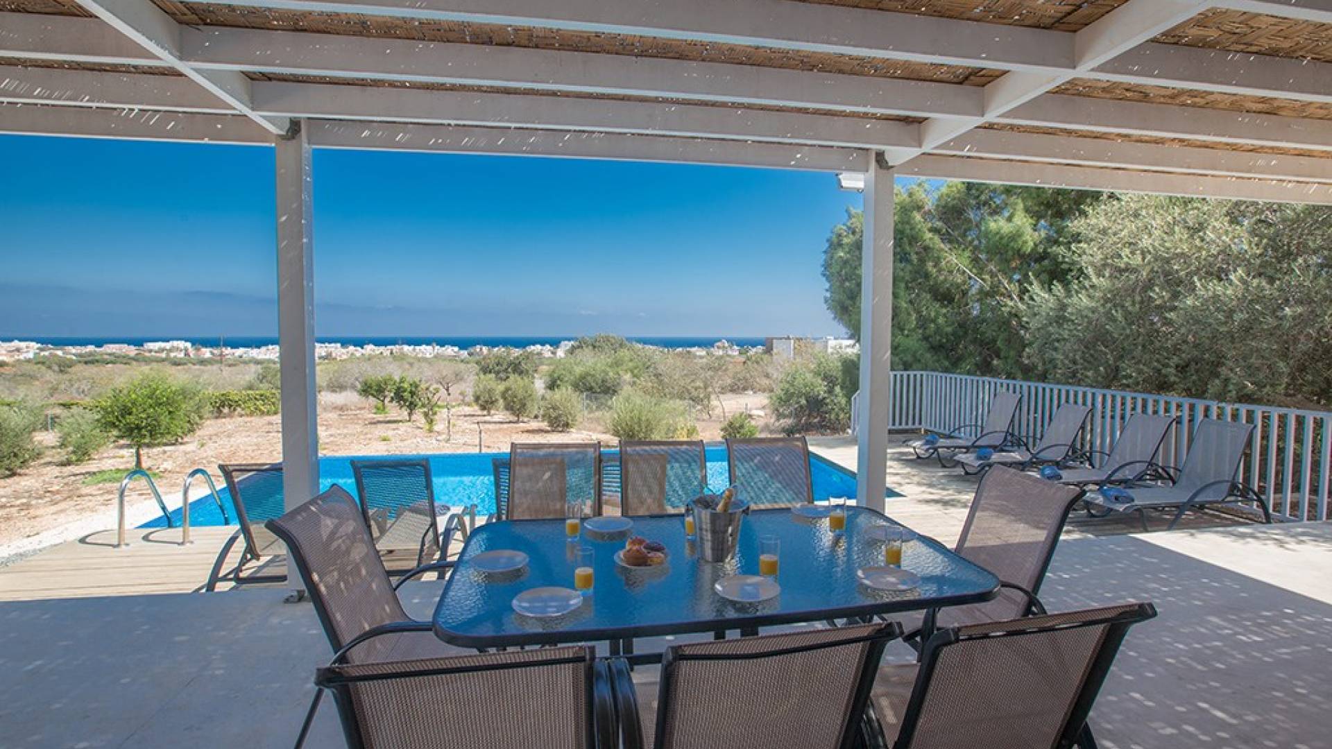 Afuera, en el jardín, encontrará un comedor exterior a la sombra, barbacoa, tumbonas y piscina privada con vistas al mar rodeada de una selección de árboles frutales. Una hermosa y moderna villa equipada con todo lo que pueda necesitar para su descanso relajante.