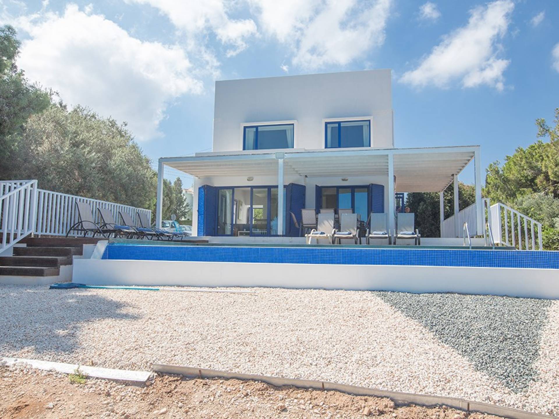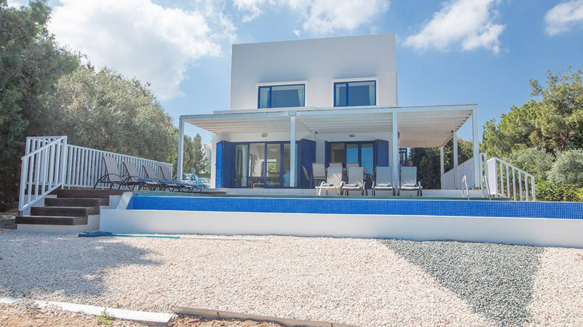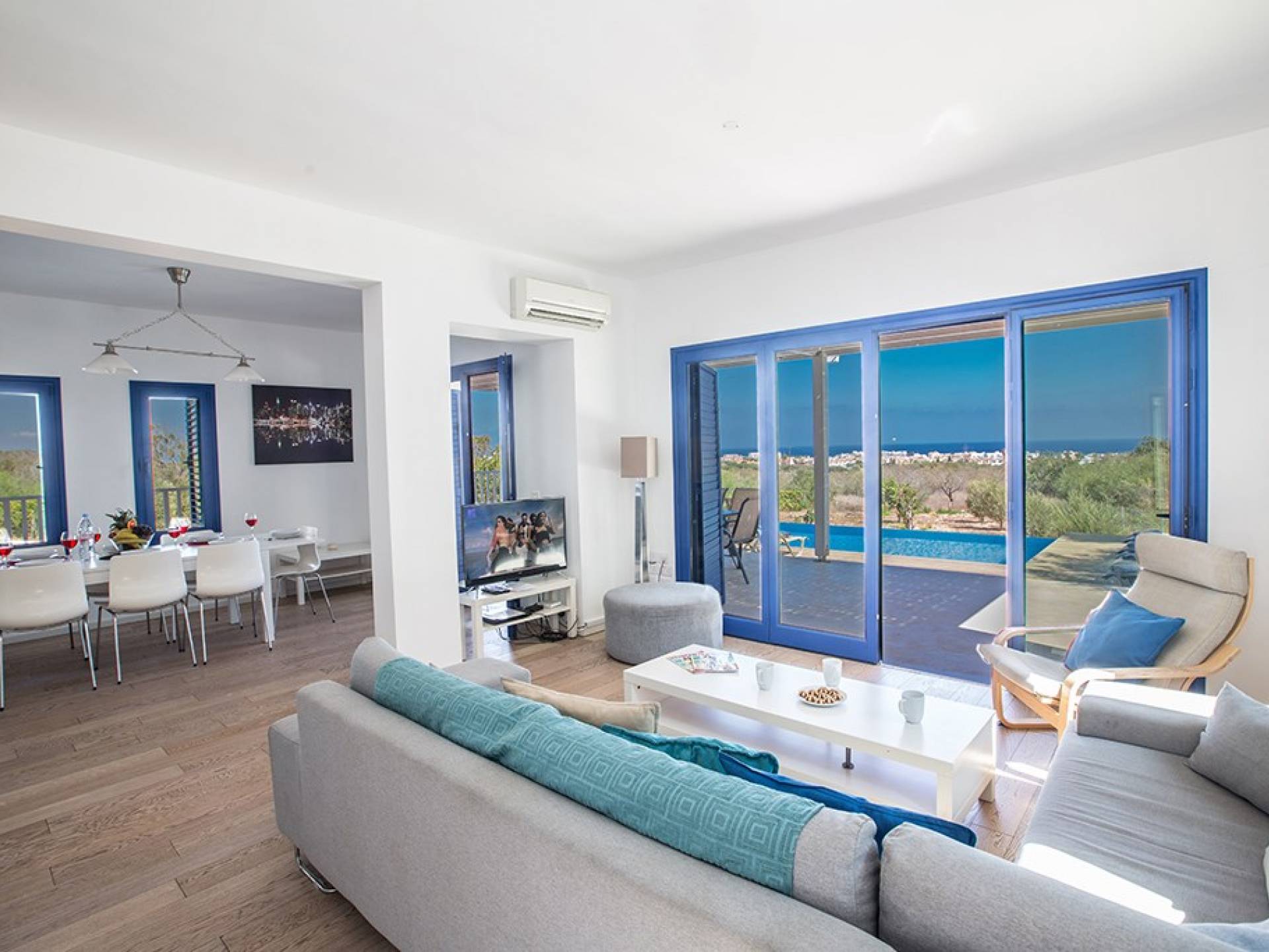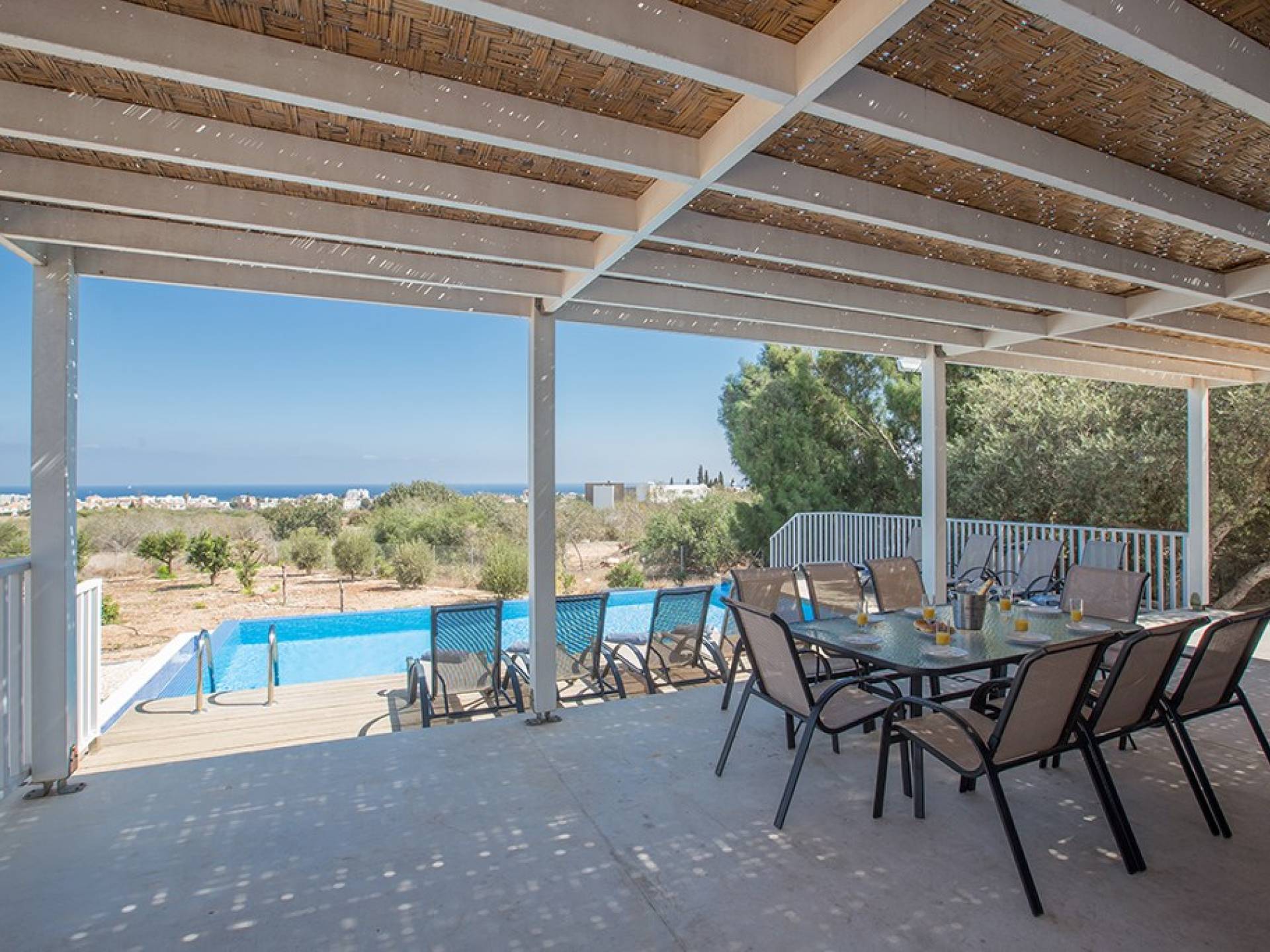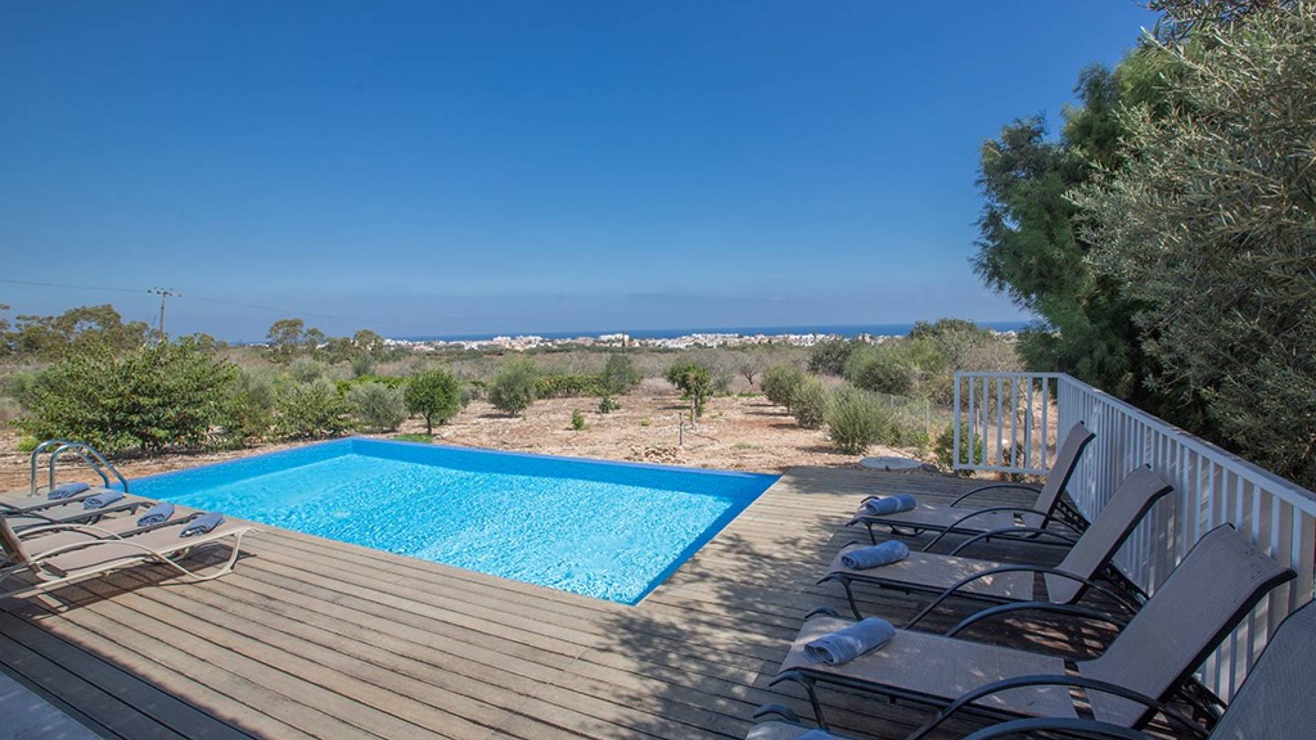Afuera, en el jardín, encontrará un comedor exterior a la sombra, barbacoa, tumbonas y piscina privada con vistas al mar rodeada de una selección de árboles frutales. Una hermosa y moderna villa equipada con todo lo que pueda necesitar para su descanso relajante.