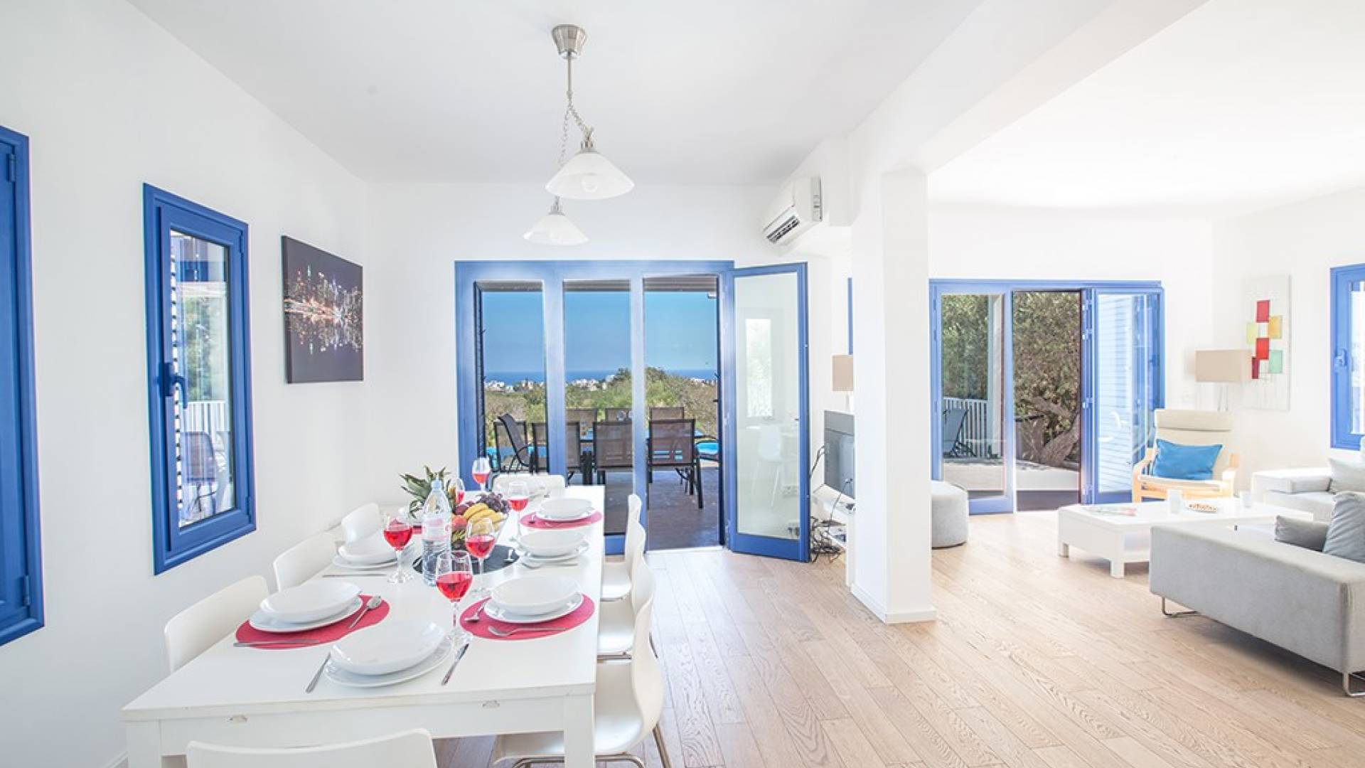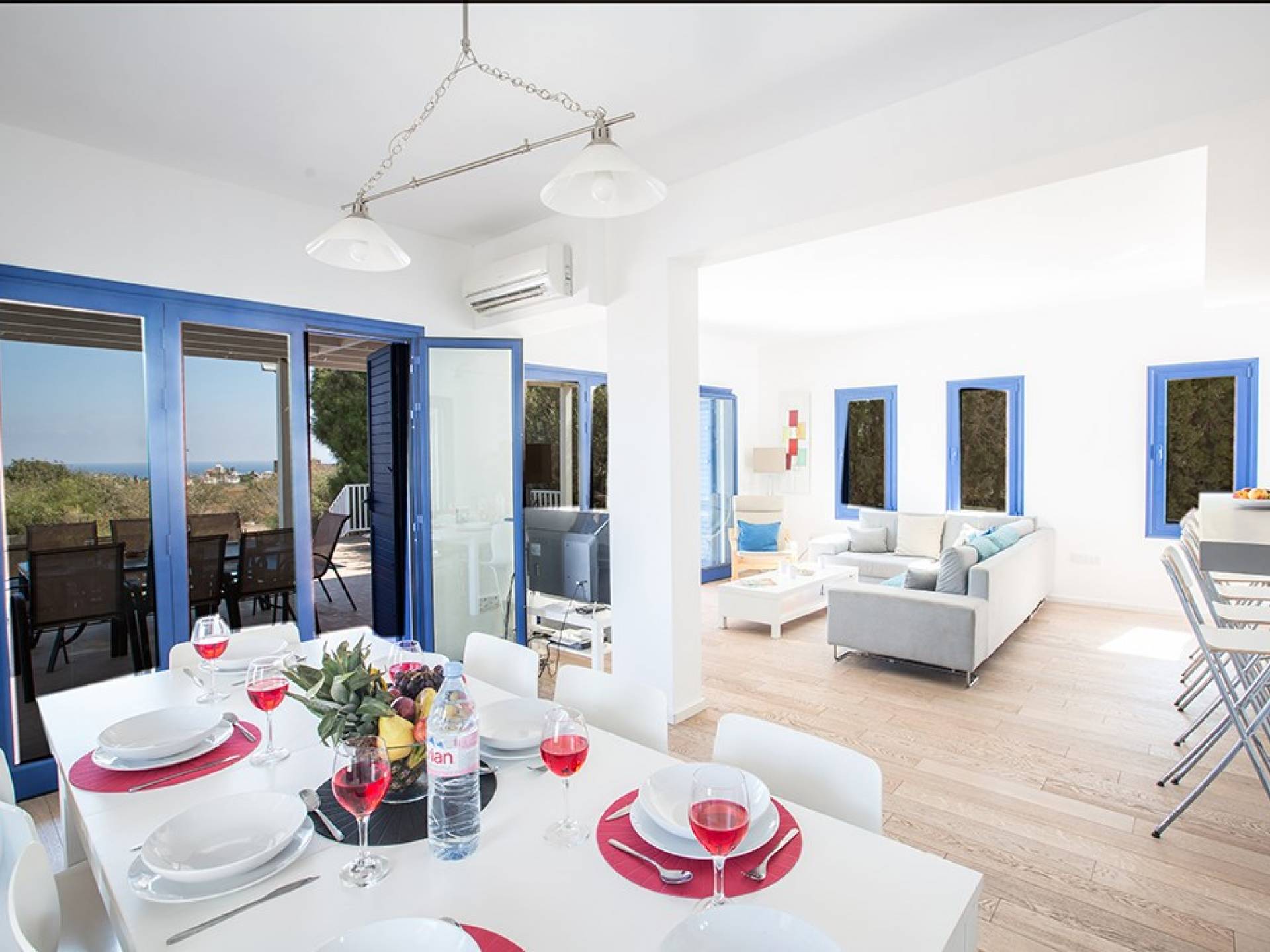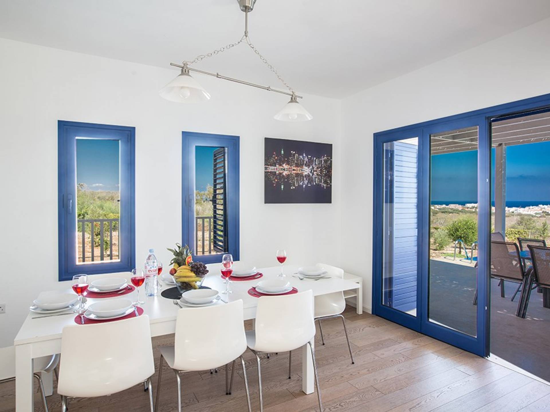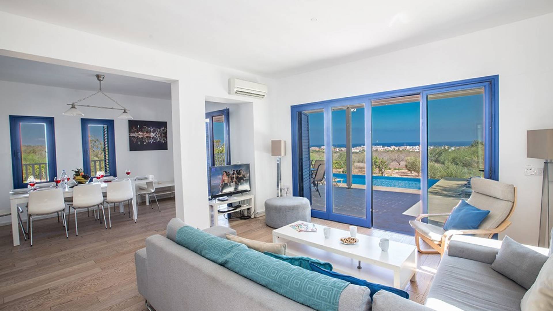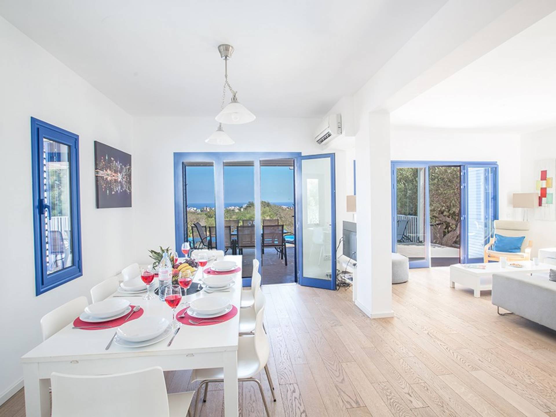 Afuera, en el jardín, encontrará un comedor exterior a la sombra, barbacoa, tumbonas y piscina privada con vistas al mar rodeada de una selección de árboles frutales. Una hermosa y moderna villa equipada con todo lo que pueda necesitar para su descanso relajante.