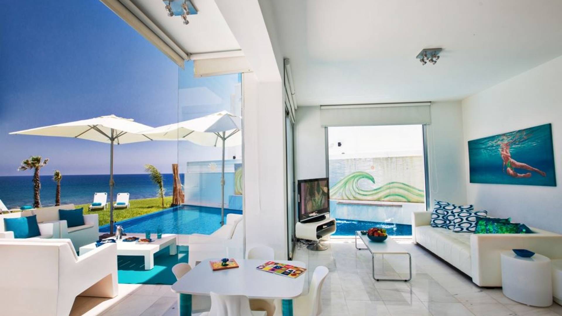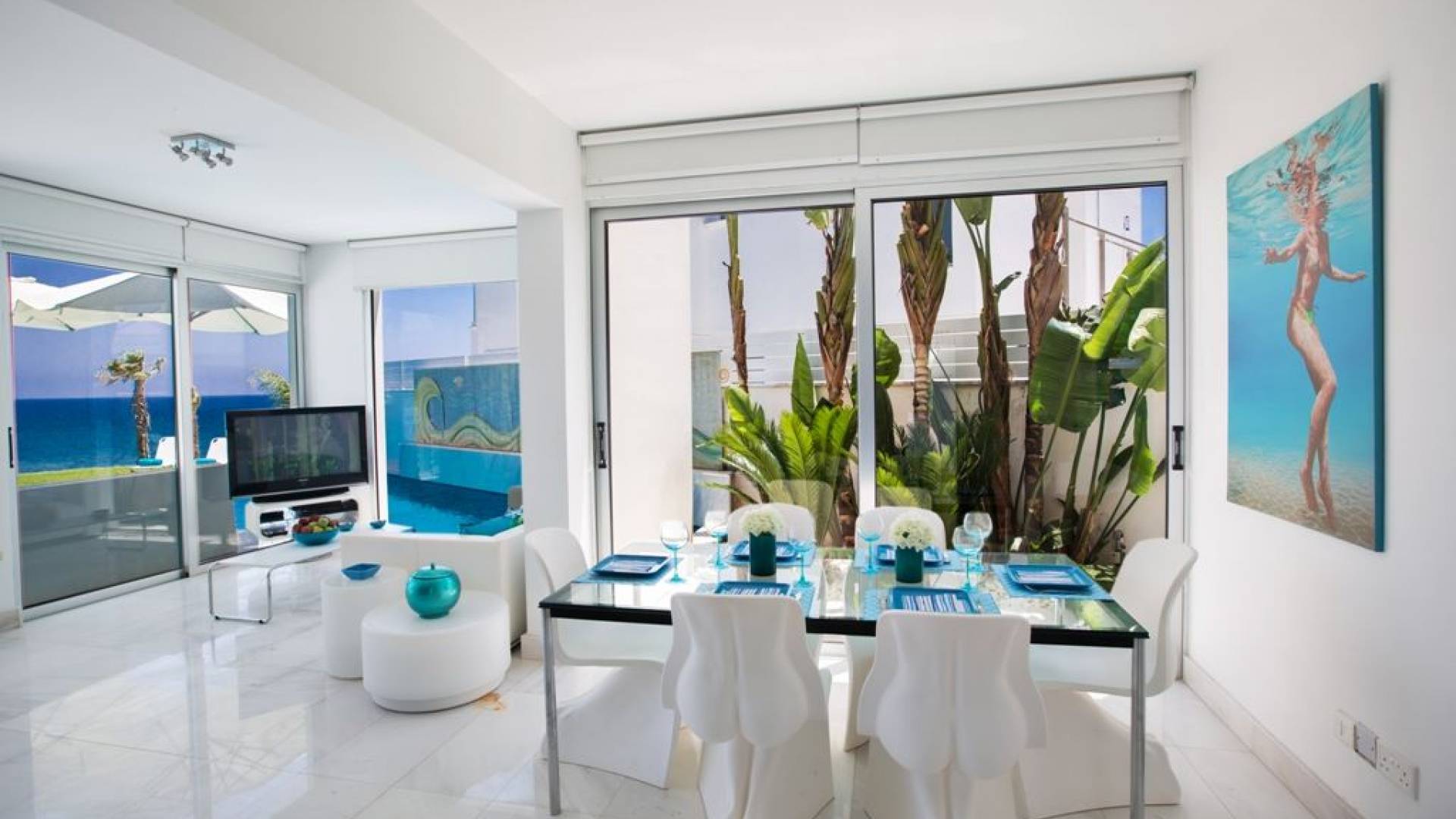 Villa Romantica Protaras es una villa de lujo en alquiler con 4 dormitorios y piscina privada. Esta impresionante villa disfruta de una fabulosa posición frente al mar con vistas panorámicas al mar. Situada entre Pernera y Kapparis, la villa se encuentra en el escenario perfecto para unas relajantes vacaciones en familia. La playa de arena más cercana está a solo 150 metros de la villa y una selección de restaurantes y tiendas se encuentran a poca distancia a pie.