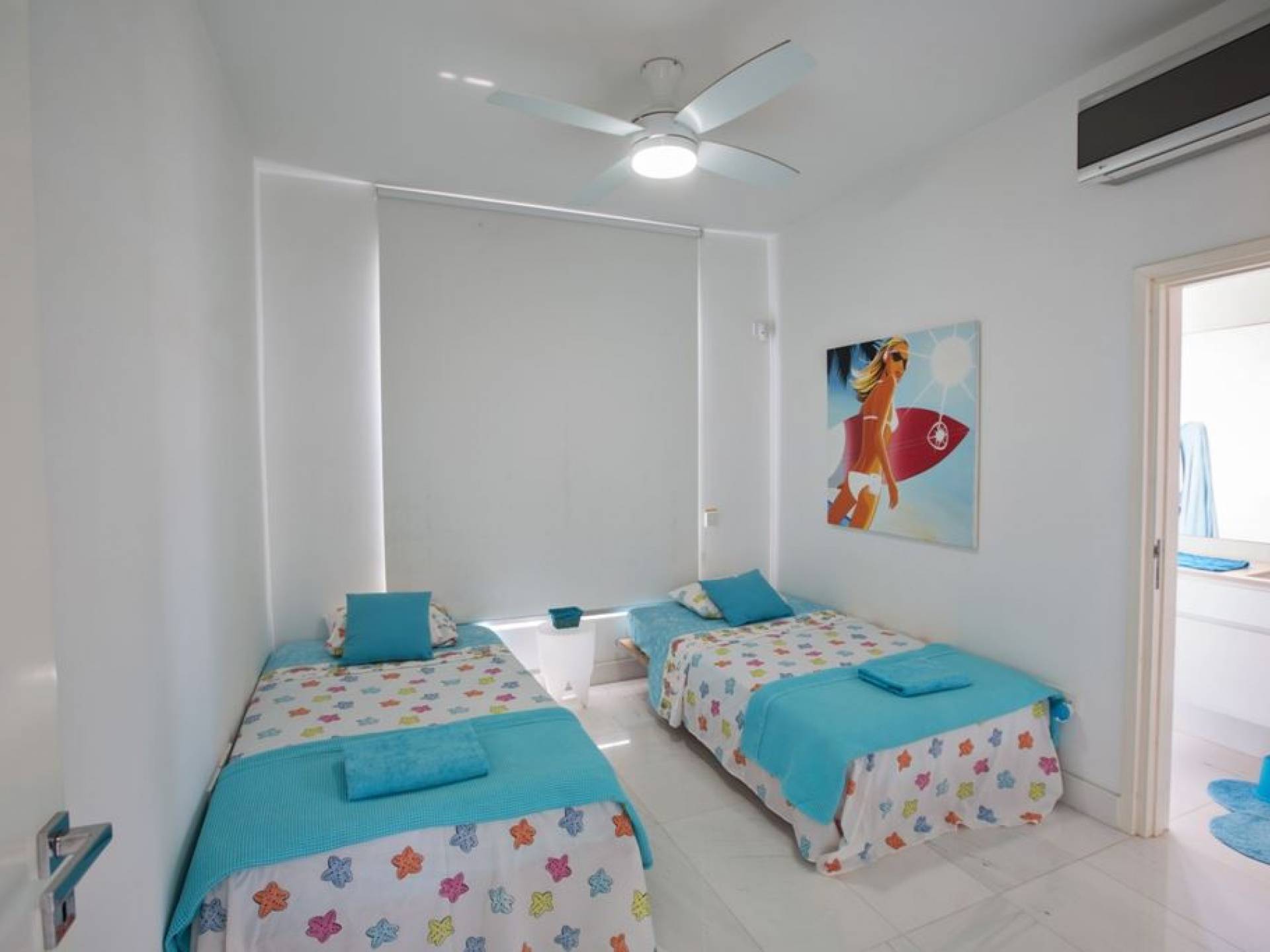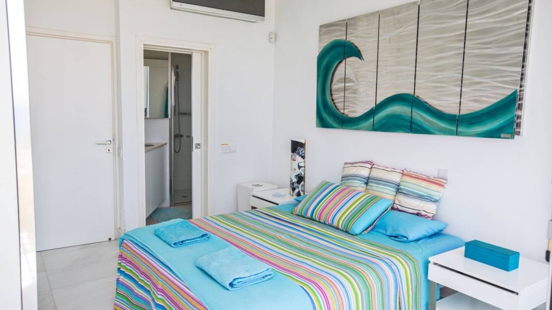 La villa está distribuida en 4 niveles y es muy moderna con un atractivo tema mediterráneo y habitaciones amplias, luminosas y aireadas. La planta baja cuenta con una sala de estar y cocina de planta abierta, con dos áreas de estar separadas y vistas al mar desde todos los ángulos. Arriba hay 3 dormitorios en suite, 2 con camas dobles y vistas al mar y una habitación doble.