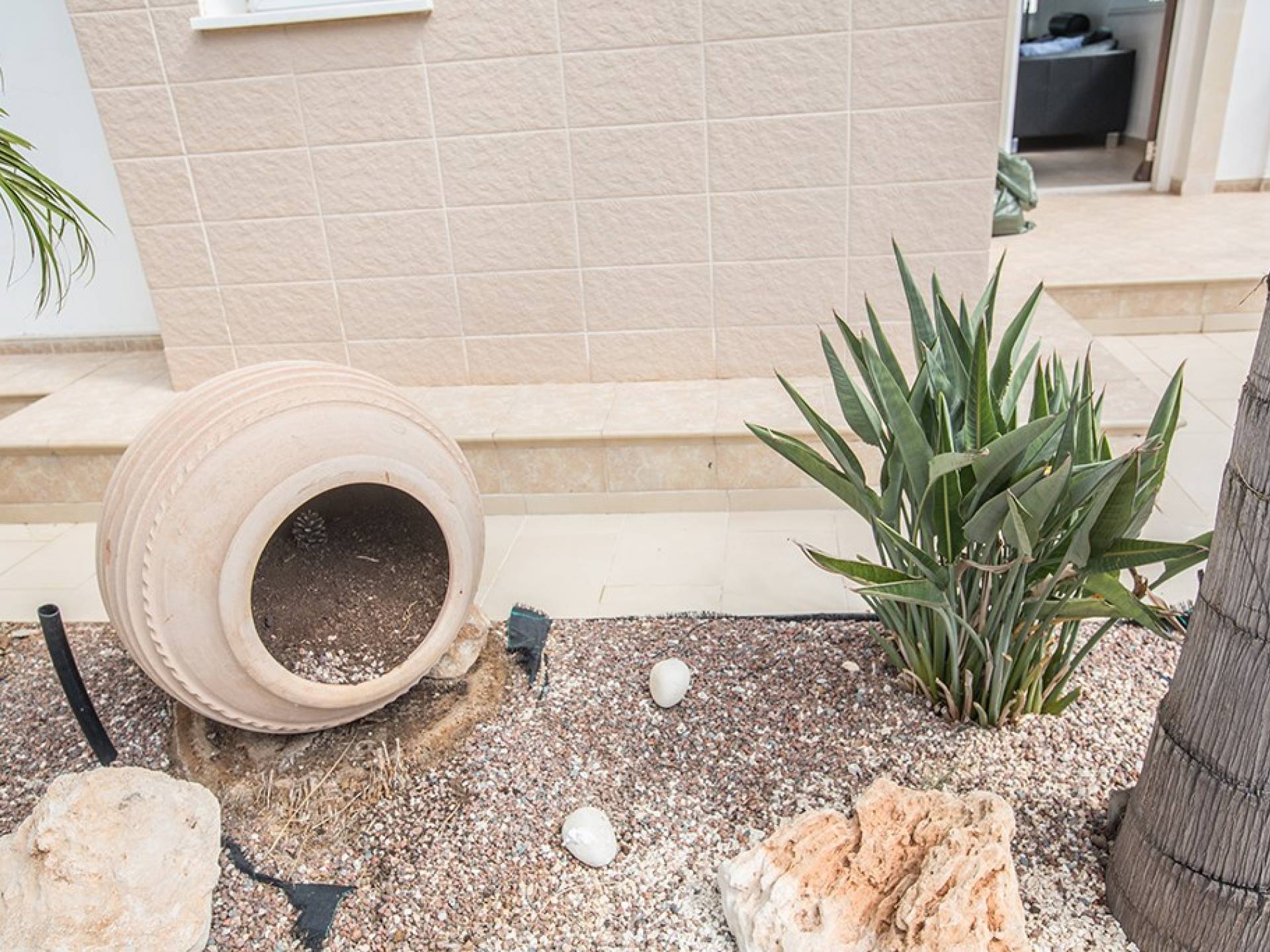 Arriba, hay 3 amplios dormitorios. El dormitorio principal tiene una cama doble y un baño con ducha. El segundo dormitorio también tiene una cama doble y el tercer dormitorio tiene 2 camas individuales. Todos los dormitorios tienen armarios empotrados y mesitas de noche. También hay un baño familiar con bañera y ducha fija. En el exterior, el soleado jardín y la zona de la piscina ofrecen mucho espacio para tomar el sol, relajarse y comer al aire libre. Se proporciona una barbacoa de obra, muebles de jardín y tumbonas. En general, una villa moderna y cómoda en una excelente ubicación.