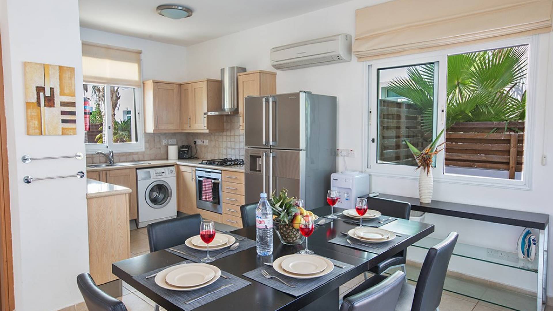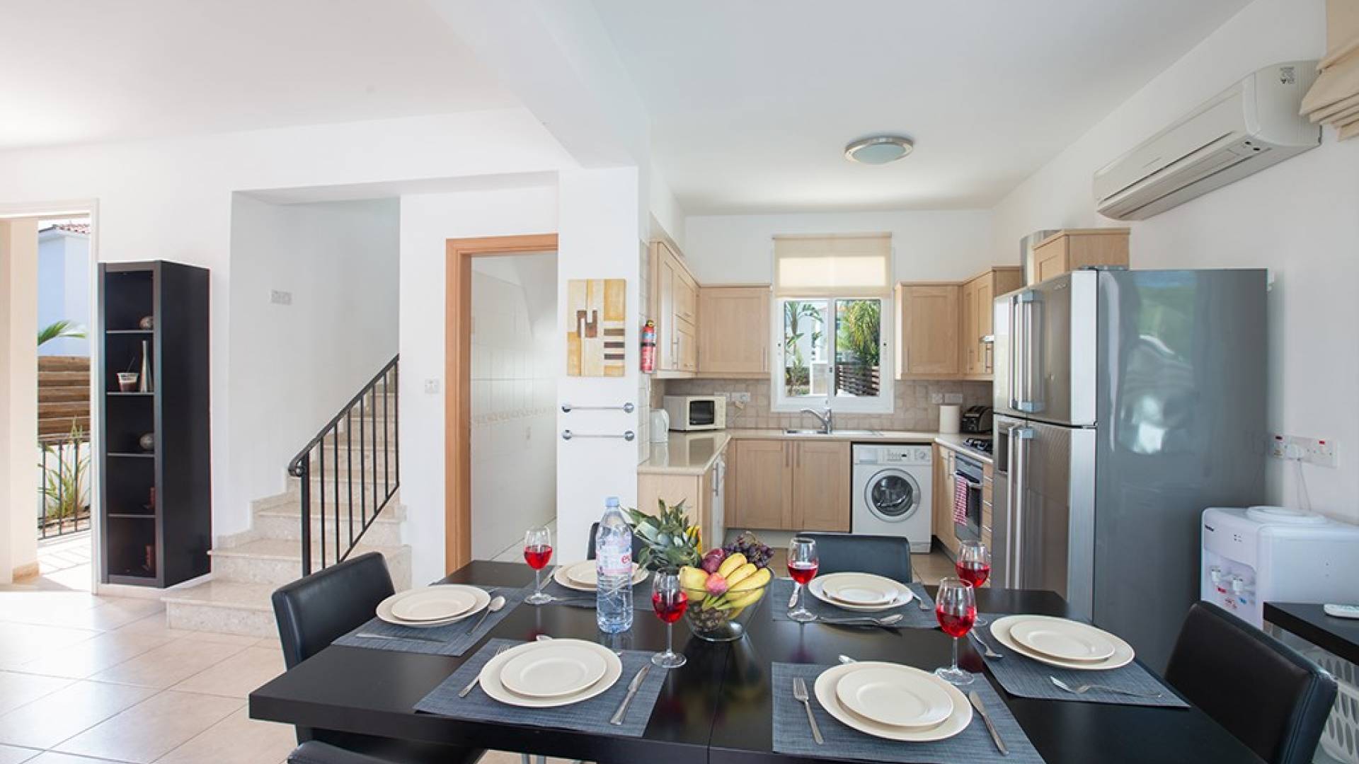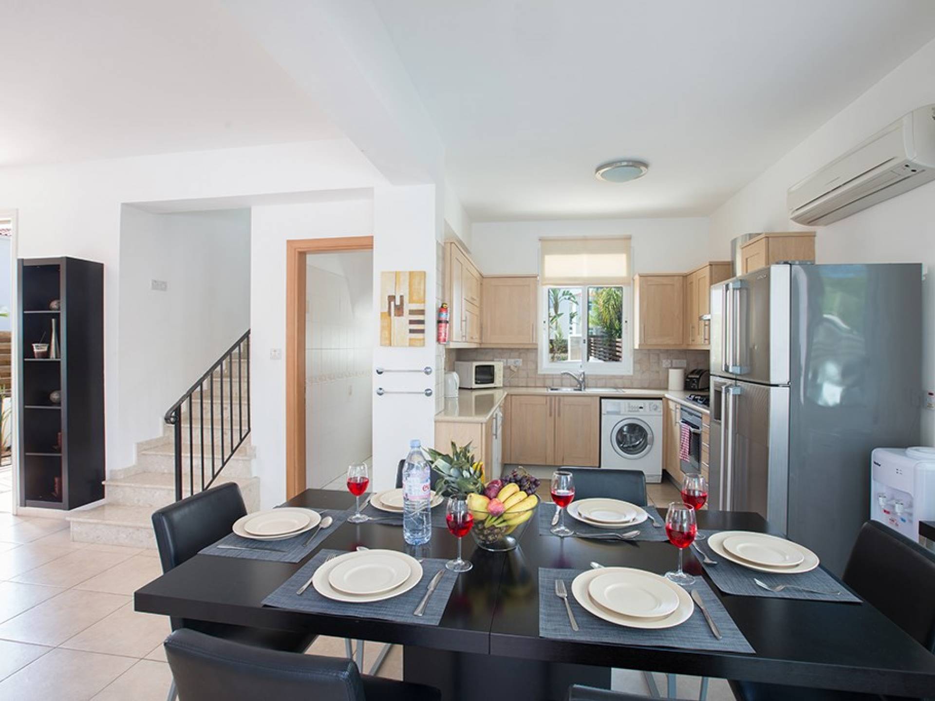 En el interior, la villa está muy bien amueblada con una decoración moderna. La planta baja cuenta con una sala de estar de planta abierta, un comedor con capacidad para 8 personas y una cocina totalmente equipada. Se proporciona un televisor de pantalla ancha, reproductor de DVD, televisión por satélite, WIFI y estación de conexión para iPod/iPhone. También hay un W/C en este piso.