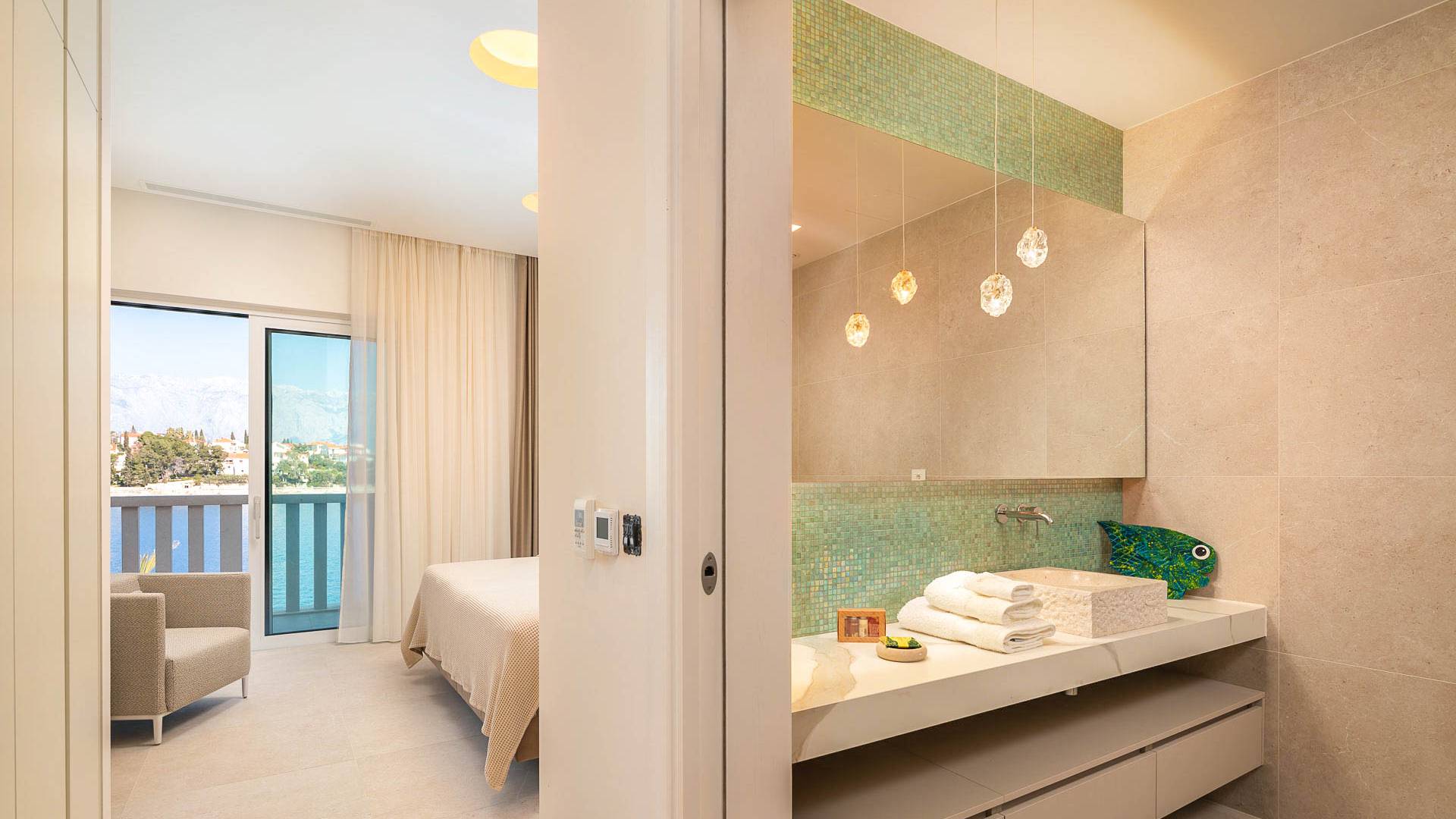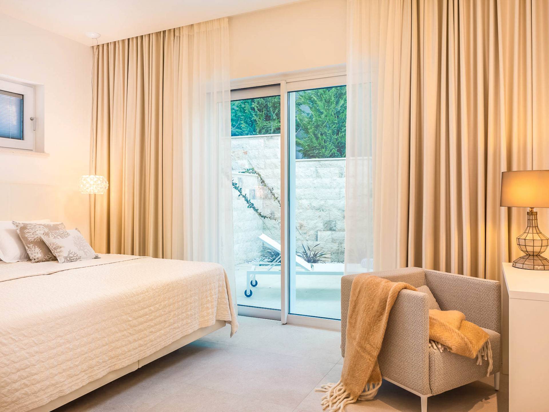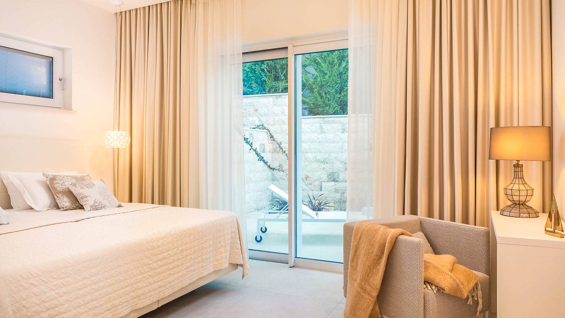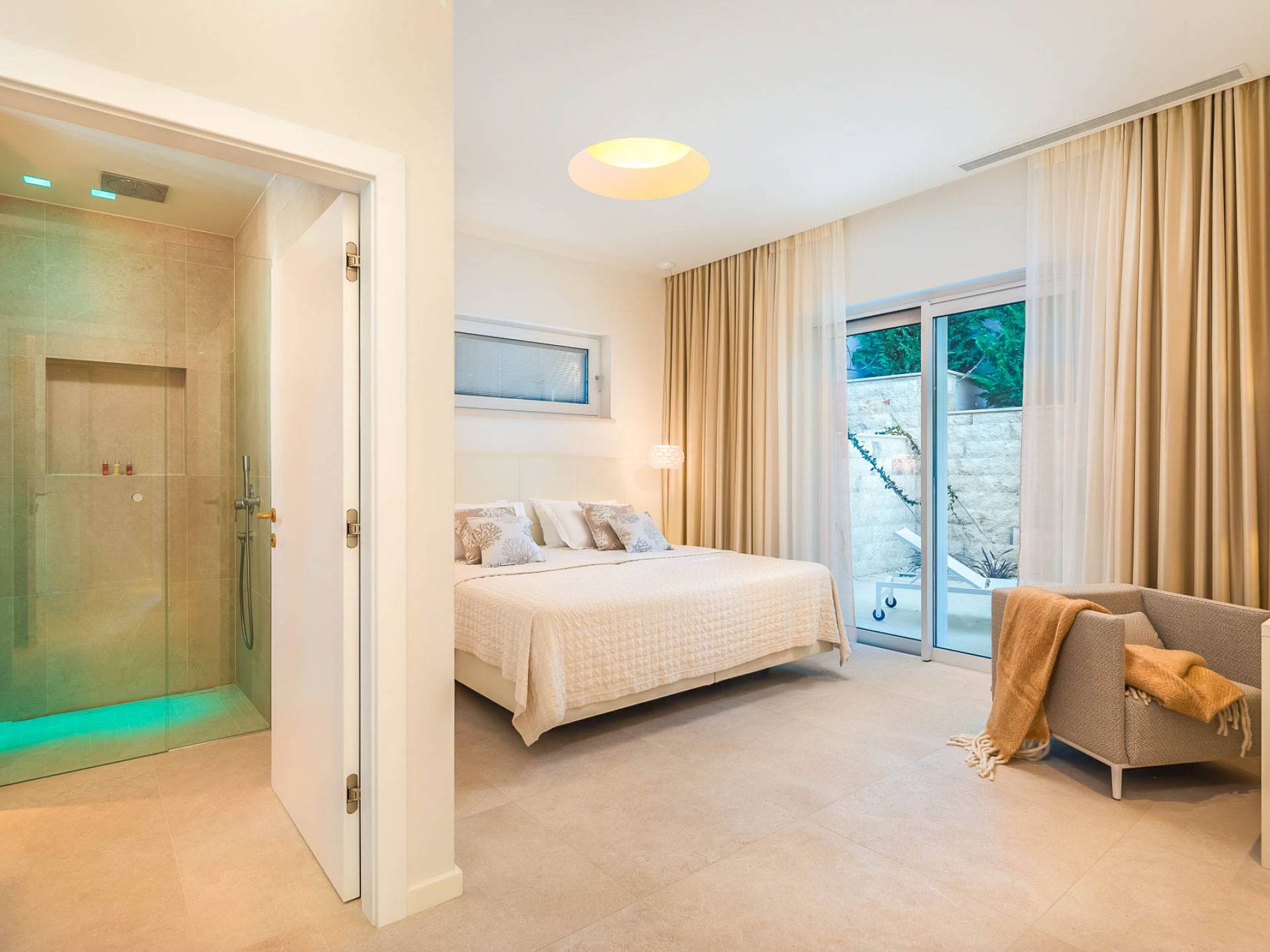 La villa presenta  cuatro espaciosas habitaciones privadas  con camas king-size, a  Cocina profesional totalmente equipada , a  Wine Cellar , a  sala de estar elegante con televisión inteligente , a  privado gym , y un
