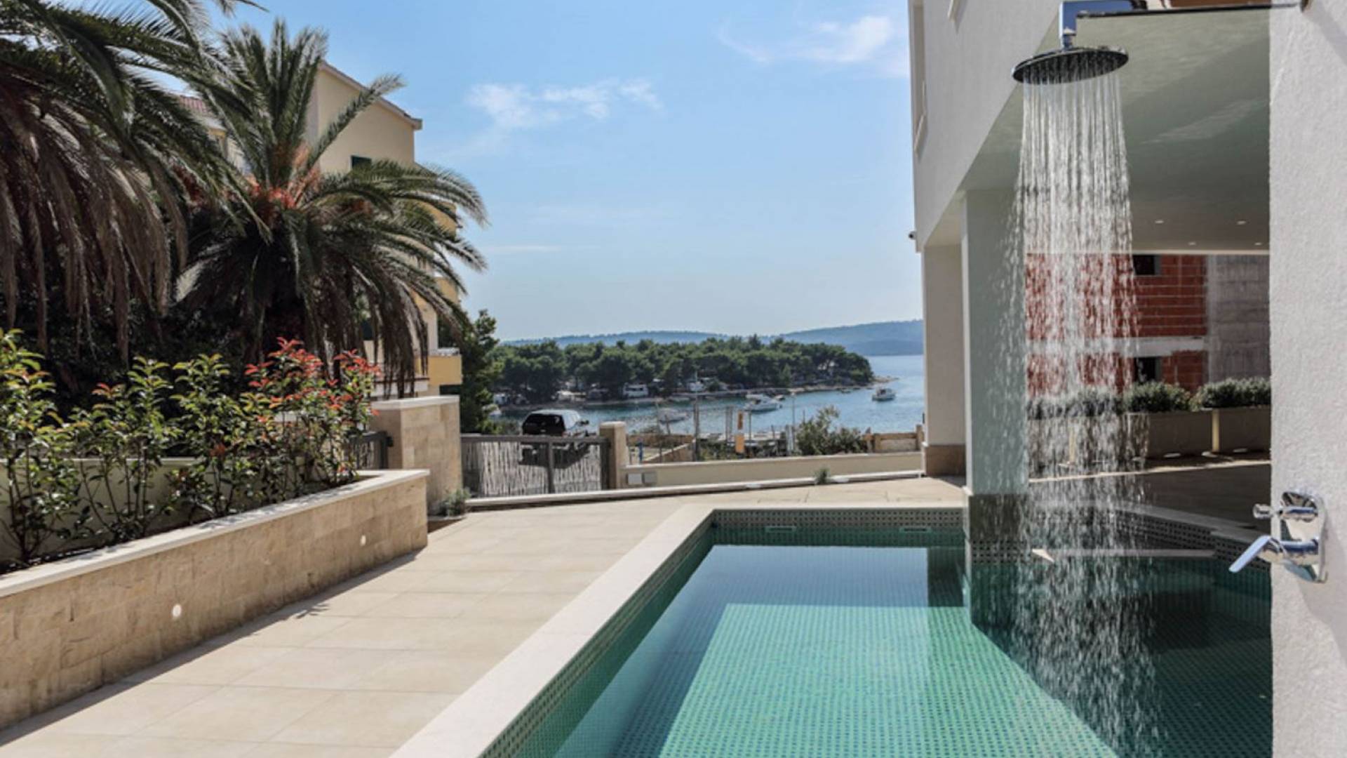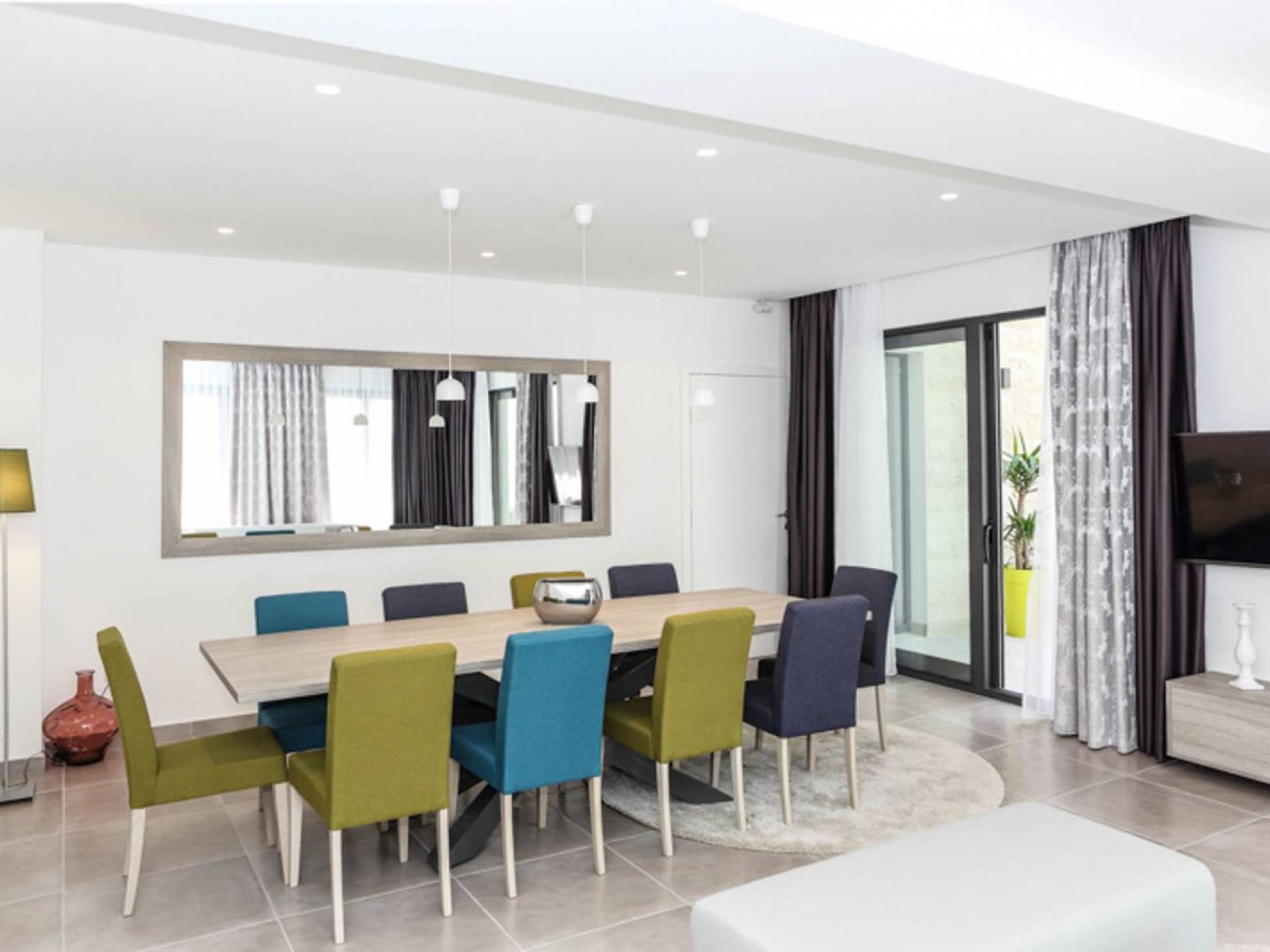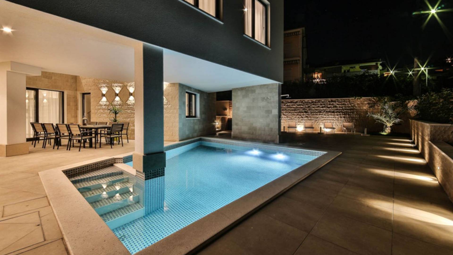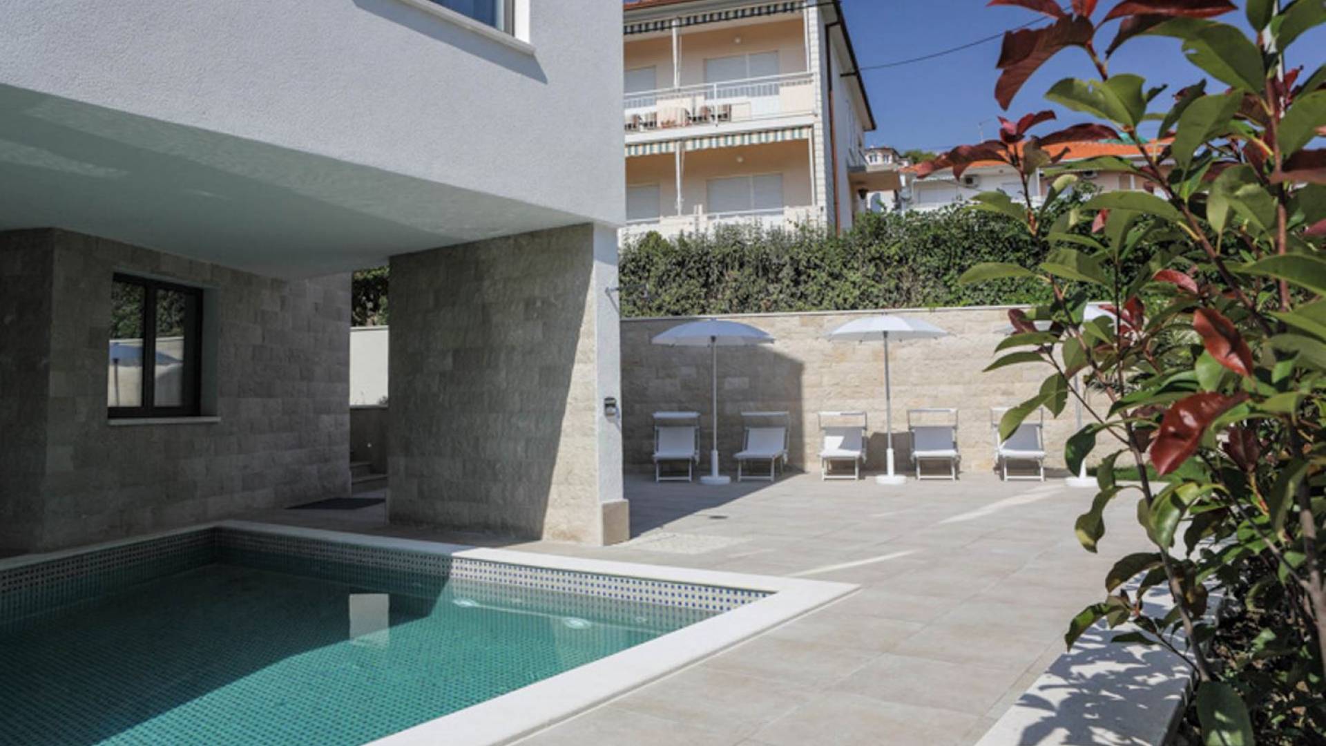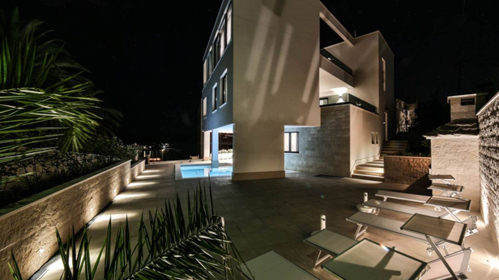Villa Novela Ciovo es una villa de lujo en alquiler con 7 habitaciones y piscina privada. La villa Novela, moderna y de nueva construcción, está situada cerca de la antigua ciudad de Split y la ciudad de Trogir, ambas con sus sitios del patrimonio mundial de la UNESCO. Dado que la isla Ciovo es una especie de extensión de la ciudad de Trogir, ofrece muchas posibilidades para vacaciones, recreación y natación, así como numerosos monumentos históricos. La vegetación mediterránea, un archipiélago con pequeños islotes pintorescos, clima templado y playas bellísimas en calas escondidas, sin duda harán que su estancia sea inolvidable.