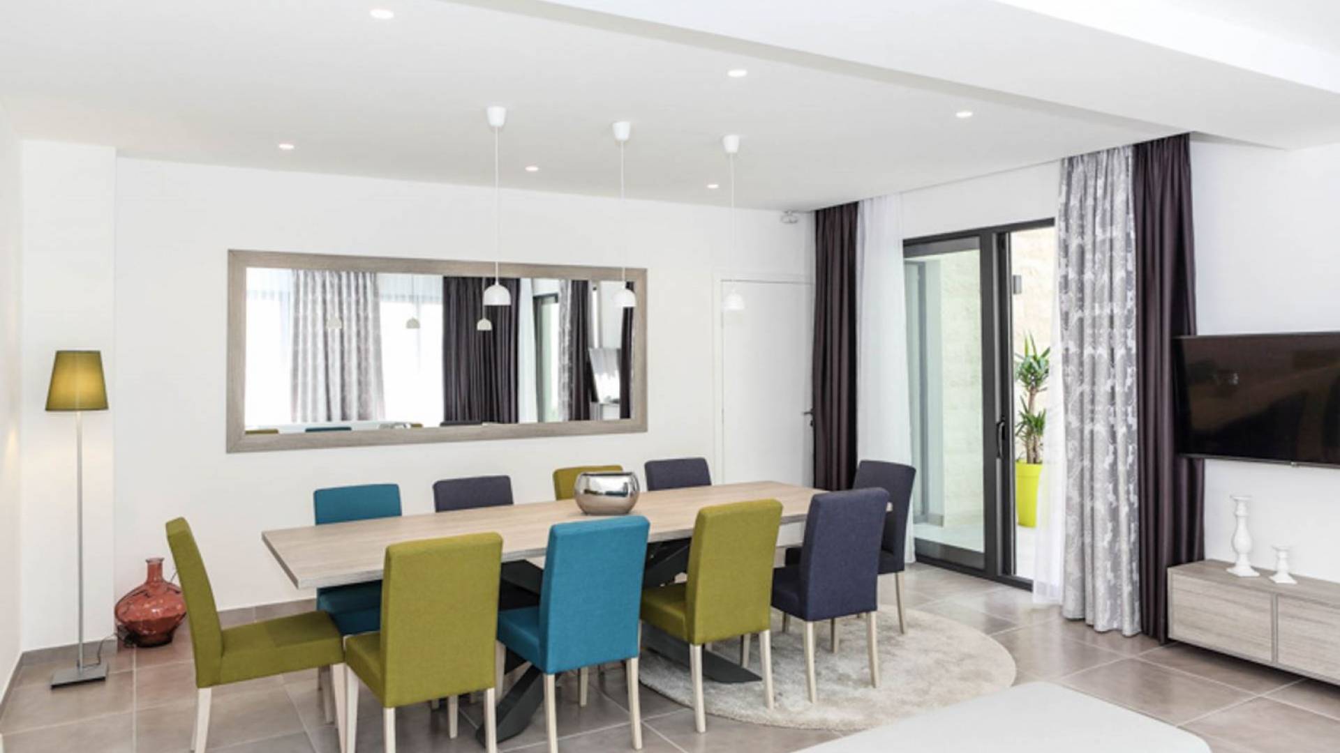Los 363m² de la villa aportan comodidad, amplitud y estilo en cada estancia: 7 dormitorios dobles en suite, 1 baño adicional, cocina – comedor y sala de estar totalmente equipada. La propiedad se extiende sobre 650 m² y es un gran alojamiento para 14 personas. Villa Novela se divide en 4 niveles: sótano, planta baja, primer y segundo piso.