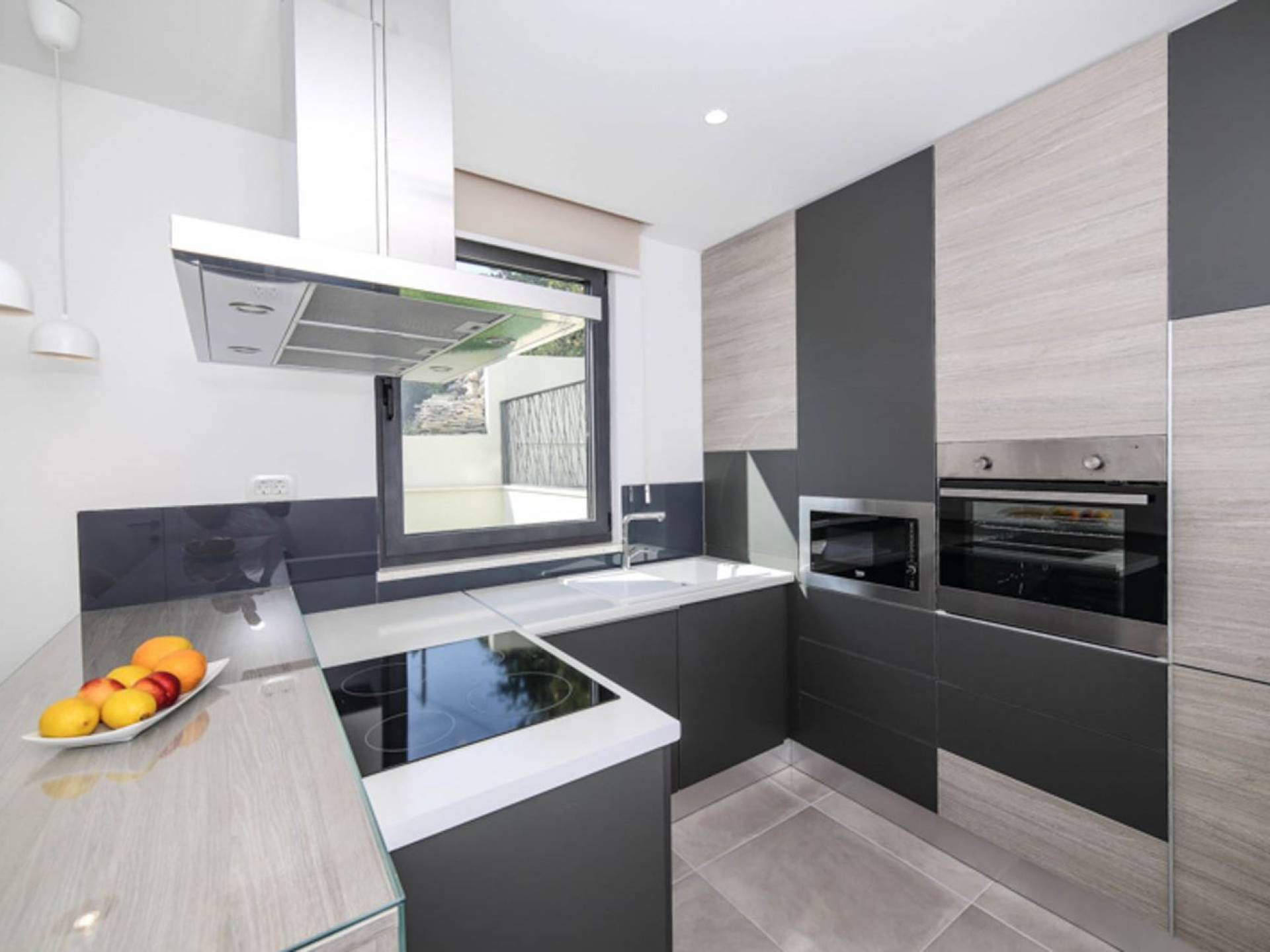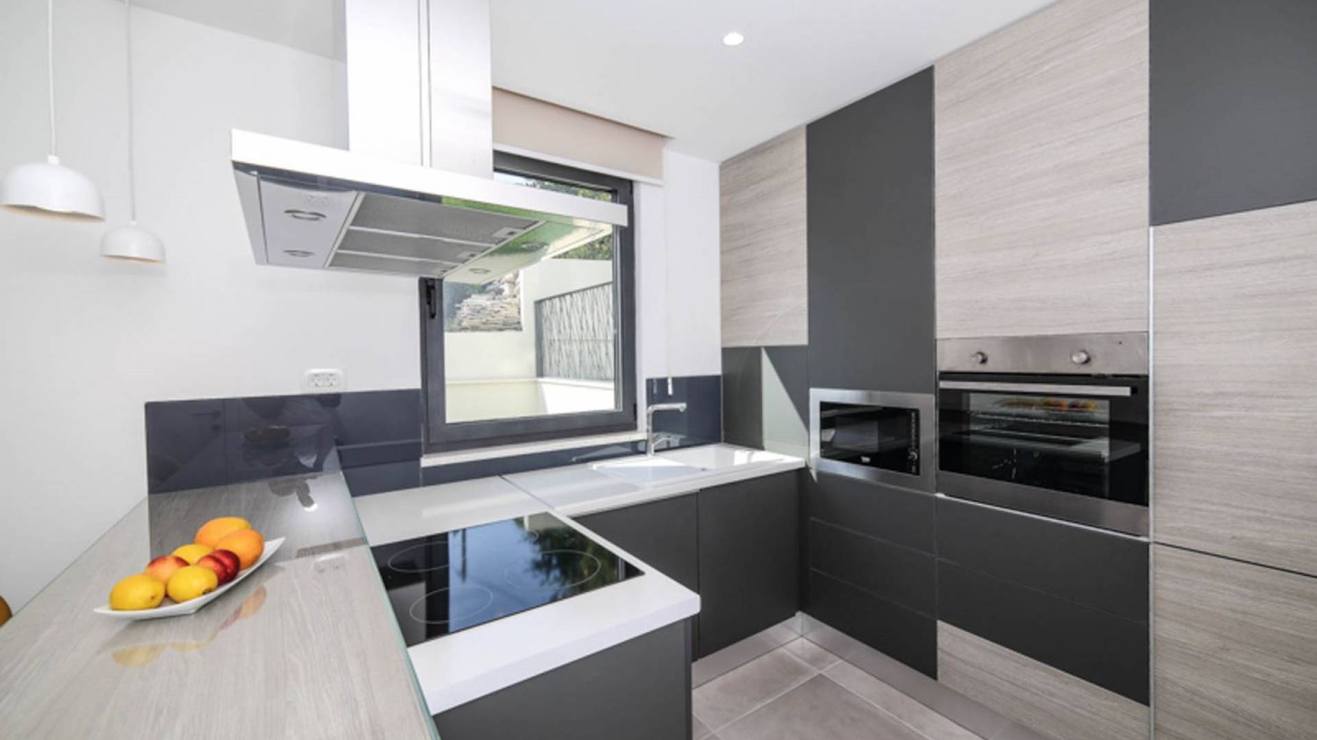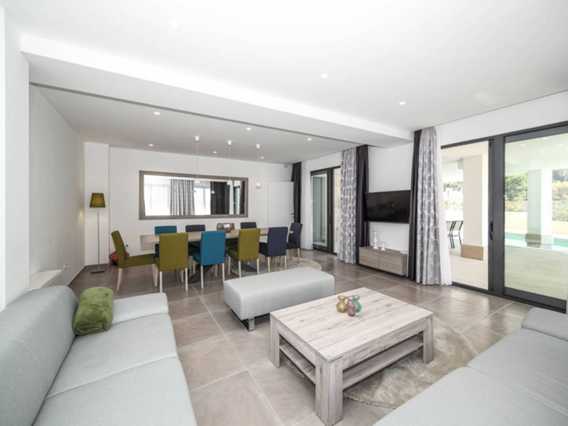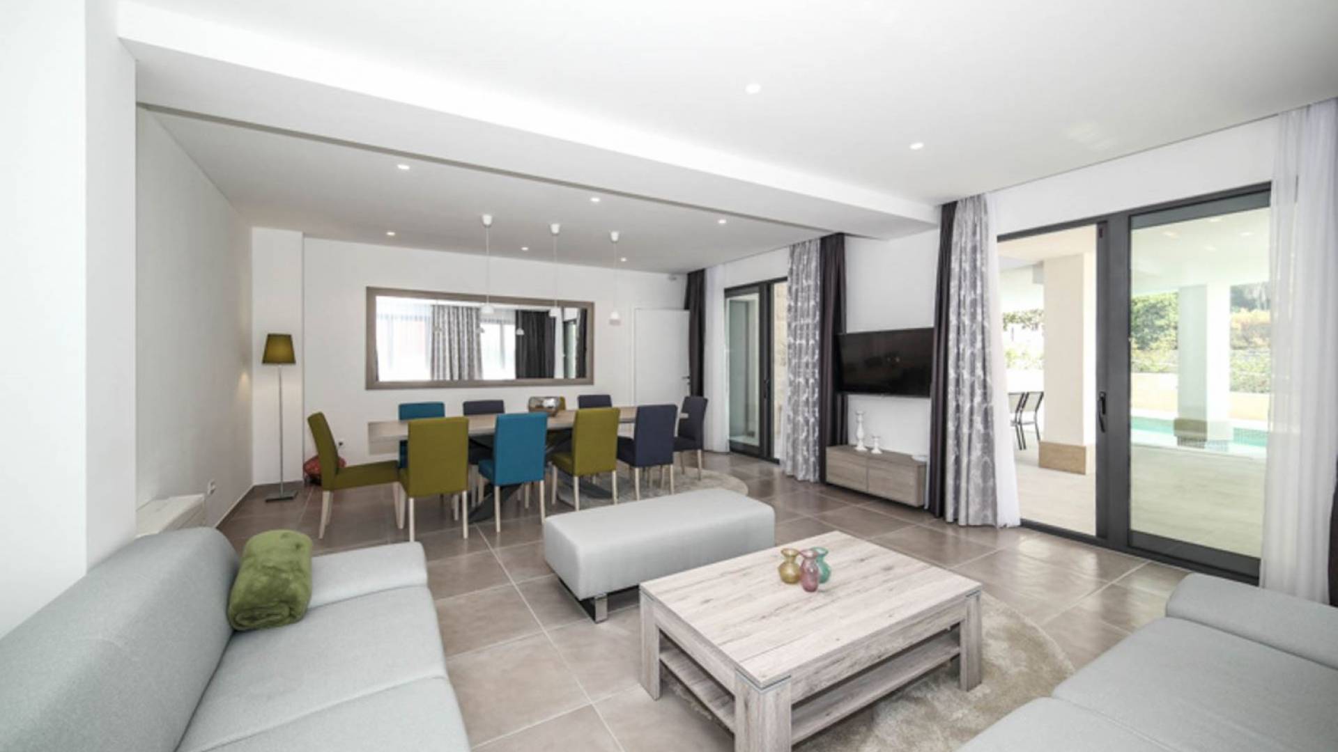 El sótano de villa Novela está diseñado como un área de recreación con gimnasio, sauna y jacuzzi interior. La planta baja consta de una elegante y espaciosa sala de estar con una gran mesa de comedor para comer y una cocina totalmente equipada. La primera y segunda planta están diseñadas como zona de noche con 7 dormitorios dobles con baño en suite. Amplias terrazas y balcones con mesas y sillas al aire libre, tumbonas y una impresionante vista al mar completan la sensación de estar en un pequeño paraíso.