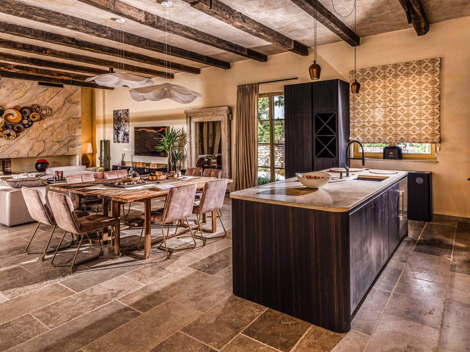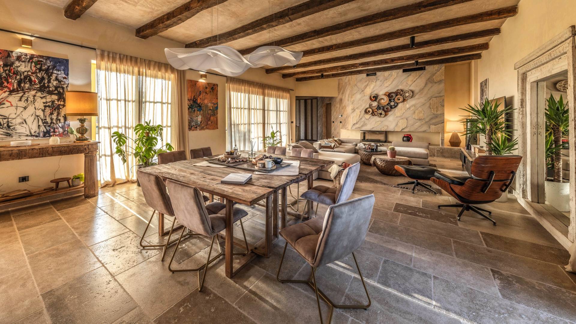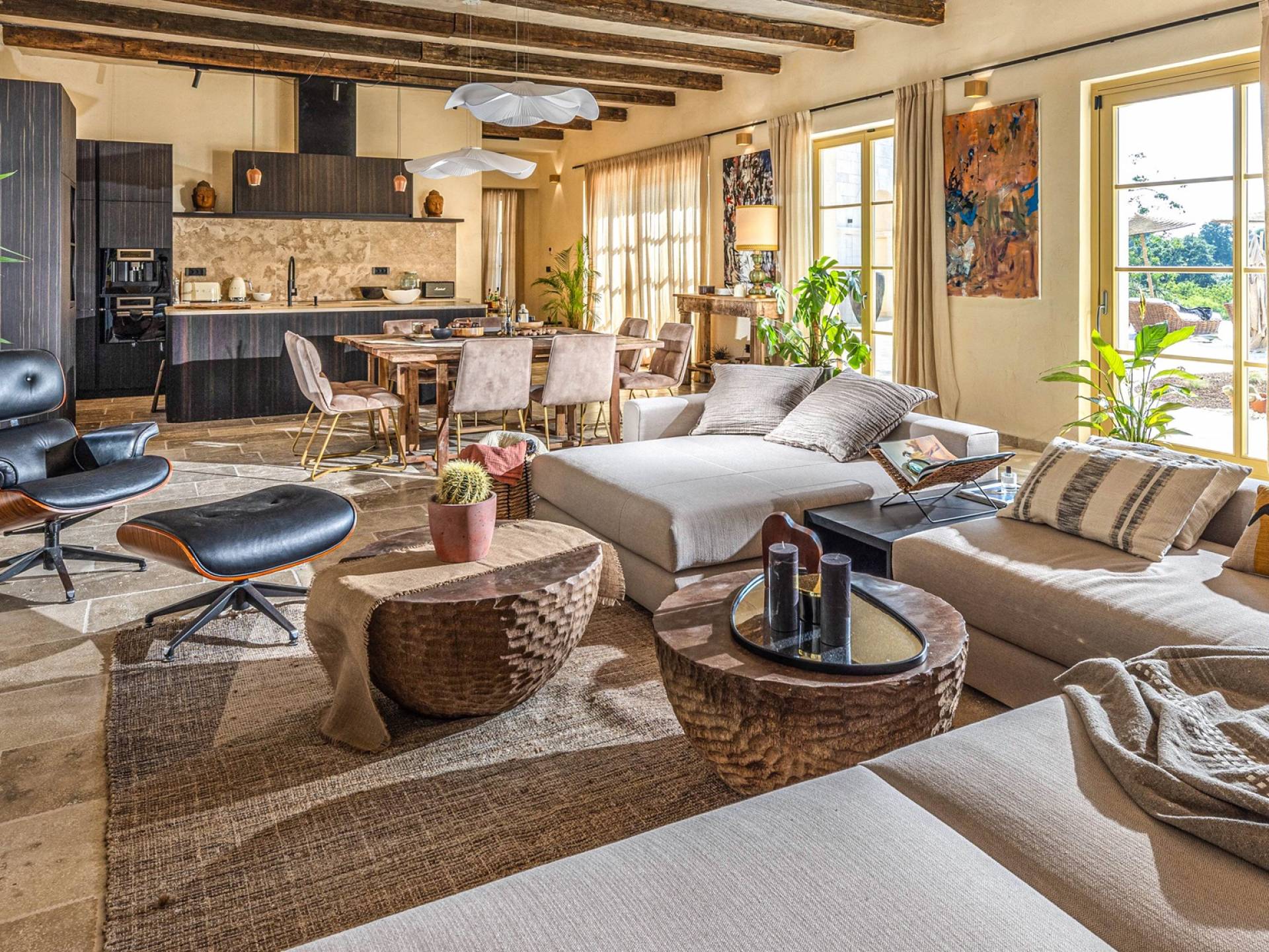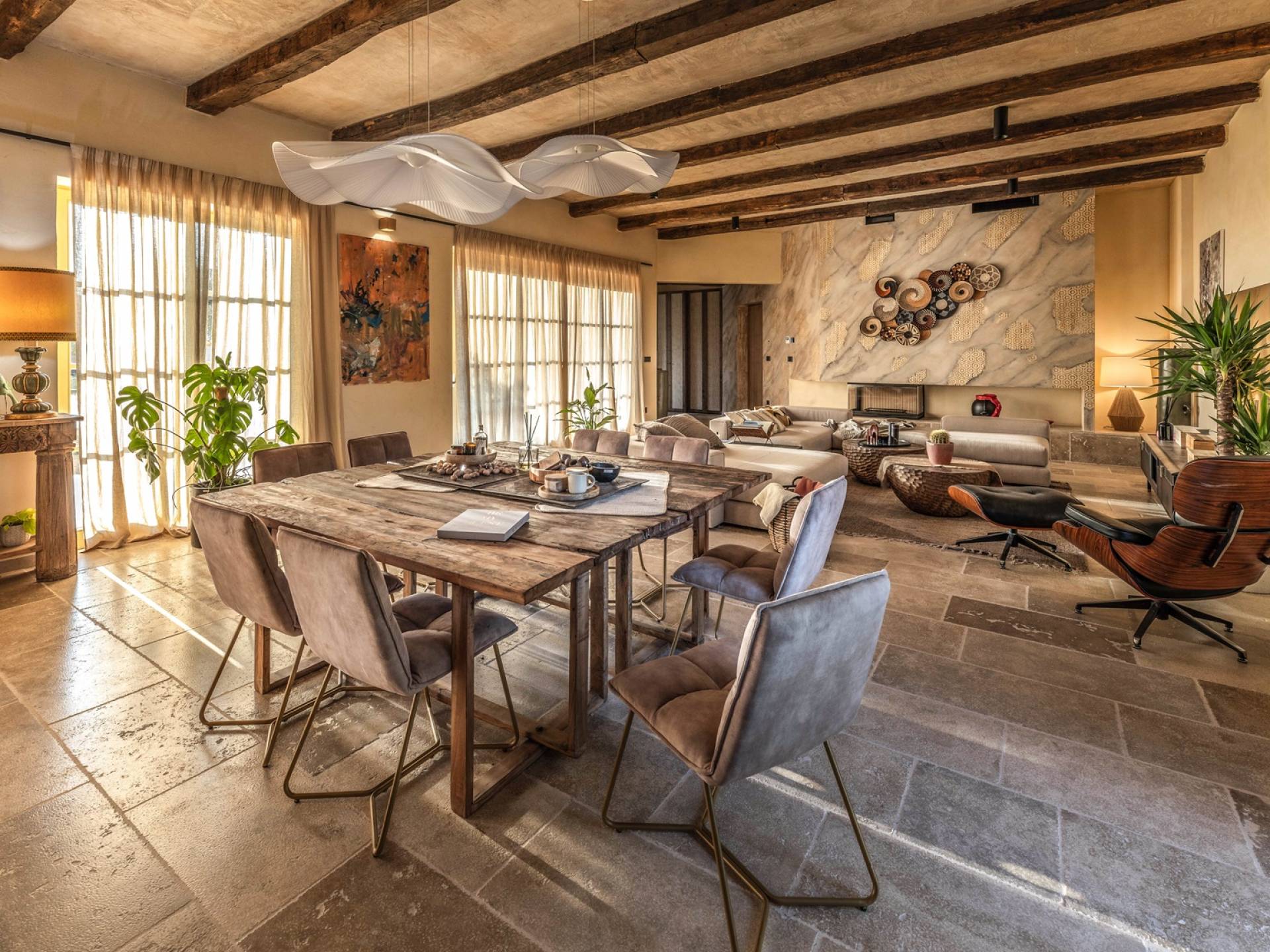 Dentro de Villa Calviá, quedará cautivado por su lujosa combinación de estilos. El interior de la villa combina a la perfección el encanto medieval con la sofisticación moderna. Los muebles y piezas de decoración rústicos provenzales, elaborados por artistas franceses menos conocidos, añaden un aire de exclusividad. Las influencias marroquíes e indias aportan un sutil exotismo, mientras que los muebles elegantes y modernos crean un contraste refrescante, lo que da como resultado un espacio elegante y ecléctico.