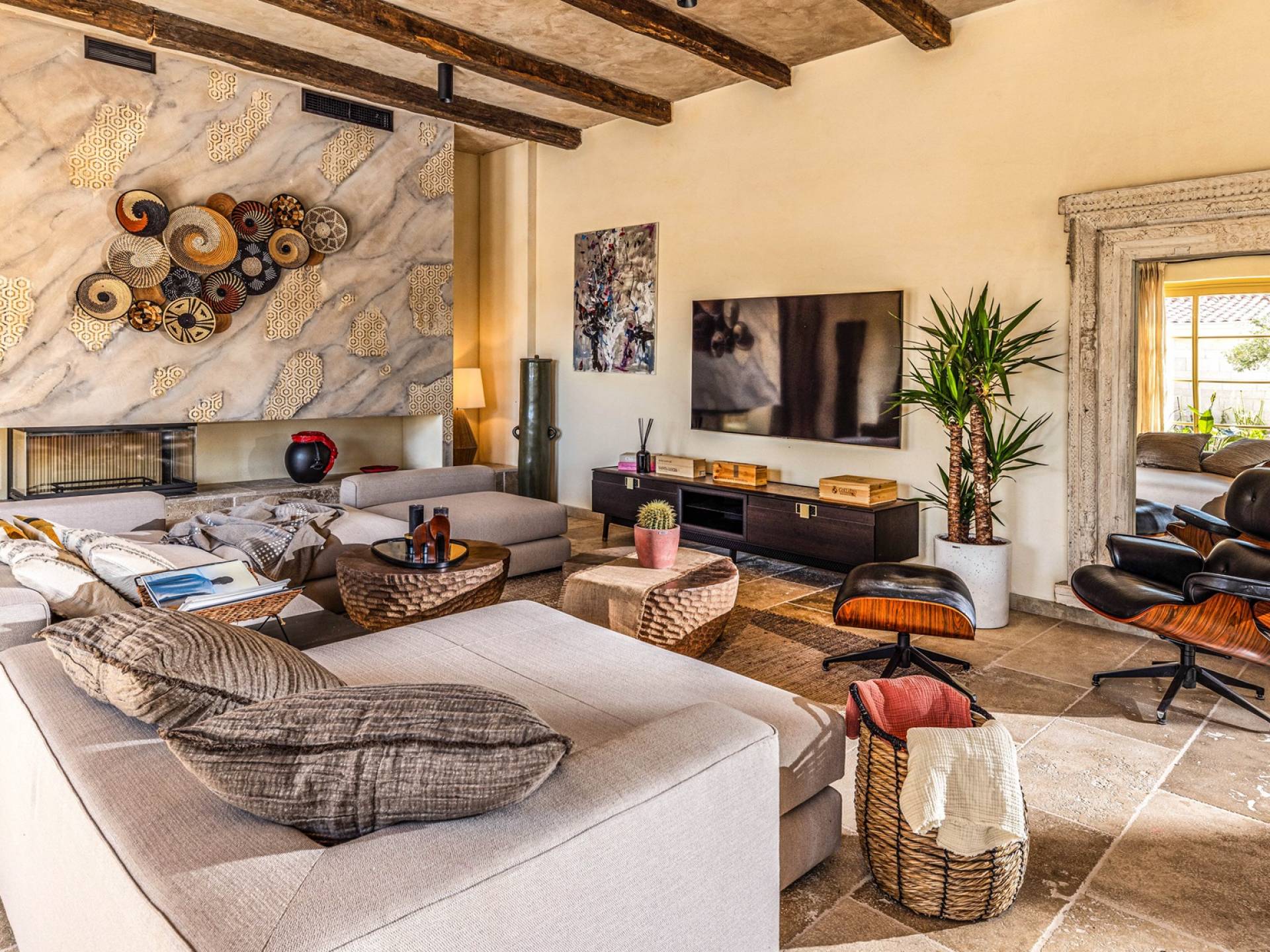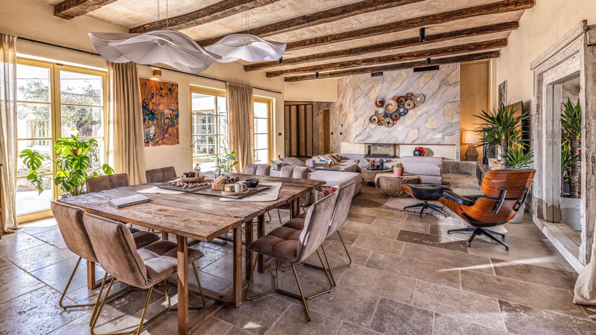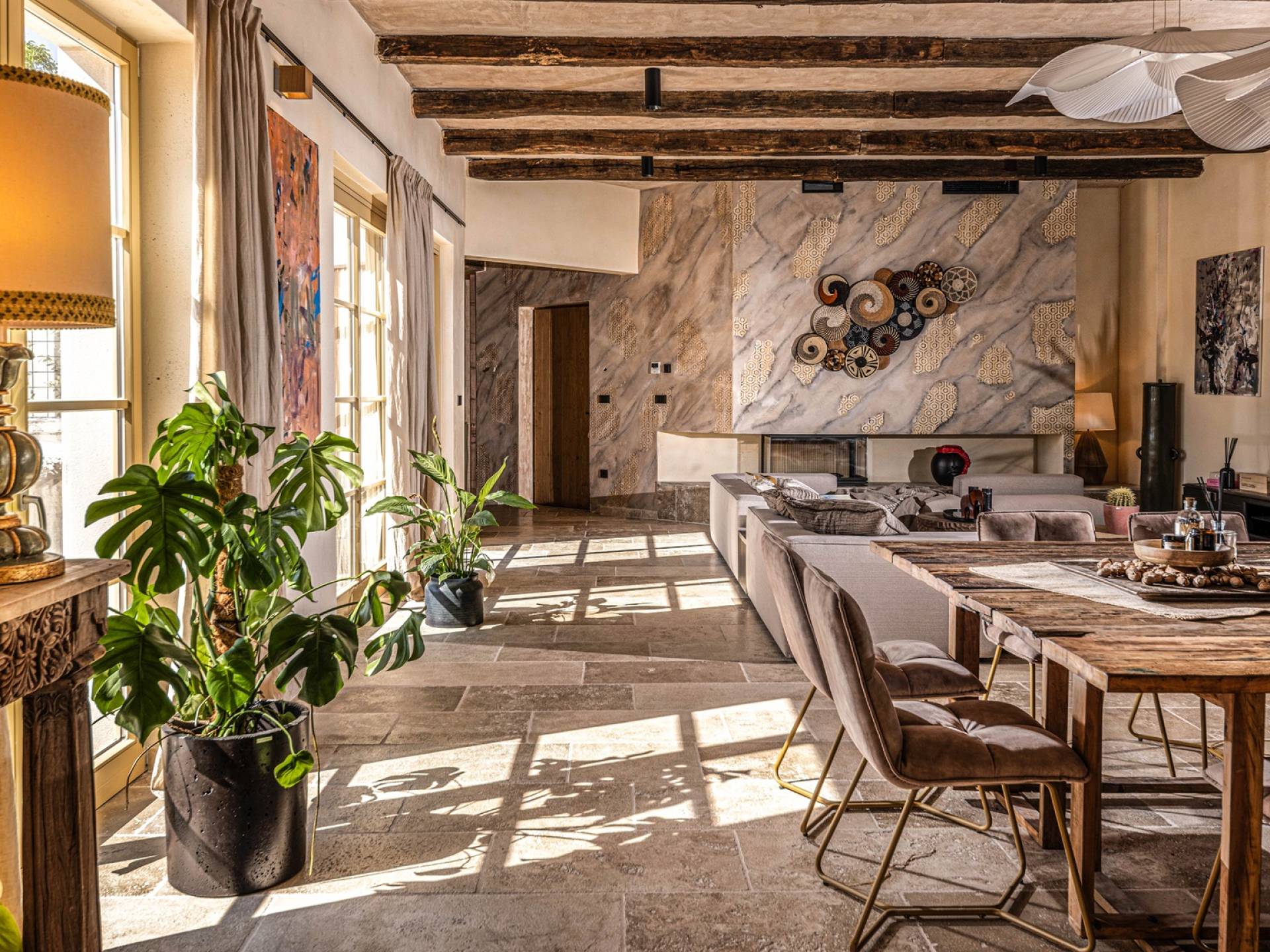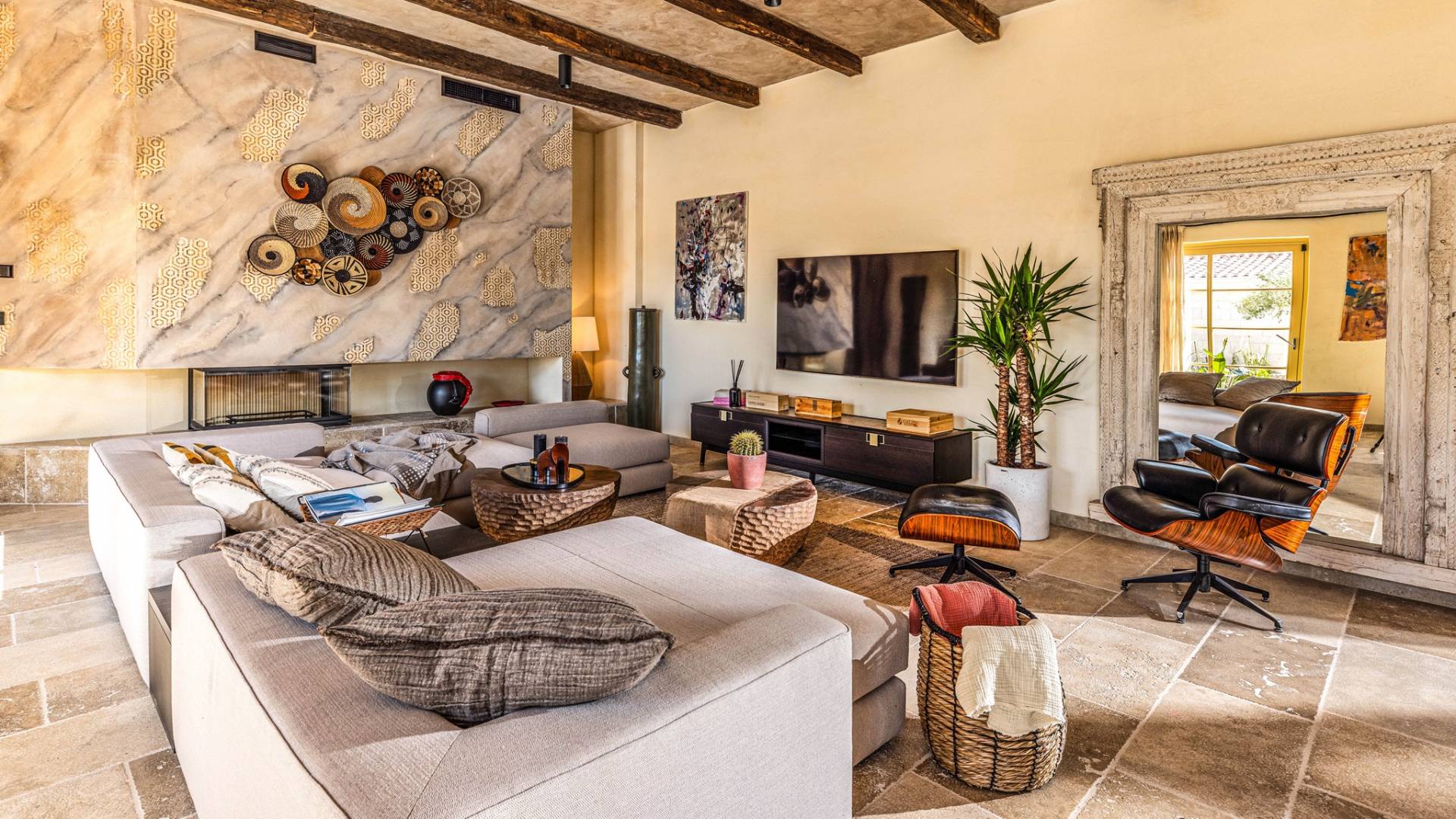 Dentro de Villa Calviá, quedará cautivado por su lujosa combinación de estilos. El interior de la villa combina a la perfección el encanto medieval con la sofisticación moderna. Los muebles y piezas de decoración rústicos provenzales, elaborados por artistas franceses menos conocidos, añaden un aire de exclusividad. Las influencias marroquíes e indias aportan un sutil exotismo, mientras que los muebles elegantes y modernos crean un contraste refrescante, lo que da como resultado un espacio elegante y ecléctico.