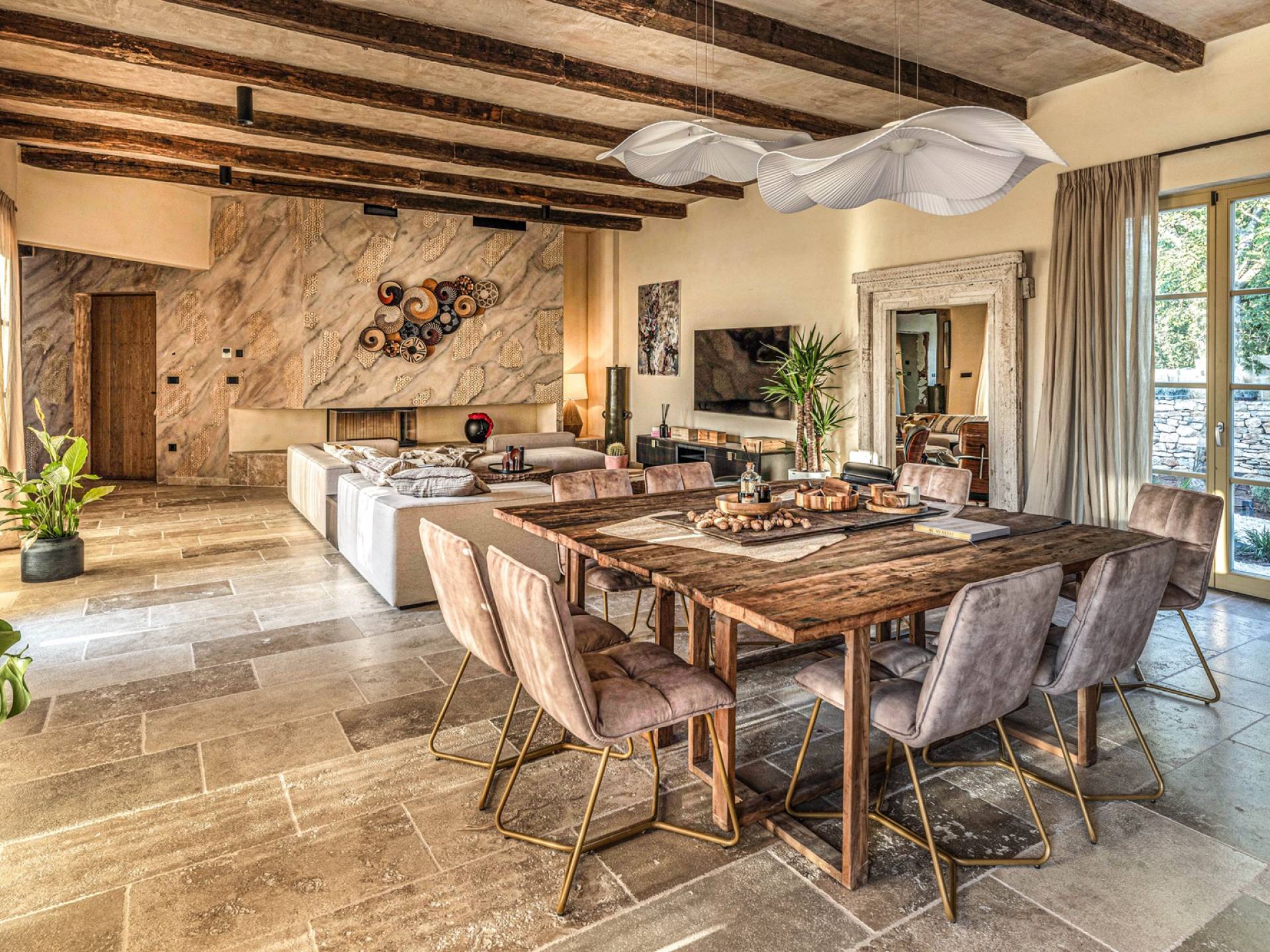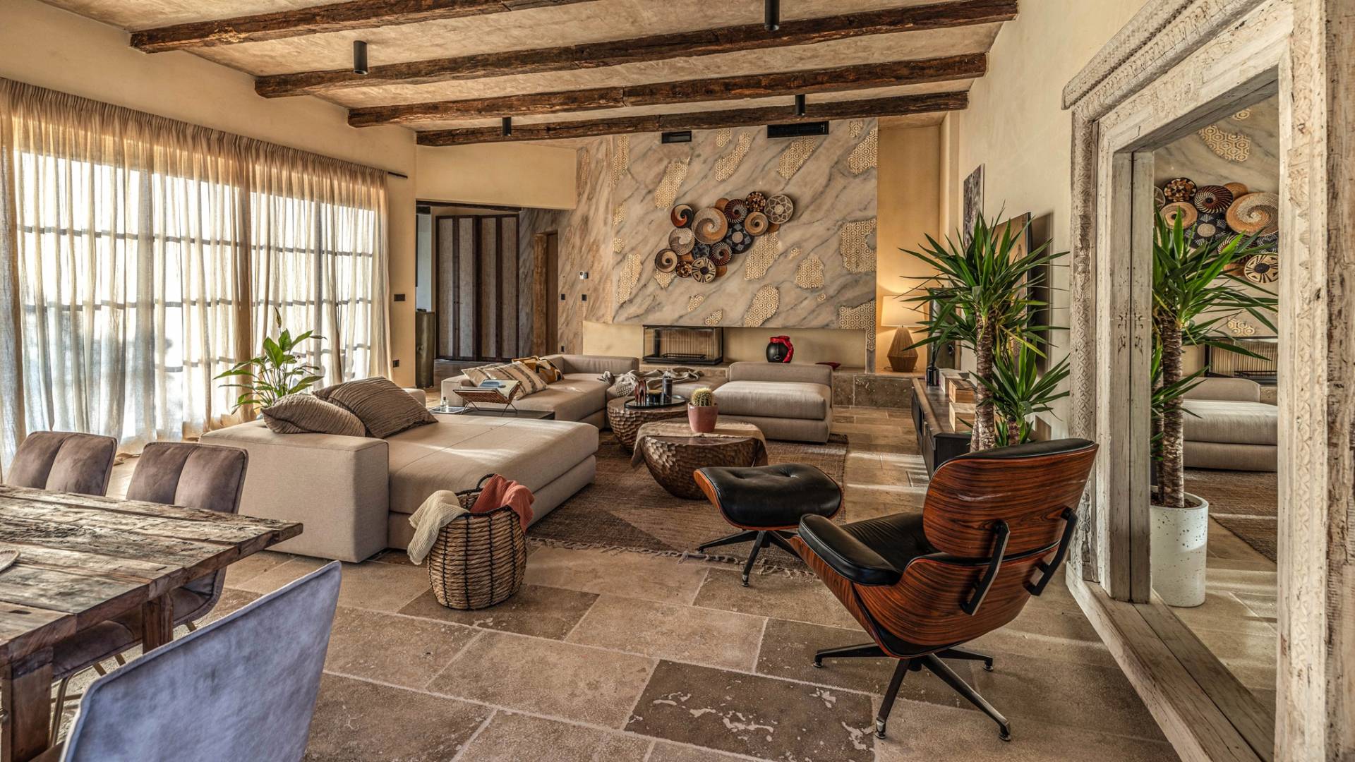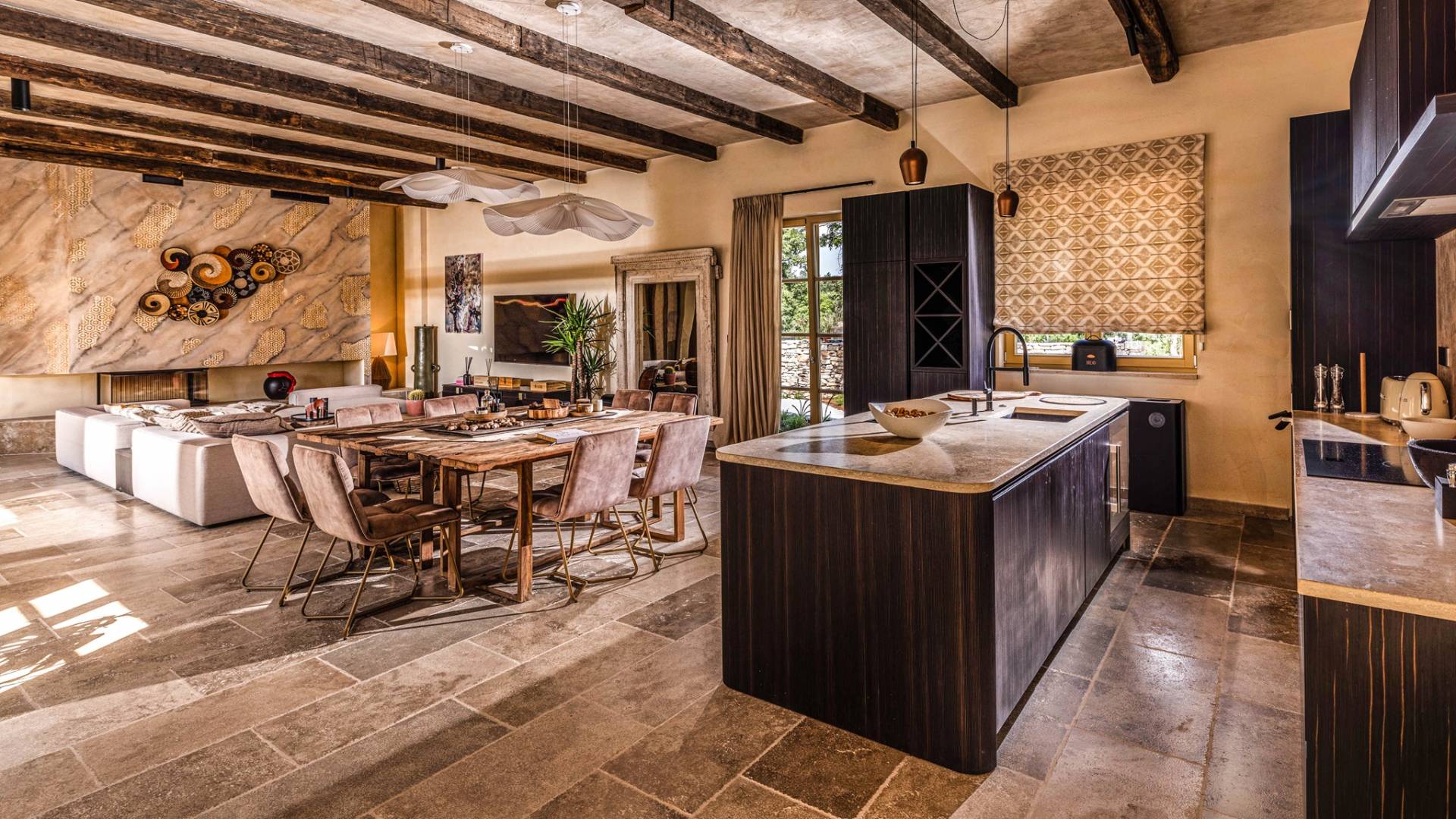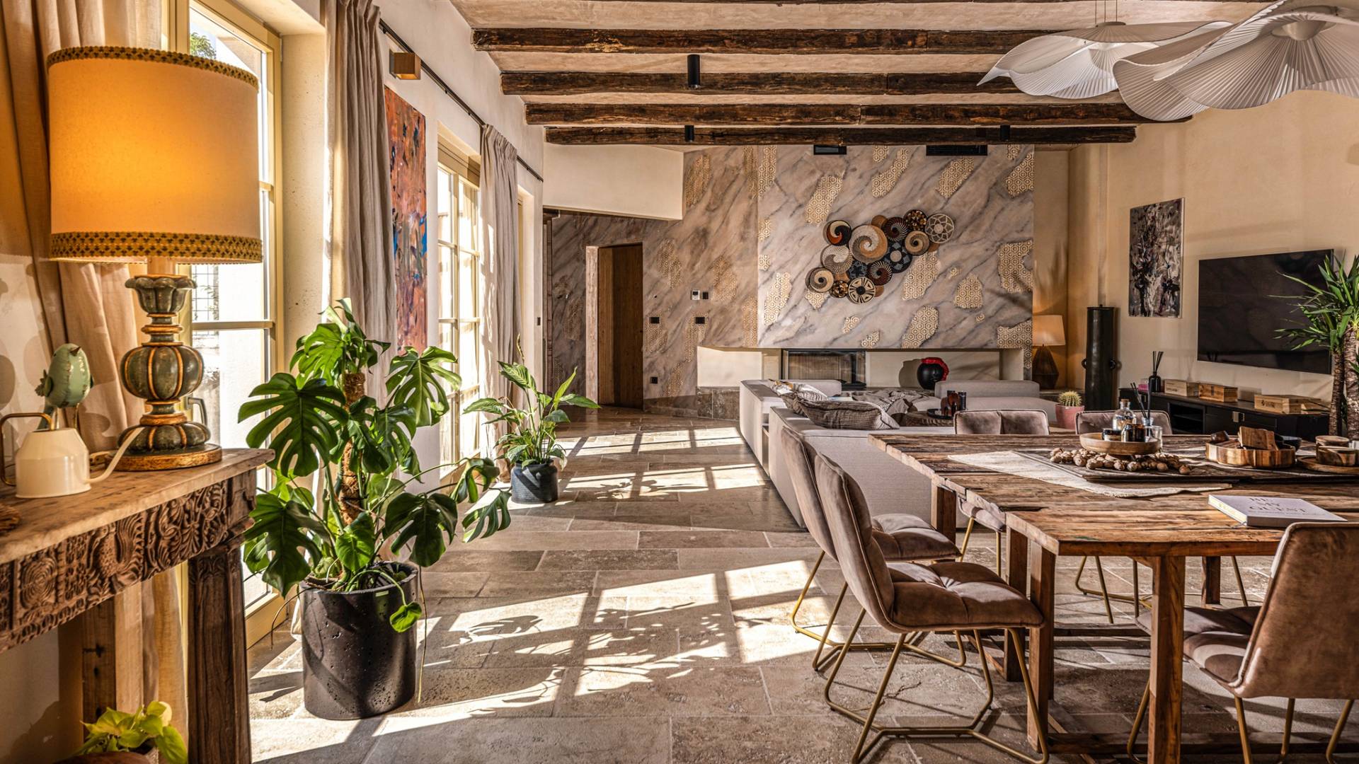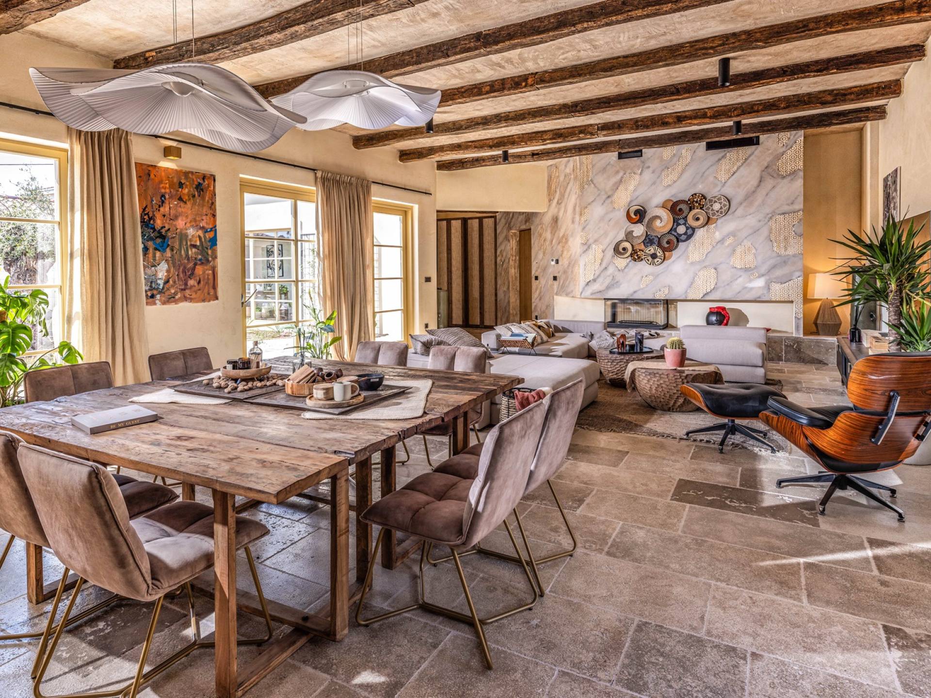 Dentro de Villa Calviá, quedará cautivado por su lujosa combinación de estilos. El interior de la villa combina a la perfección el encanto medieval con la sofisticación moderna. Los muebles y piezas de decoración rústicos provenzales, elaborados por artistas franceses menos conocidos, añaden un aire de exclusividad. Las influencias marroquíes e indias aportan un sutil exotismo, mientras que los muebles elegantes y modernos crean un contraste refrescante, lo que da como resultado un espacio elegante y ecléctico.