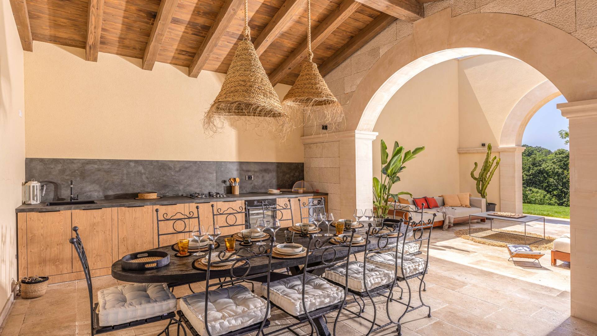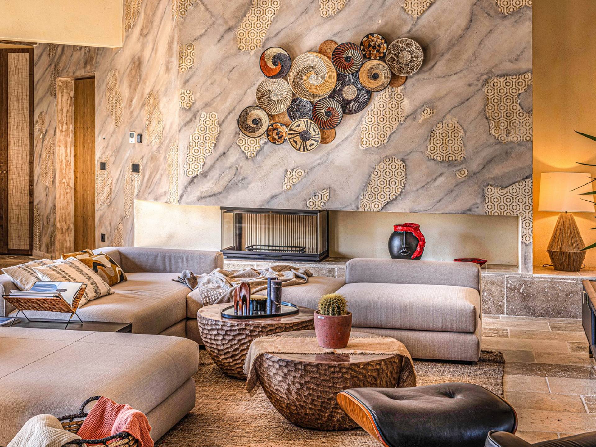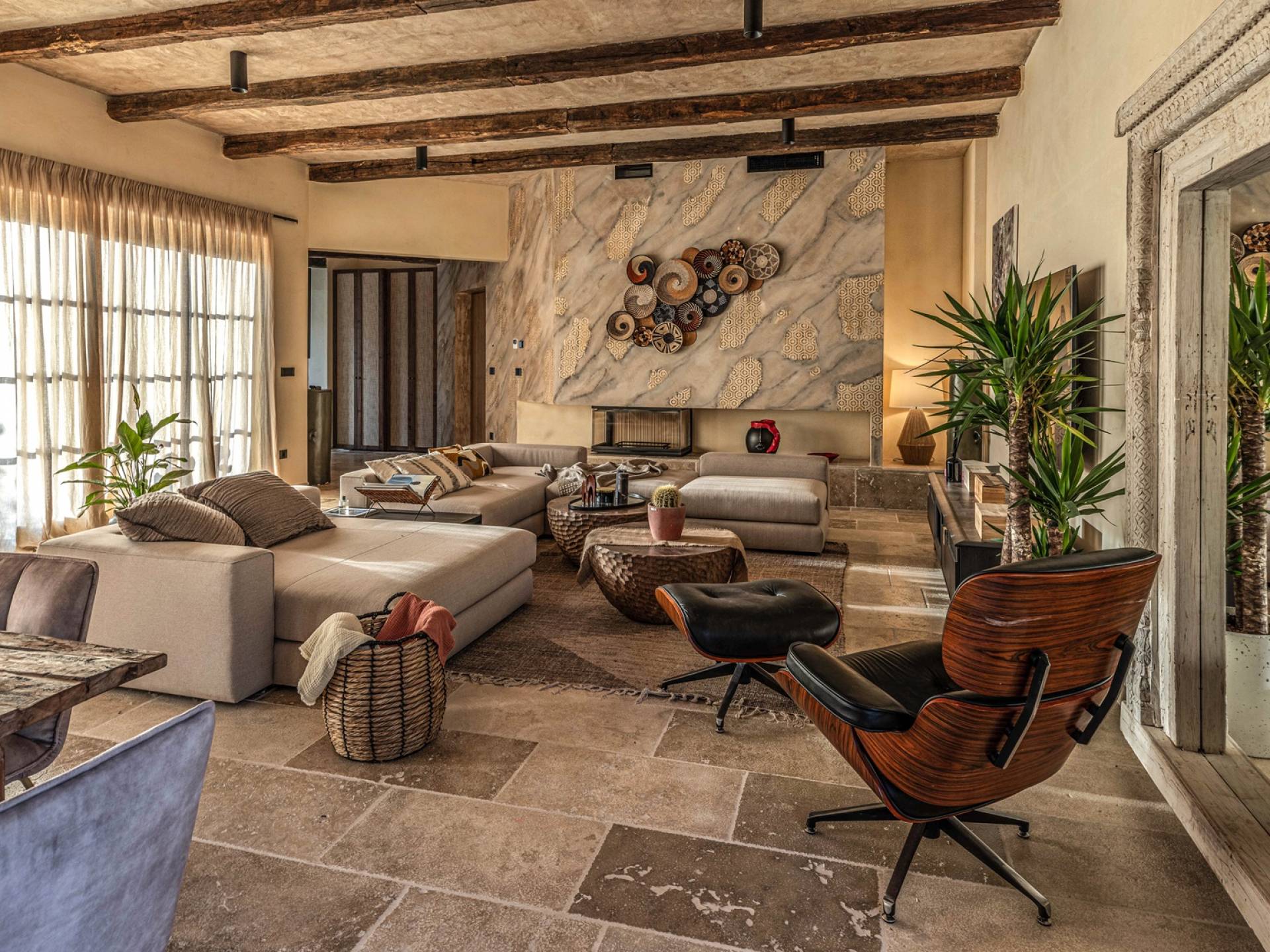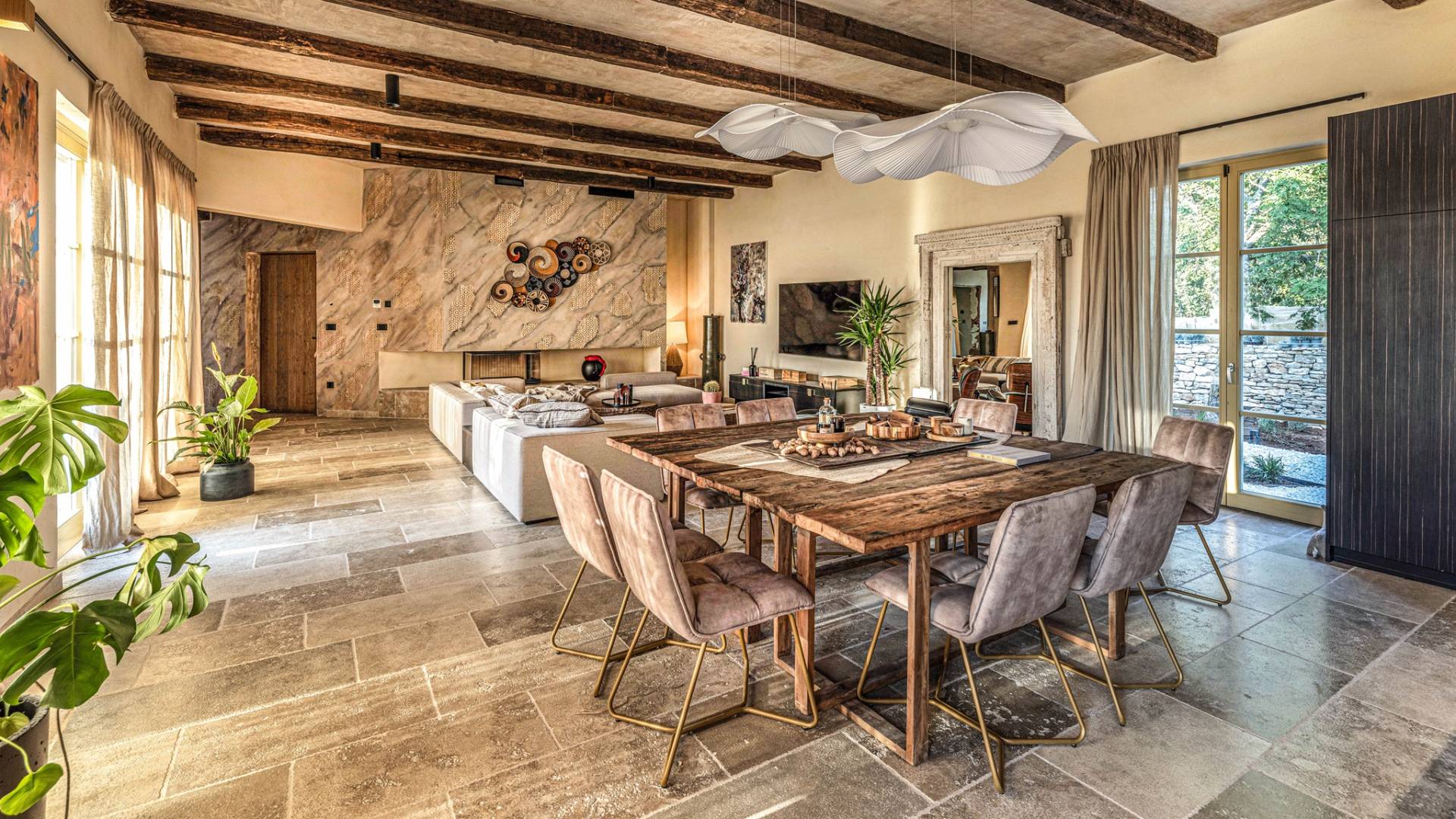 Dentro de Villa Calviá, quedará cautivado por su lujosa combinación de estilos. El interior de la villa combina a la perfección el encanto medieval con la sofisticación moderna. Los muebles y piezas de decoración rústicos provenzales, elaborados por artistas franceses menos conocidos, añaden un aire de exclusividad. Las influencias marroquíes e indias aportan un sutil exotismo, mientras que los muebles elegantes y modernos crean un contraste refrescante, lo que da como resultado un espacio elegante y ecléctico.