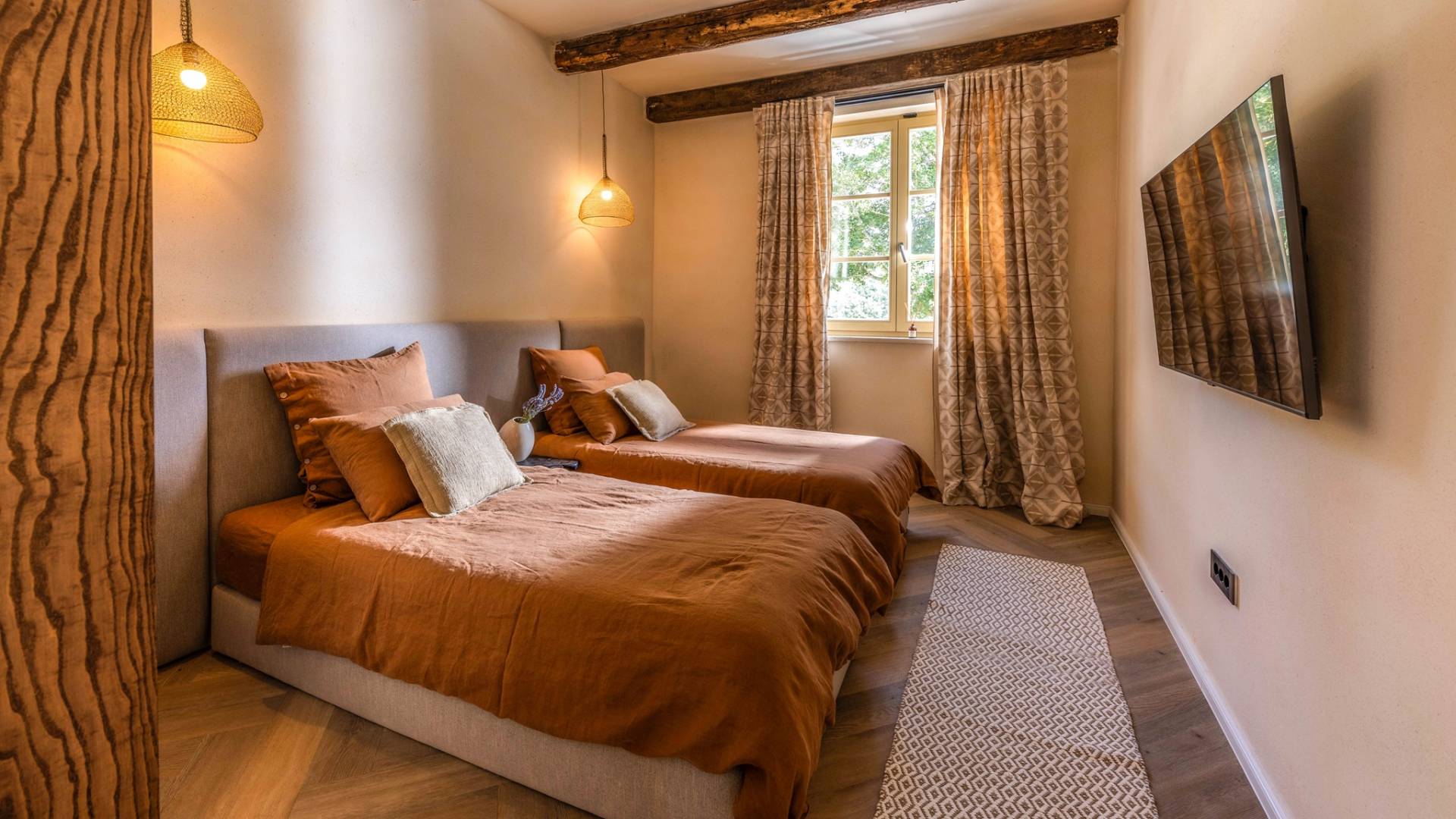 Con tres amplias habitaciones, una suite principal y una habitación para niños llena de juguetes sostenibles, Villa Calvia Retreat tiene capacidad para ocho huéspedes. Cada dormitorio tiene baño privado y acceso al jardín privado, lo que garantiza privacidad y relajación para todos. Las cuidadas comodidades de la villa incluyen calefacción por suelo radiante, aire acondicionado en todas las habitaciones y una estación de carga TESLA, lo que la hace lujosa y práctica.