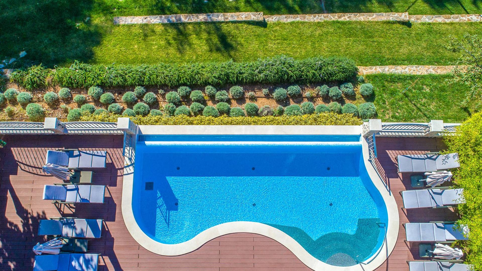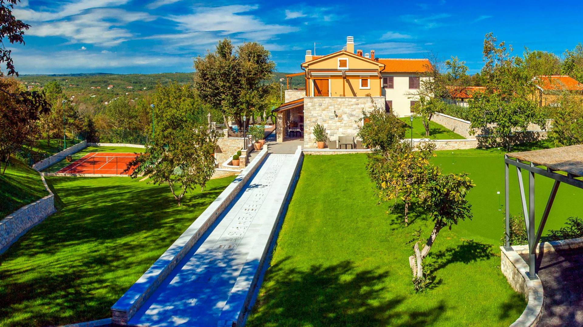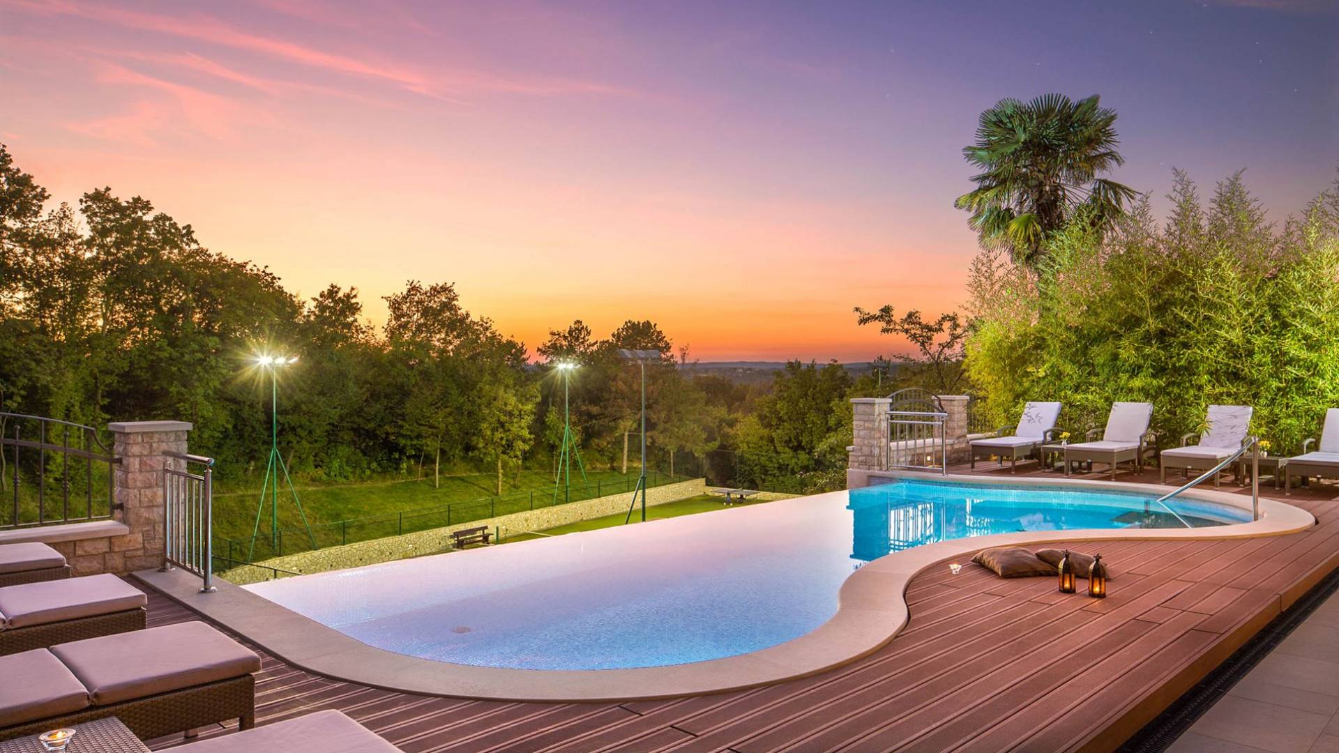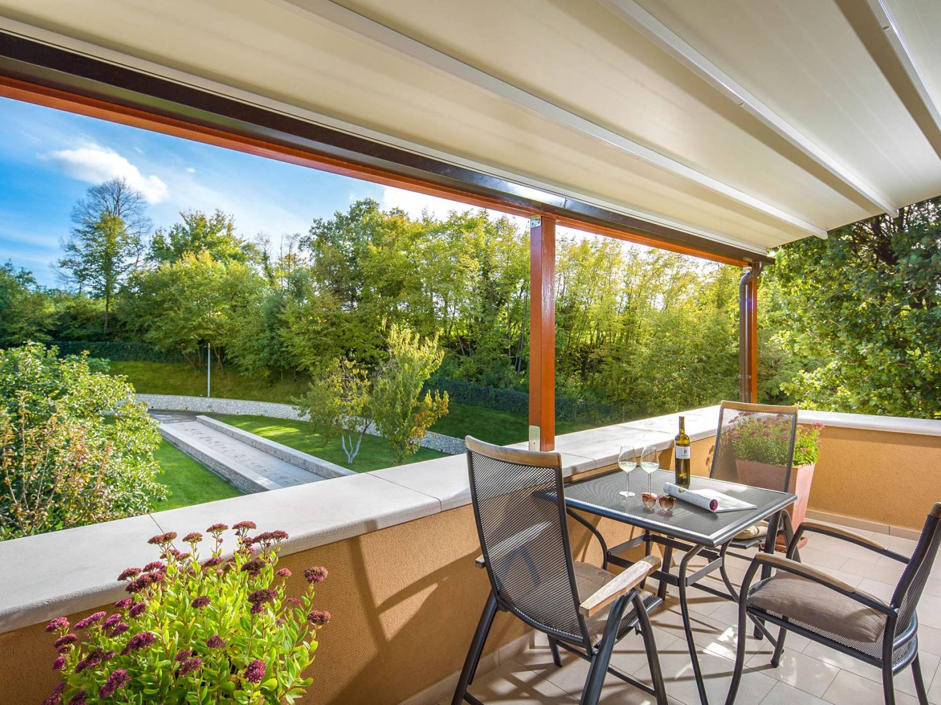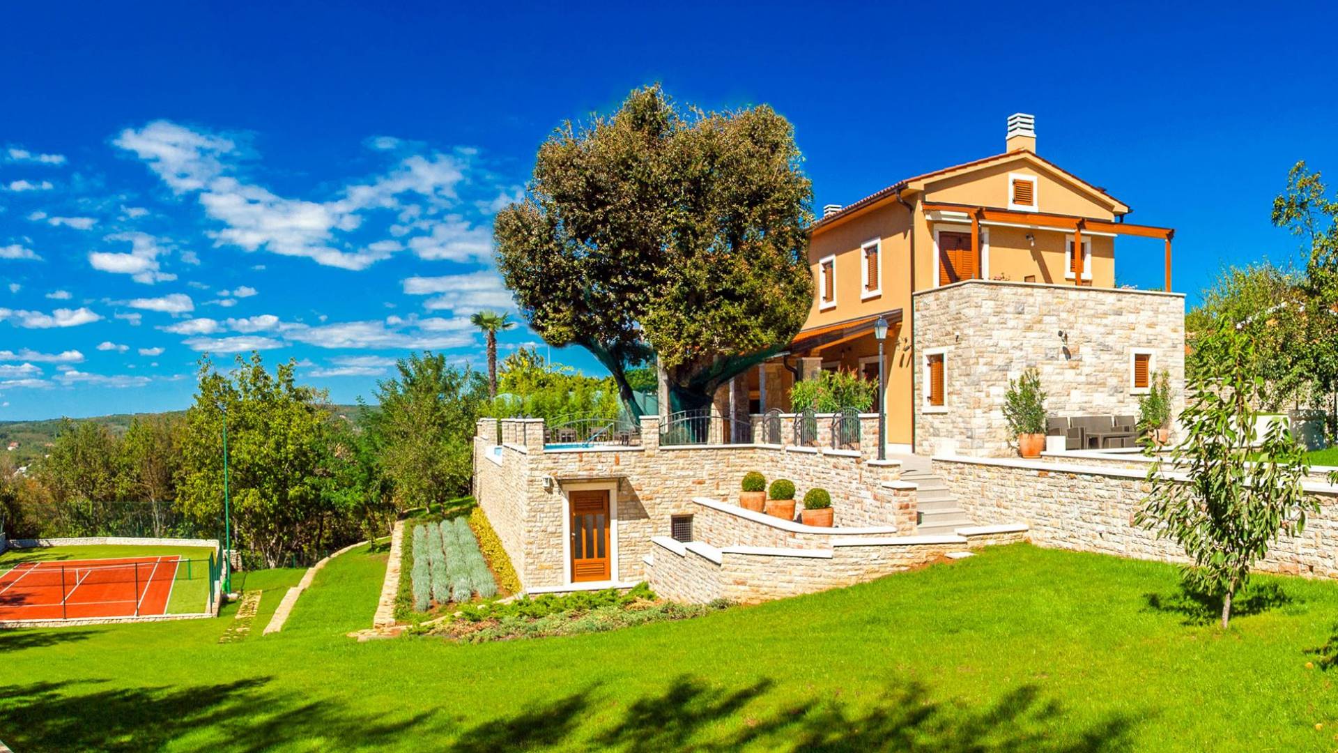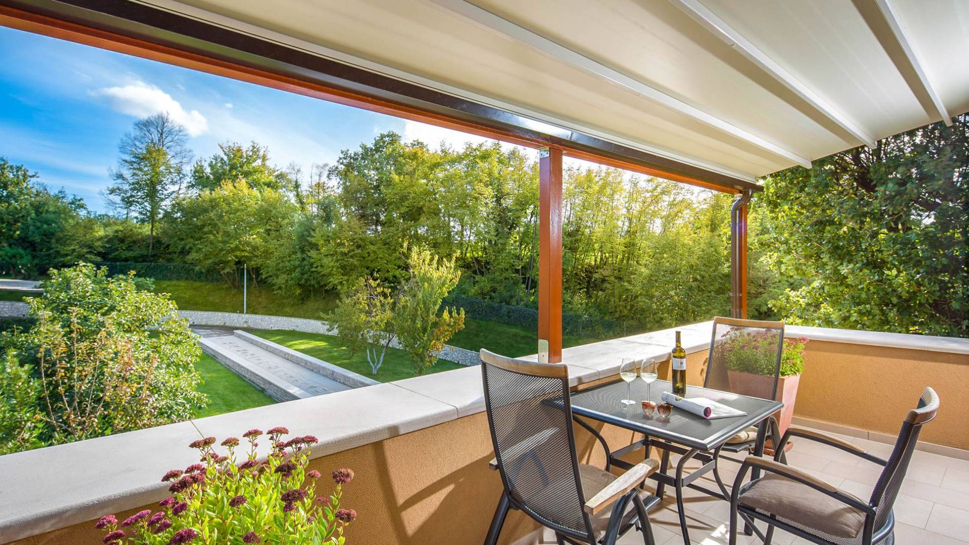 A su lado está la habitación Dorsi, la habitación más atrevida de la casa, con un romanticismo acentuado apoyado en una terraza con una hermosa vista a los jardines de la finca y al amanecer. Sveti Duh, una habitación que lleva el nombre de "Santo Spirito", el nombre original de la microubicación de la finca. Está abierto hacia su parte sur, con una terraza con vistas a la piscina y solarium, y una pista de tenis junto al bosque que rodea la finca.