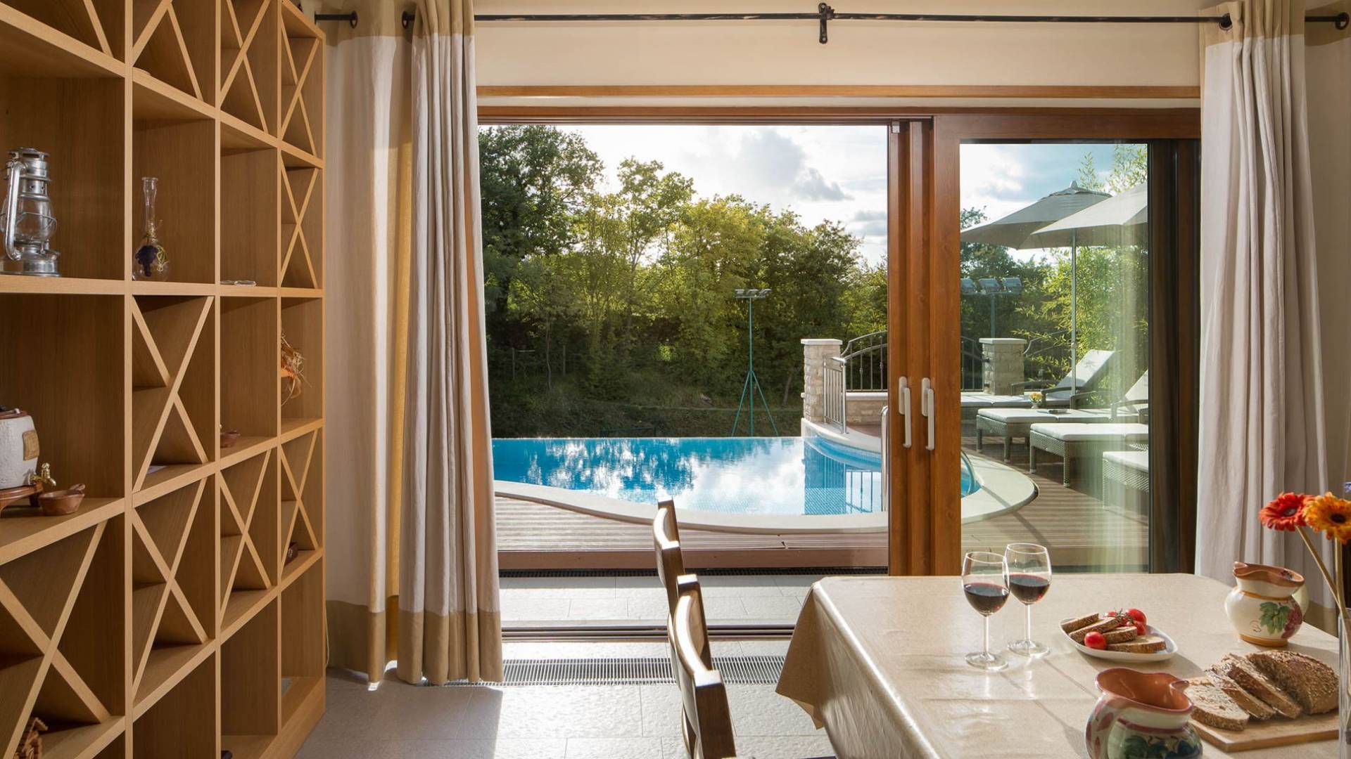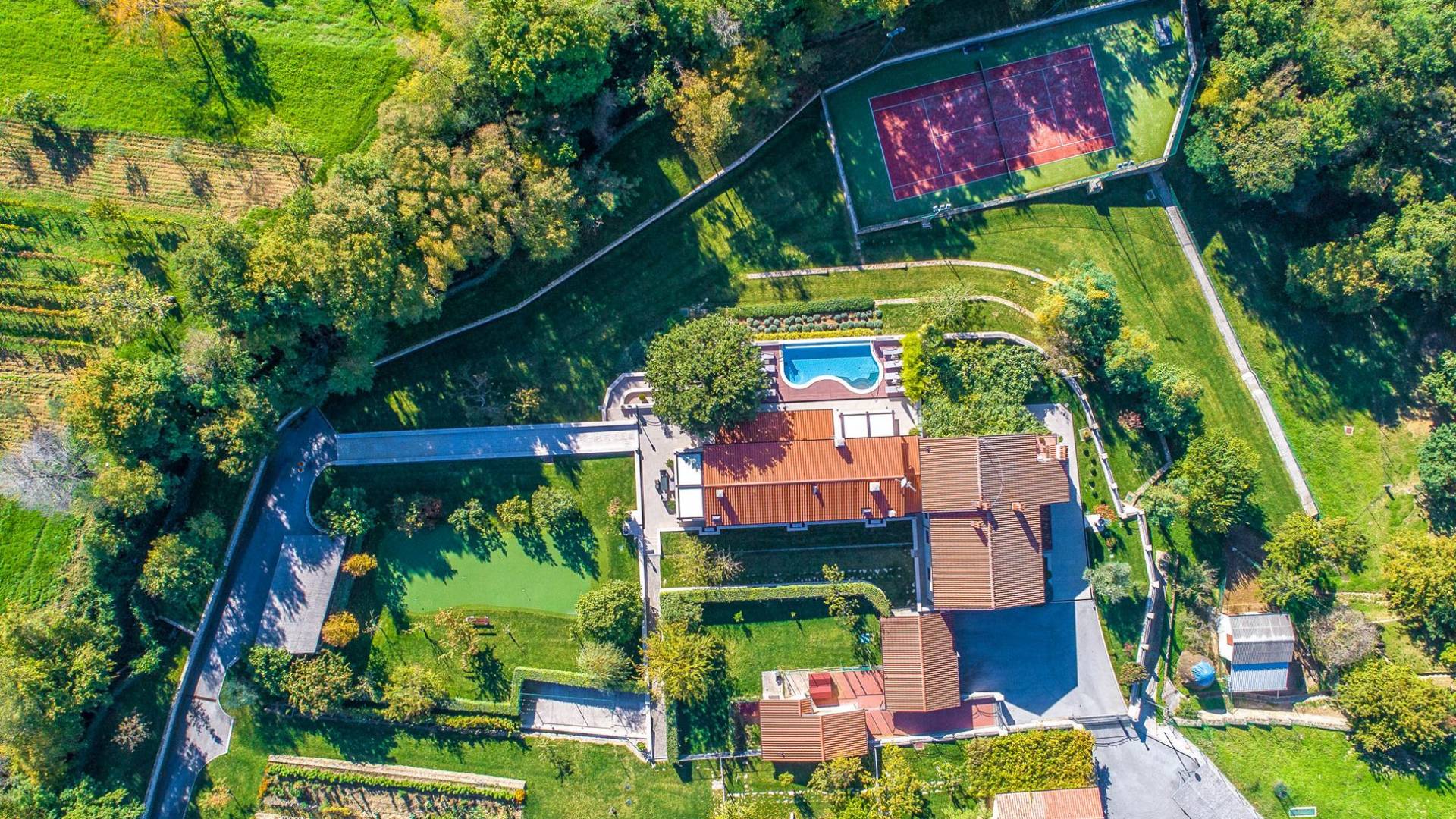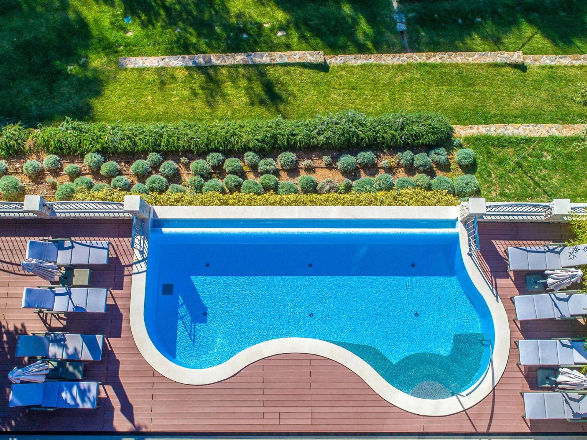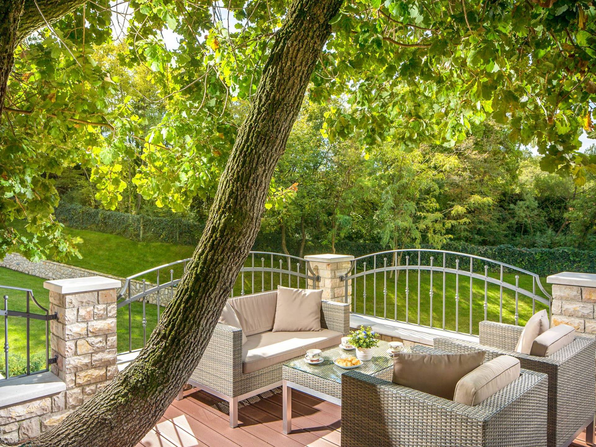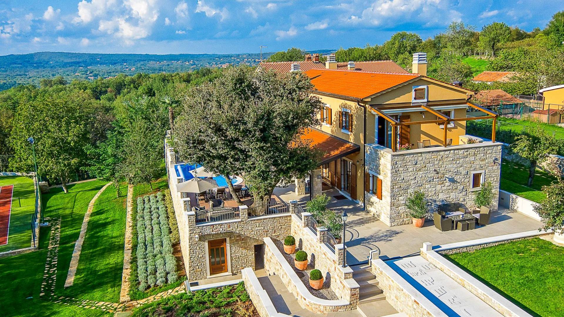 A su lado está la habitación Dorsi, la habitación más atrevida de la casa, con un romanticismo acentuado apoyado en una terraza con una hermosa vista a los jardines de la finca y al amanecer. Sveti Duh, una habitación que lleva el nombre de "Santo Spirito", el nombre original de la microubicación de la finca. Está abierto hacia su parte sur, con una terraza con vistas a la piscina y solarium, y una pista de tenis junto al bosque que rodea la finca.
