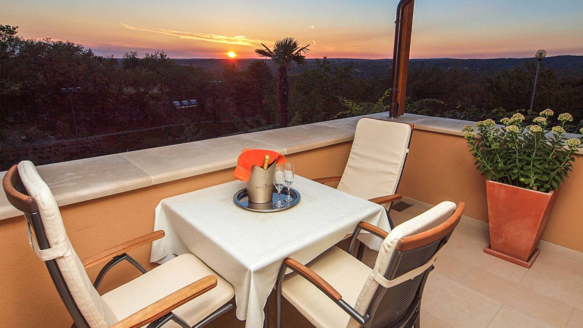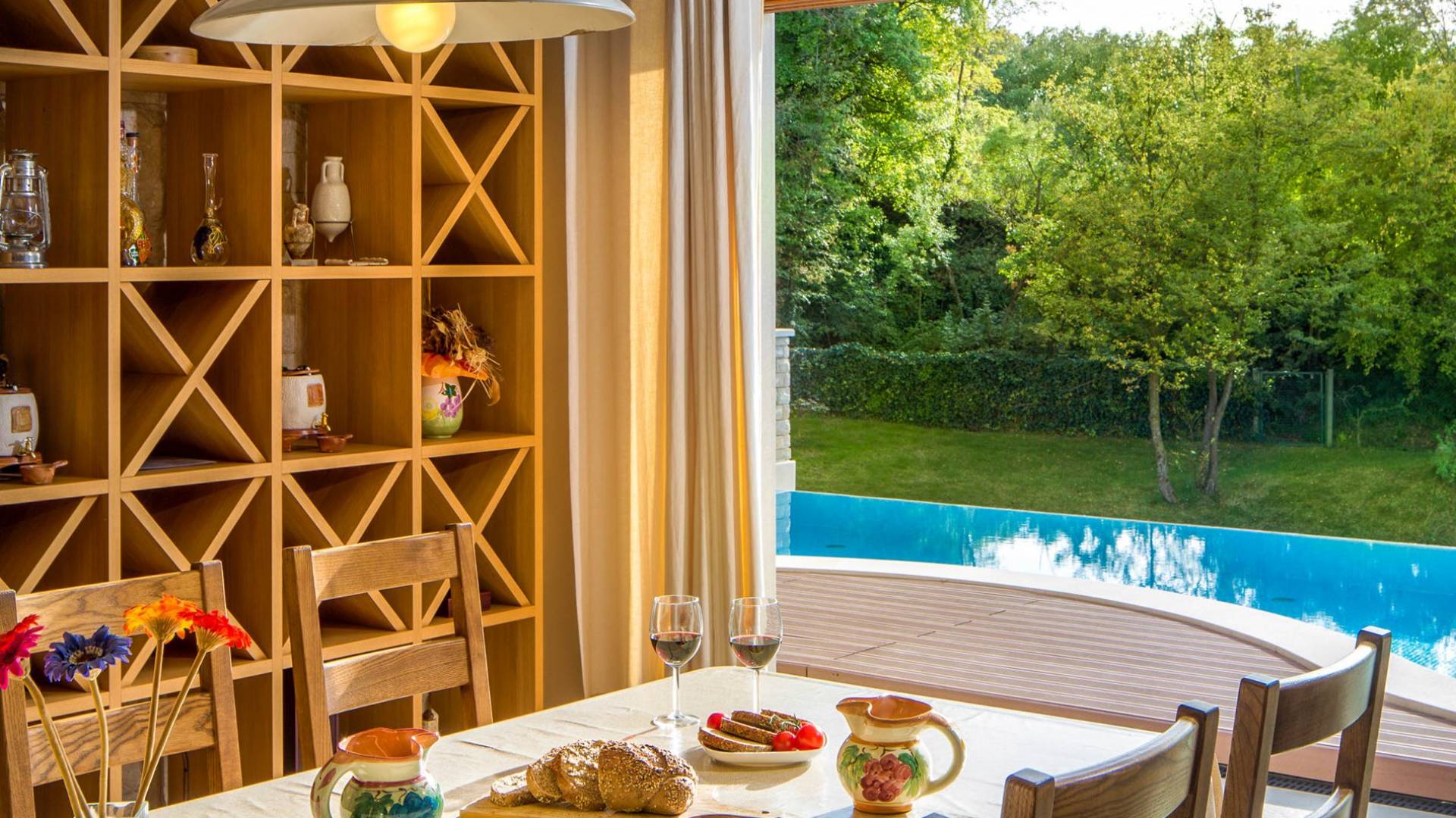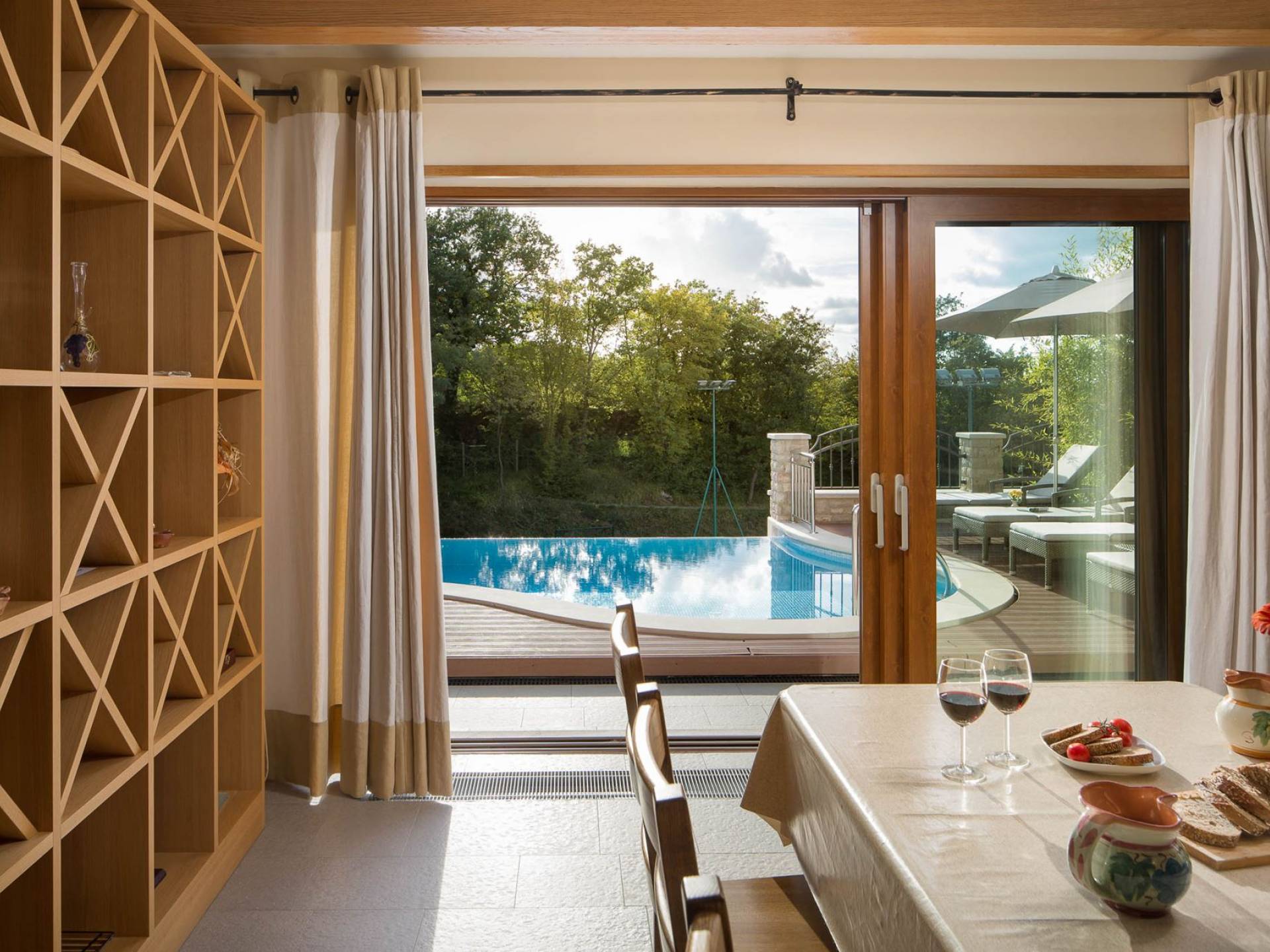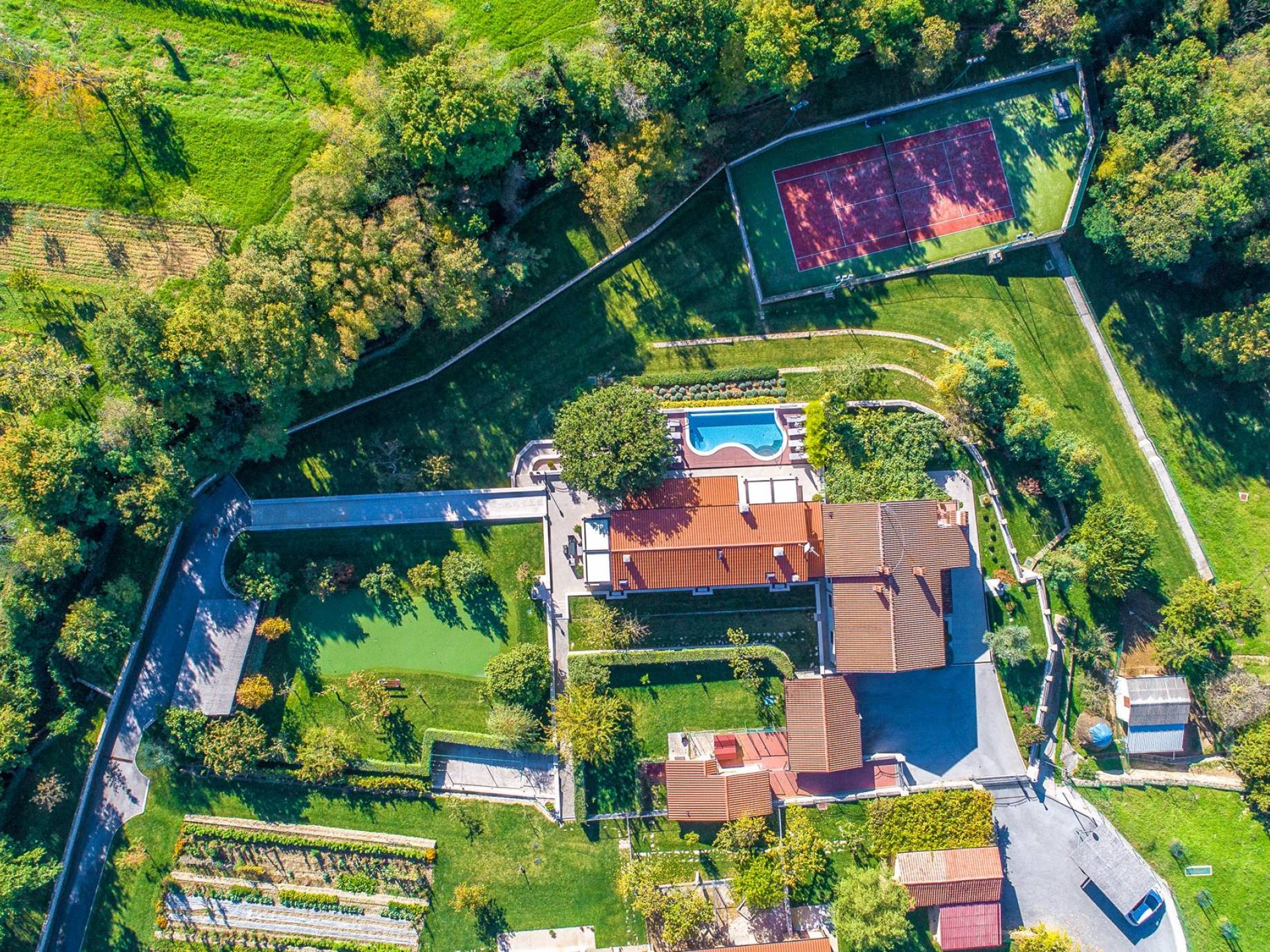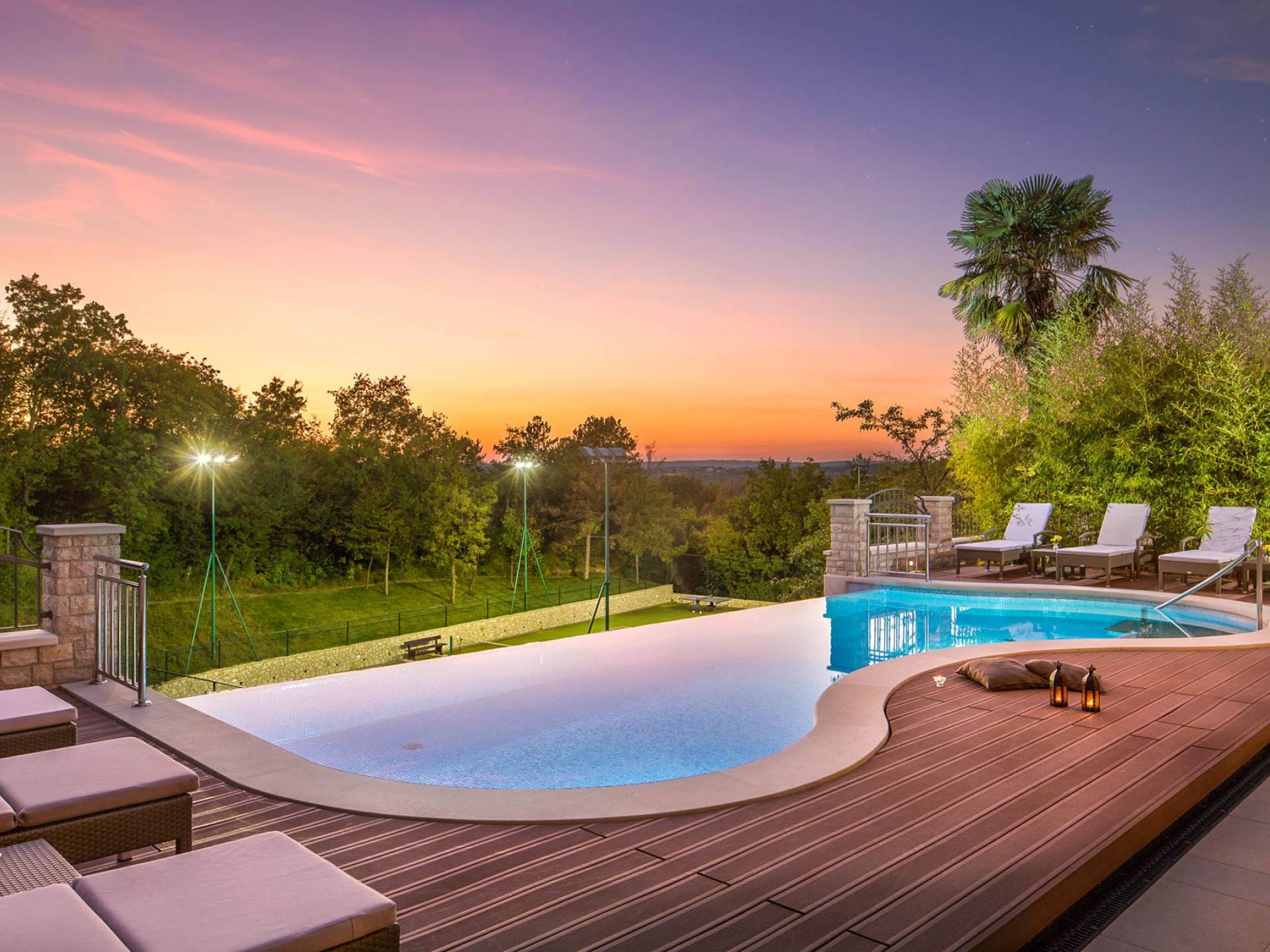 A su lado está la habitación Dorsi, la habitación más atrevida de la casa, con un romanticismo acentuado apoyado en una terraza con una hermosa vista a los jardines de la finca y al amanecer. Sveti Duh, una habitación que lleva el nombre de "Santo Spirito", el nombre original de la microubicación de la finca. Está abierto hacia su parte sur, con una terraza con vistas a la piscina y solarium, y una pista de tenis junto al bosque que rodea la finca.