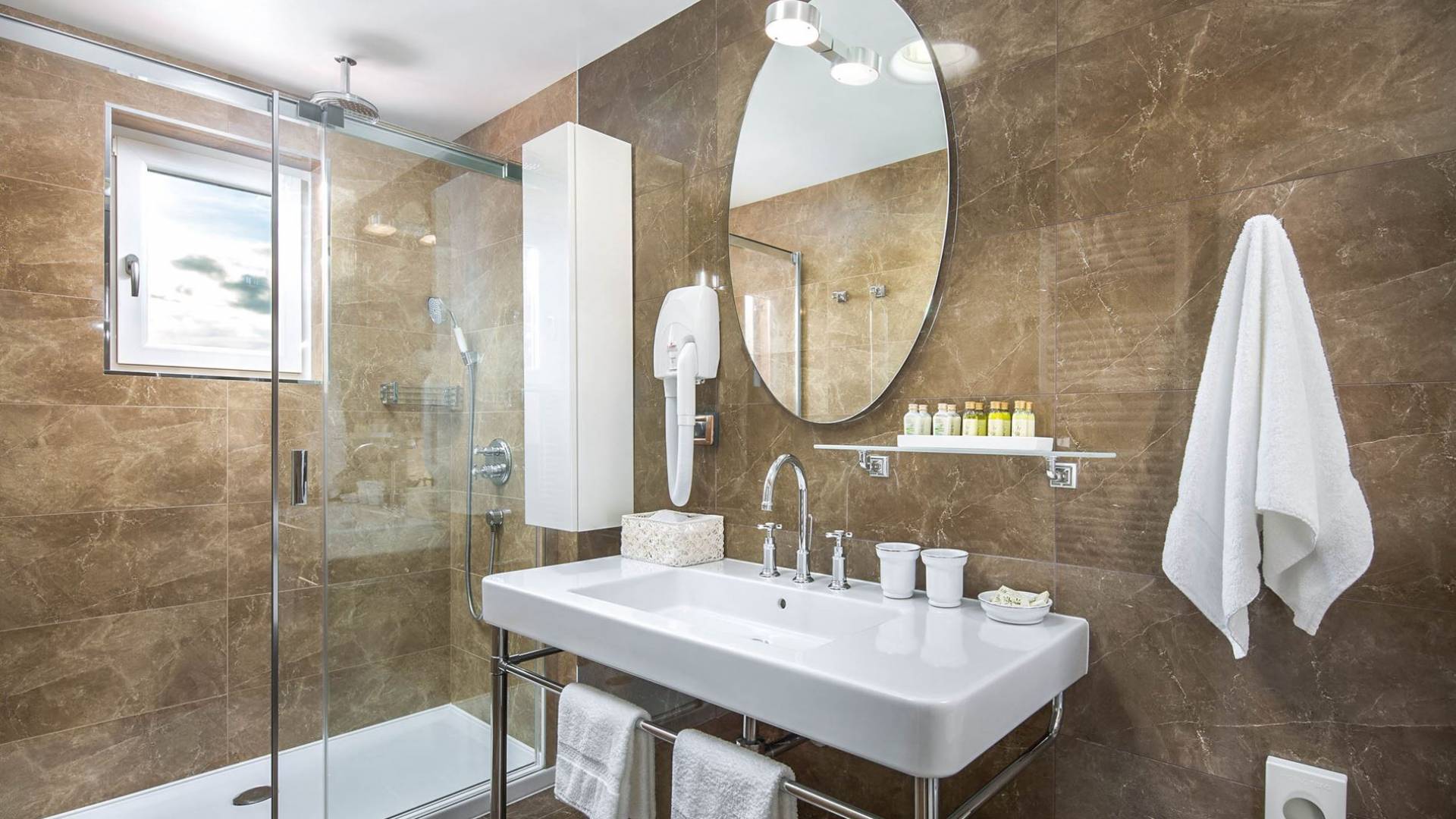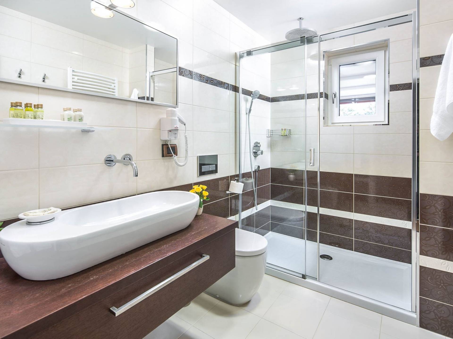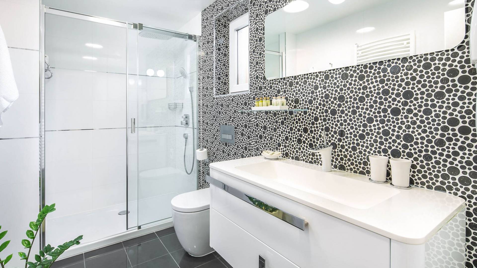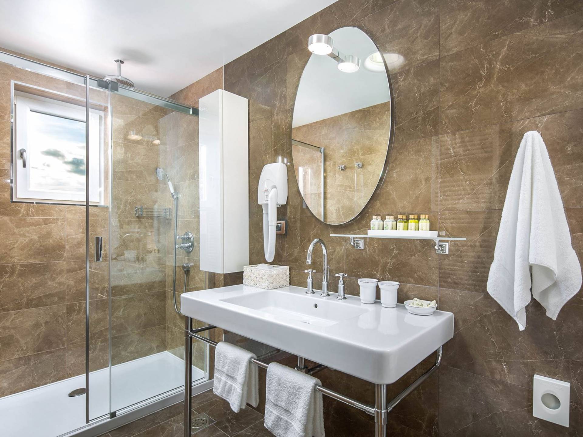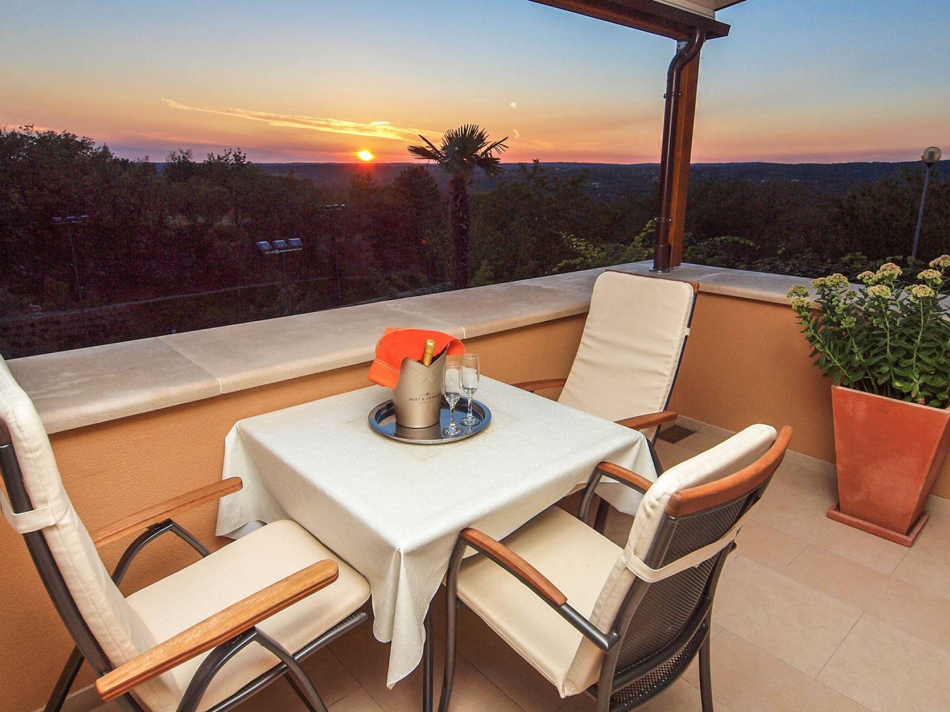 A su lado está la habitación Dorsi, la habitación más atrevida de la casa, con un romanticismo acentuado apoyado en una terraza con una hermosa vista a los jardines de la finca y al amanecer. Sveti Duh, una habitación que lleva el nombre de "Santo Spirito", el nombre original de la microubicación de la finca. Está abierto hacia su parte sur, con una terraza con vistas a la piscina y solarium, y una pista de tenis junto al bosque que rodea la finca.