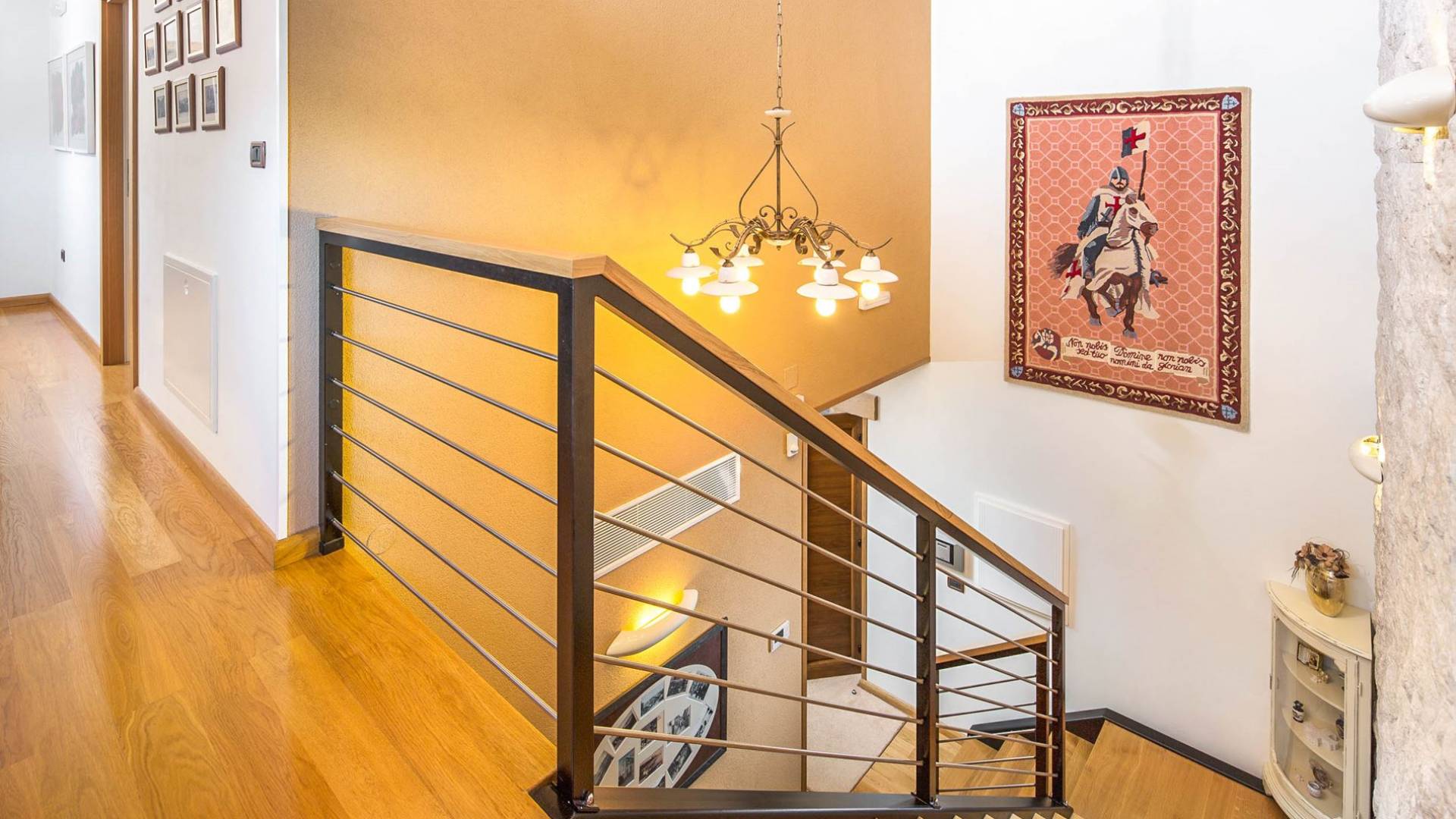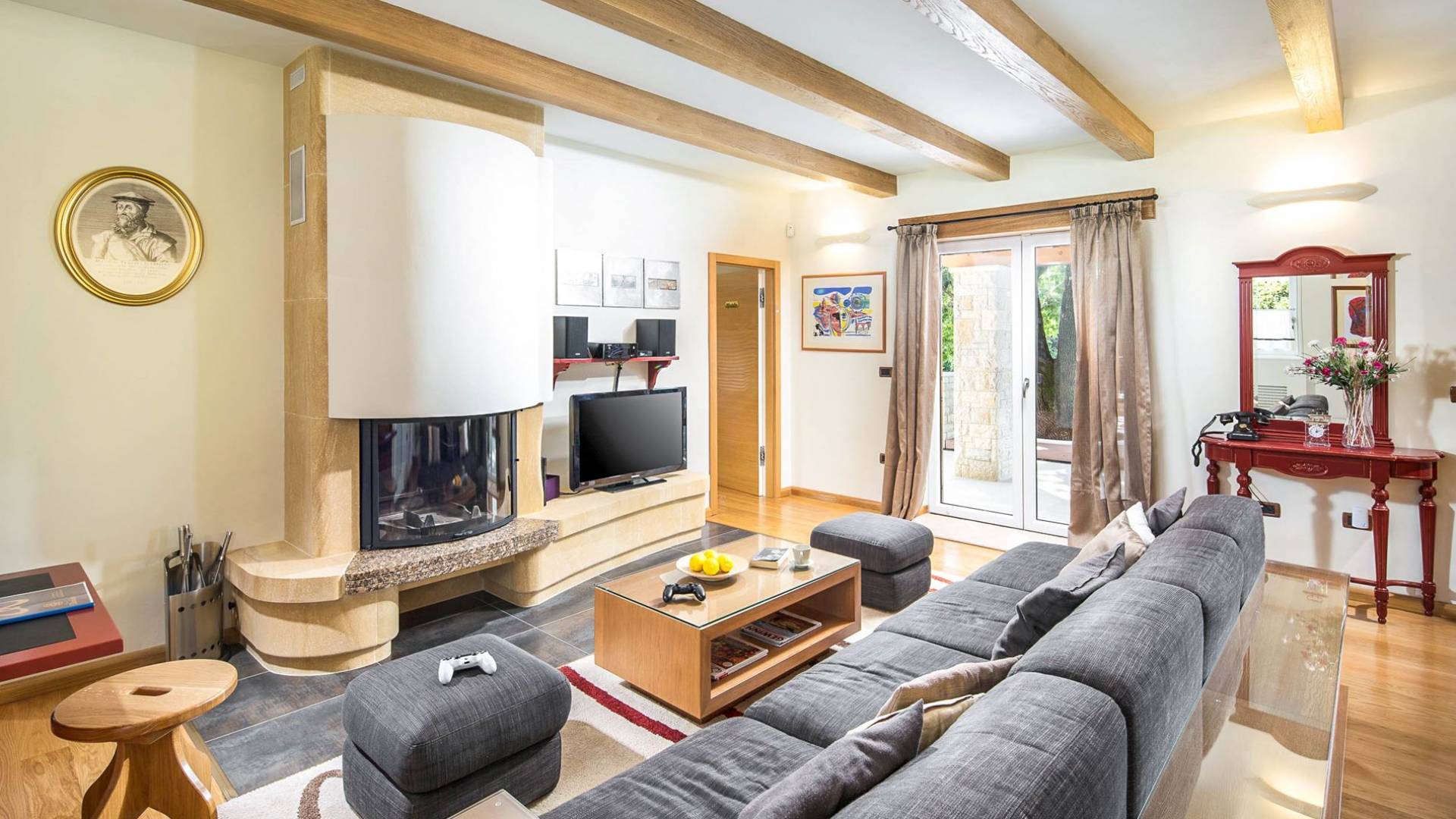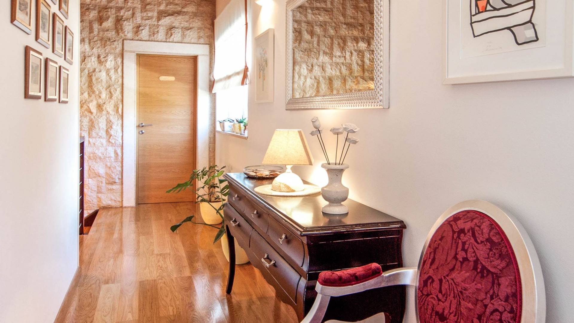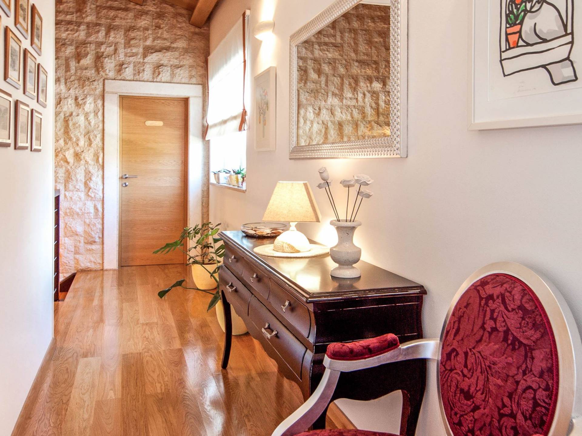 La impresionante sala de estar está destinada tanto al disfrute como a la relajación, mientras que cada dormitorio tiene su propia pequeña leyenda, independientemente de si hablamos de Flacius, el famoso reformador del siglo XVI y el antepasado de esta orgullosa familia, de el Espíritu Santo que dio nombre a esta región, sobre Vlastelini como el linaje familiar o Dorsi, un rincón romántico con vista al sol naciente.