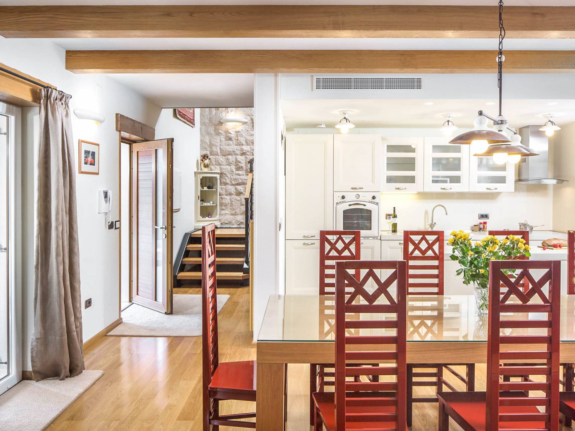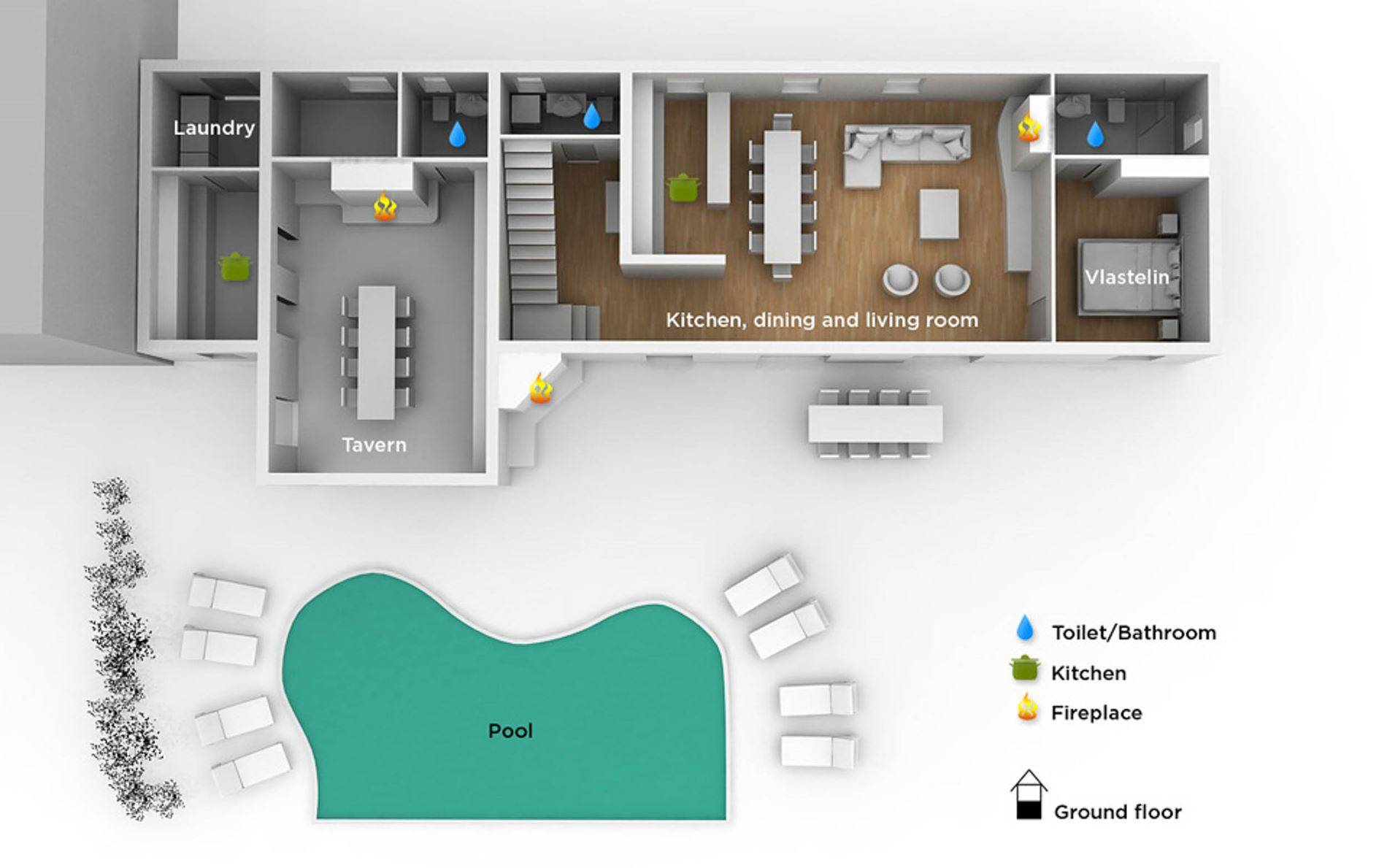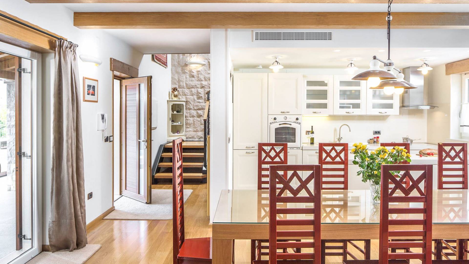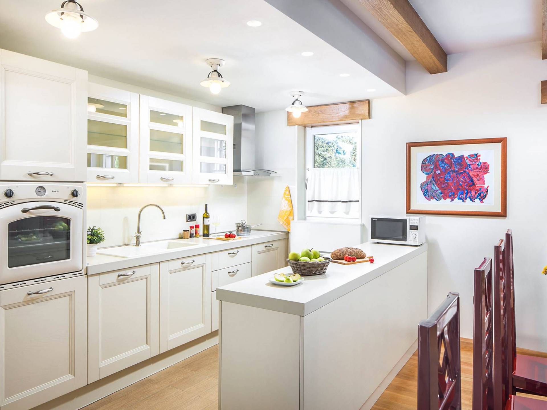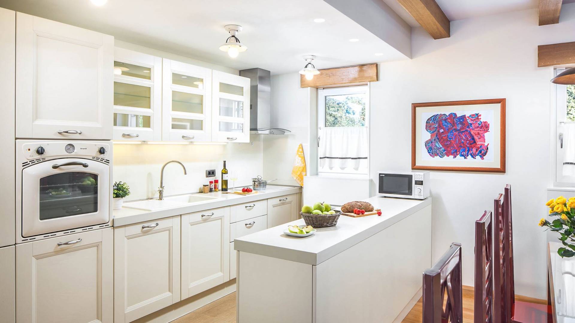 La impresionante sala de estar está destinada tanto al disfrute como a la relajación, mientras que cada dormitorio tiene su propia pequeña leyenda, independientemente de si hablamos de Flacius, el famoso reformador del siglo XVI y el antepasado de esta orgullosa familia, de el Espíritu Santo que dio nombre a esta región, sobre Vlastelini como el linaje familiar o Dorsi, un rincón romántico con vista al sol naciente.
