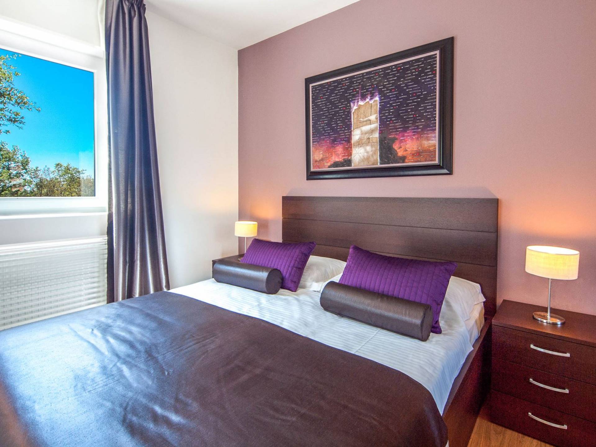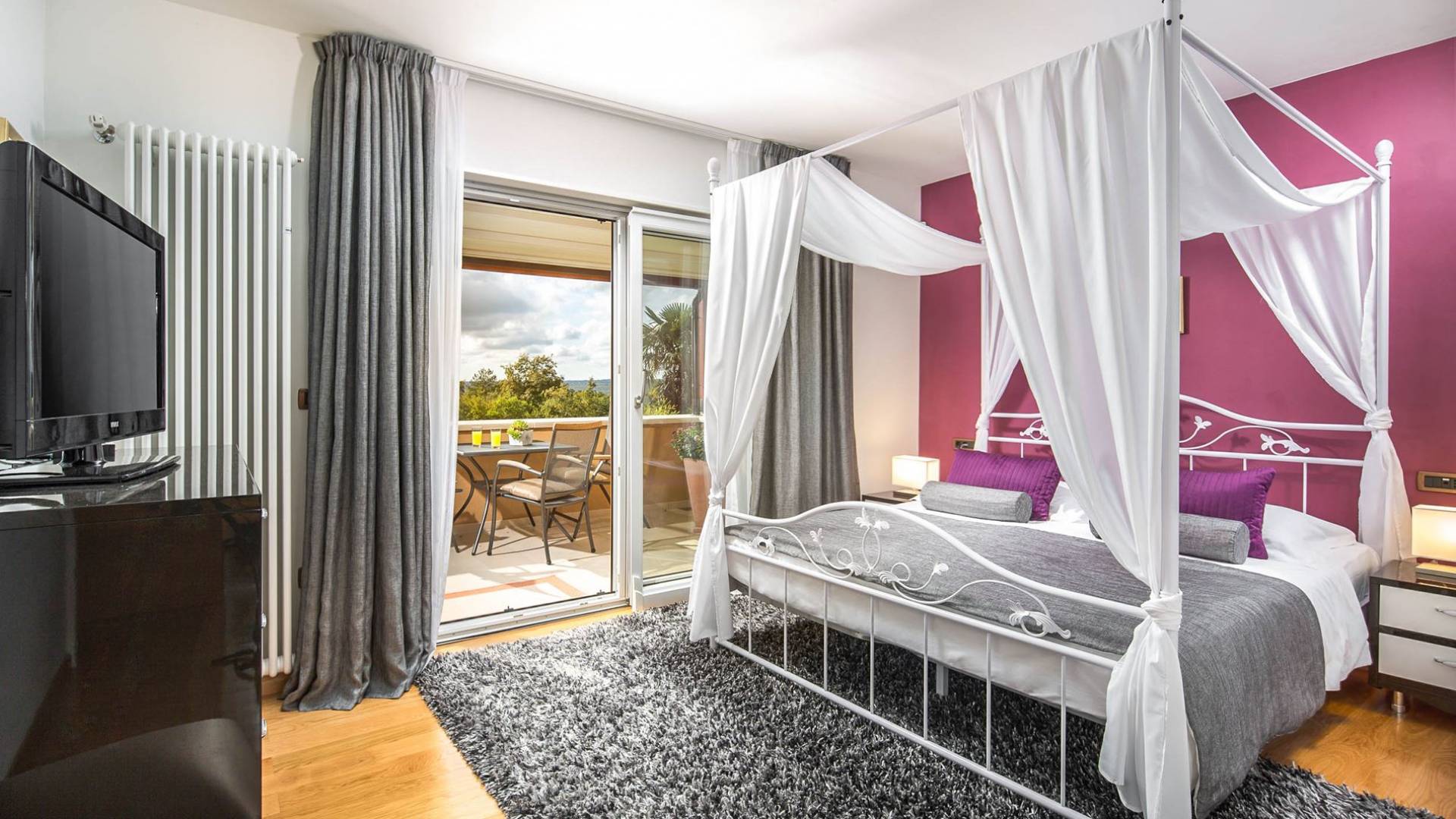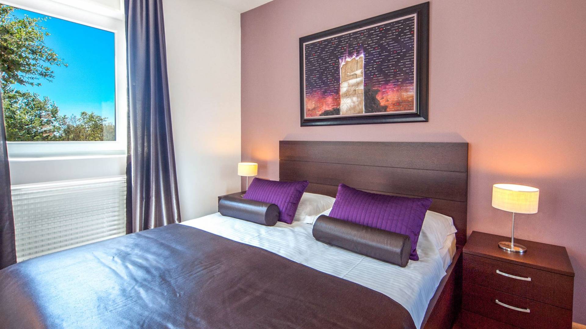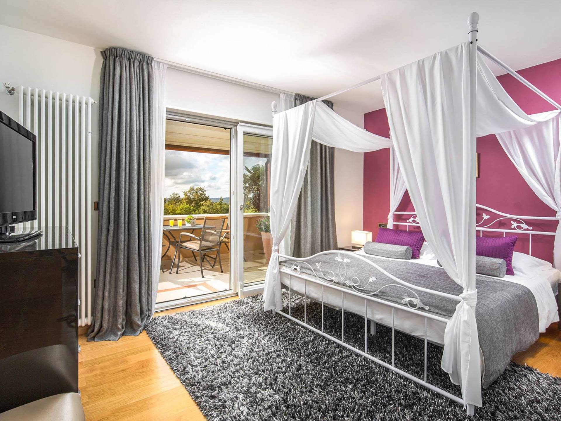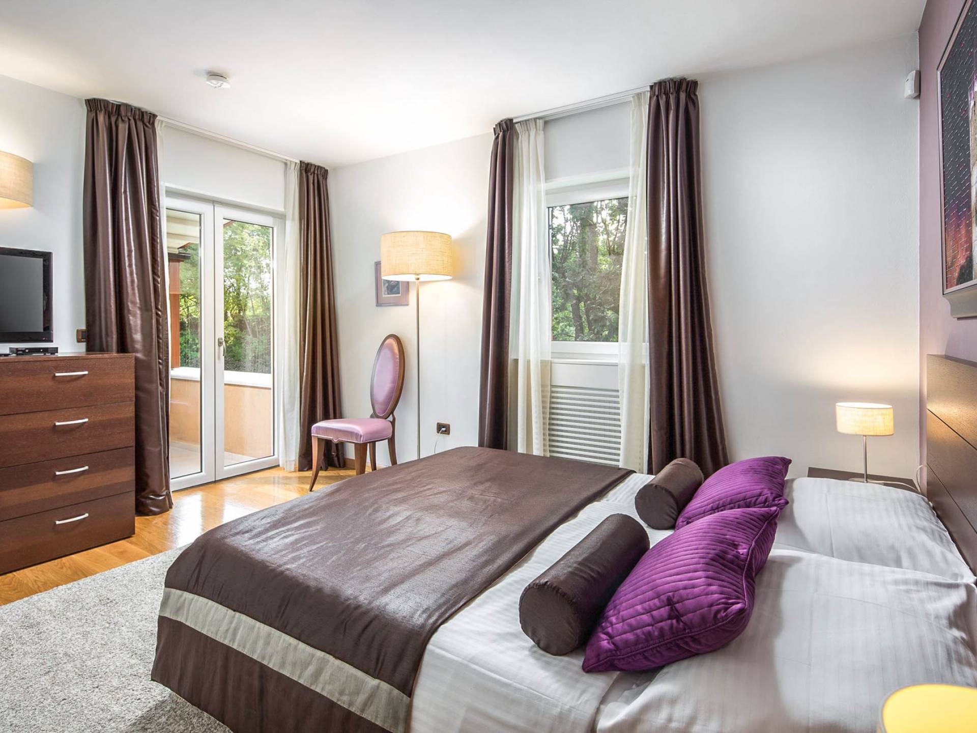 Vlastelini tiene un total de 4 dormitorios. Cada área de la Villa tiene su propia personalidad, incluidas las habitaciones, que tienen sus propios nombres. En la planta baja está la habitación Vlastelini, cuyo nombre se inspiró en el antiguo apodo de la familia Vlačić. Está dominado por una elegancia sutil, confeccionada con tonos cálidos y brillantes que enfatizan la sensación de comodidad. En el piso está la habitación Flacius, inspirada en la variante latina del apellido Vlačić, que dio a conocer el famoso antepasado Ilirik, trae colores divertidos. del amor y la atmósfera en la que se entrelazan los espíritus de Amor y Eros.