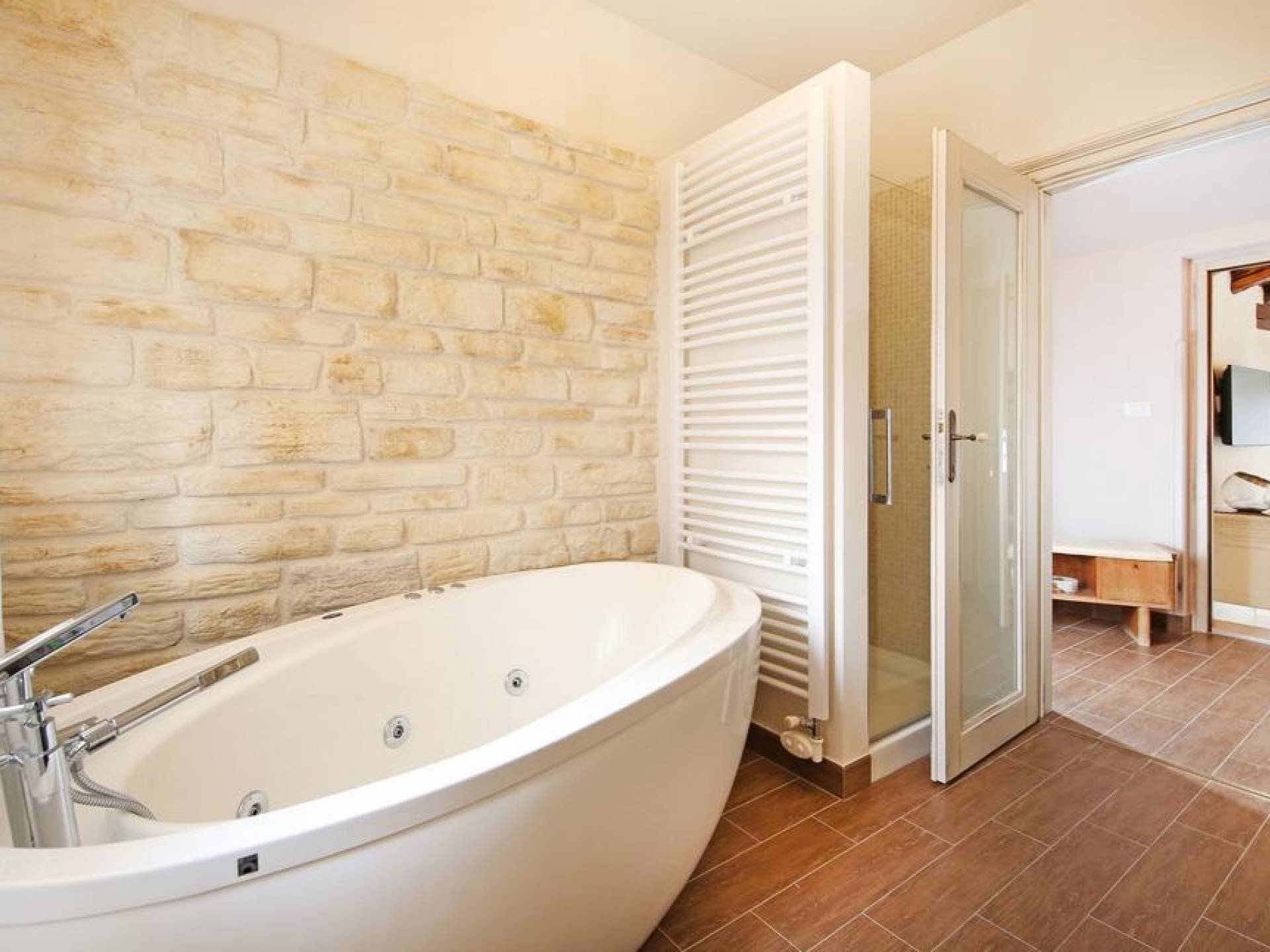 En la planta baja de la casa, hay una cocina totalmente equipada con un comedor y una mesa para 8 personas, una sala de estar con sofá y sofá junto a la chimenea tradicional de Istria, un jardín de invierno con muebles de madera y acceso al jardín, terraza y piscina. En la planta baja, también hay una lavadora, aseo - baño, habitación doble con baño y una bañera especial de masaje.