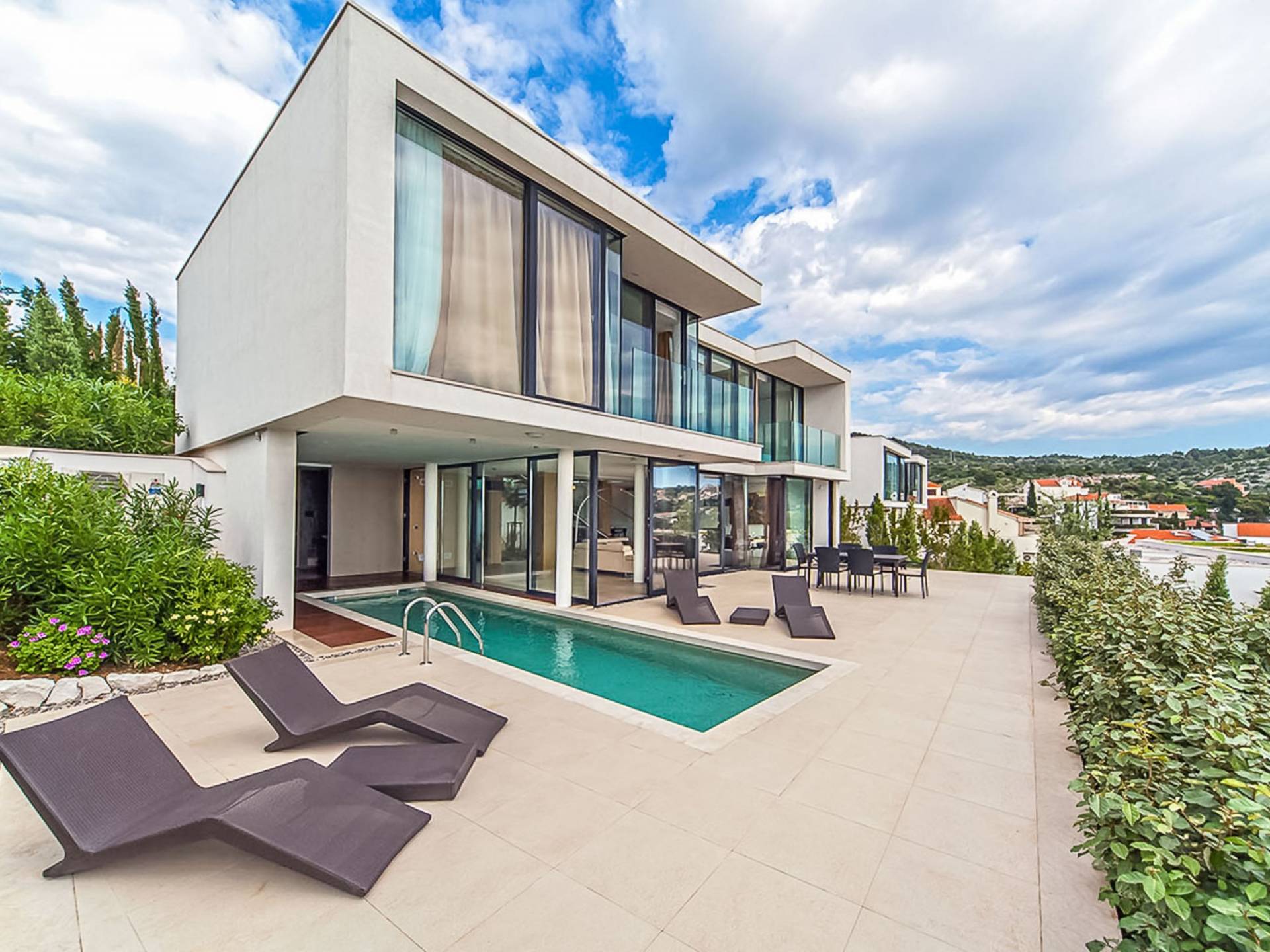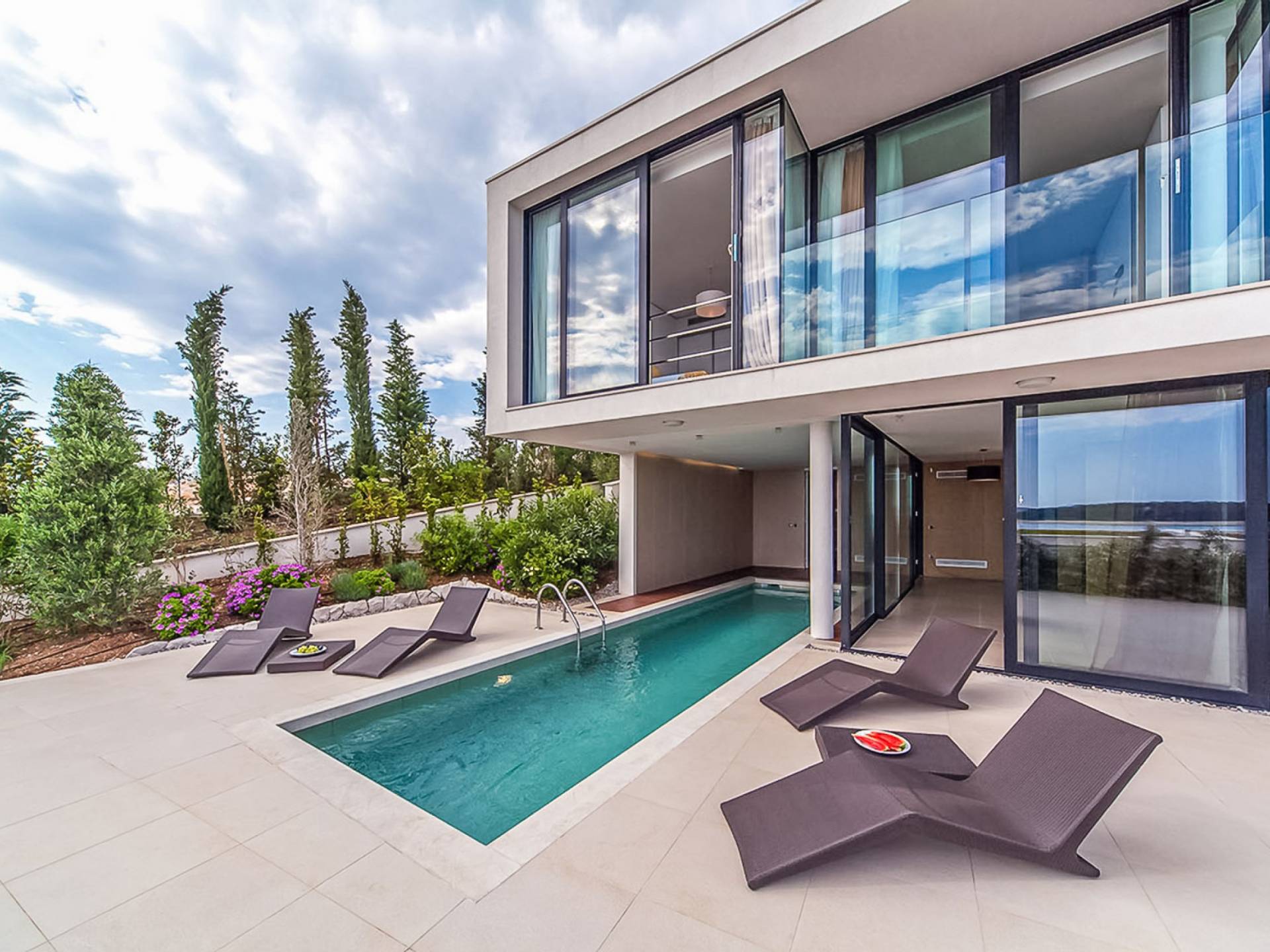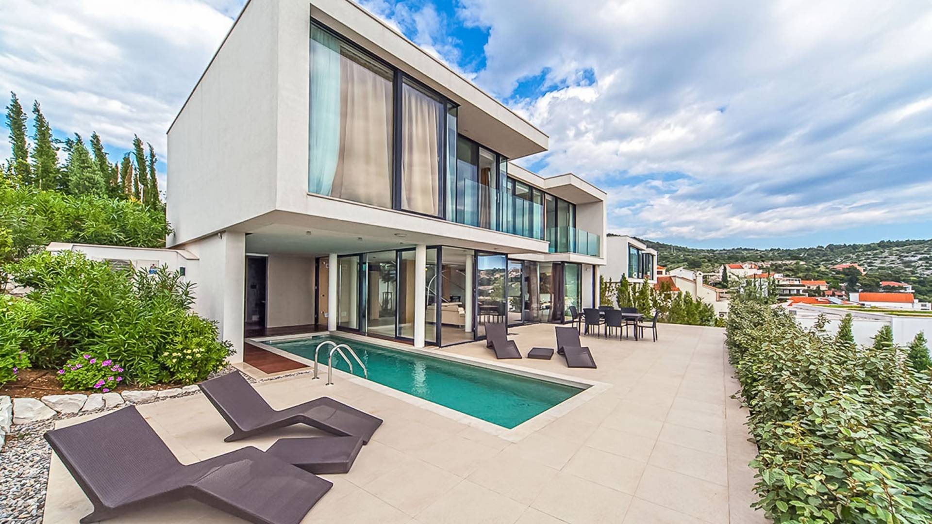 Villa Victoria Primosten es parte del complejo de villas de lujo "Capocesto Oro" ubicado en las inmediaciones de la ciudad. Cada una de las siete villas es independiente y cuenta con un garaje para dos automóviles. Salones y dormitorios, disfruta de vistas a la hermosa bahía con la península a la izquierda, el islote al frente, y una vista panorámica del mar a la derecha que no dejará indiferentes ni a los de los gustos más sofisticados.