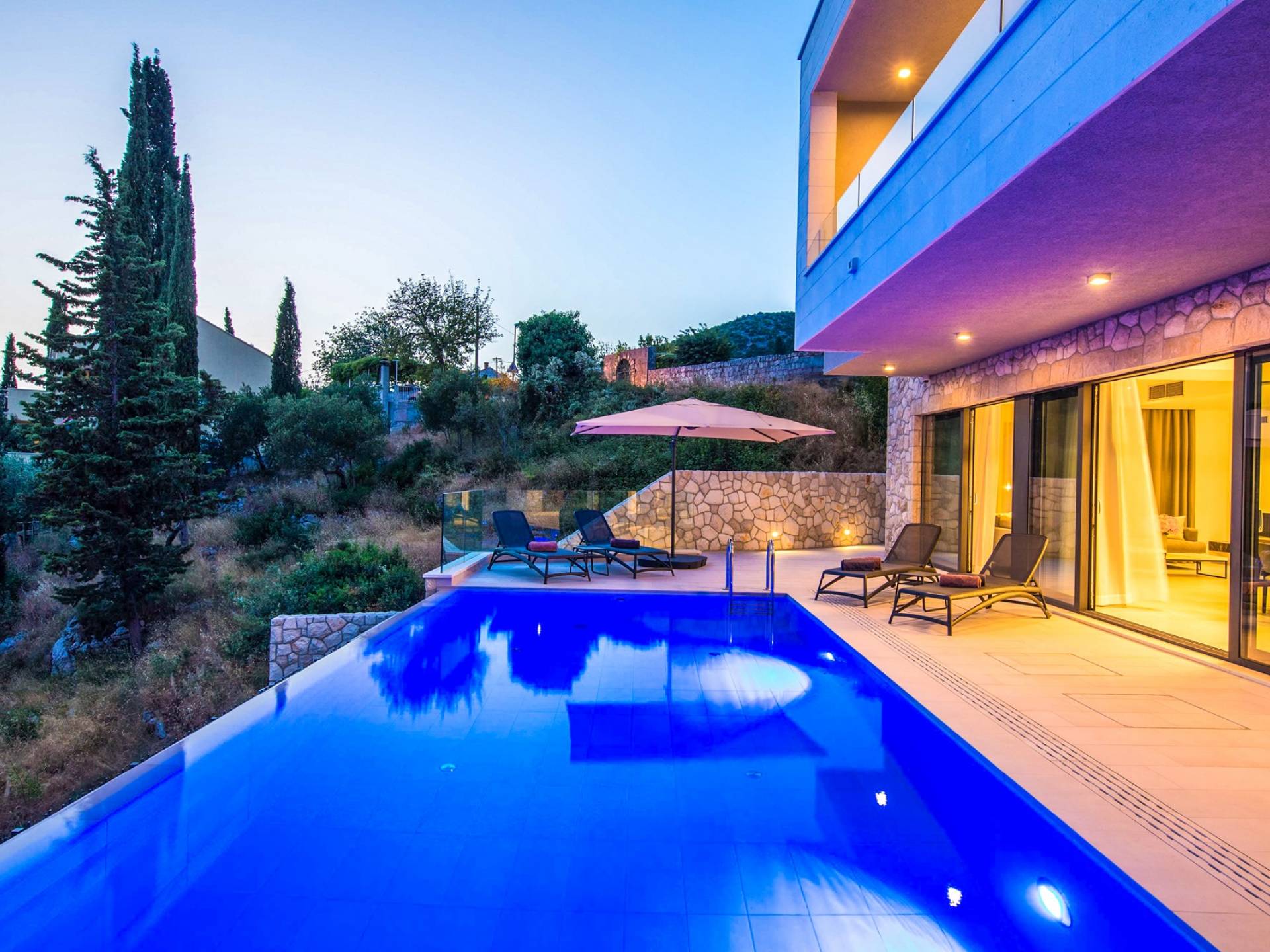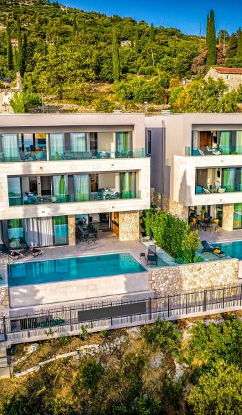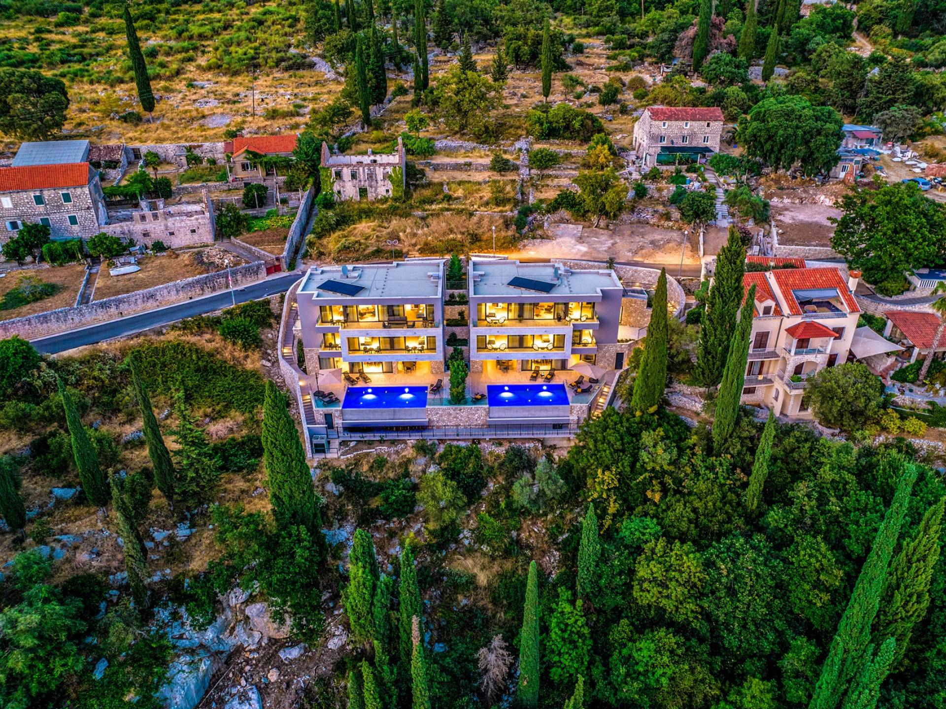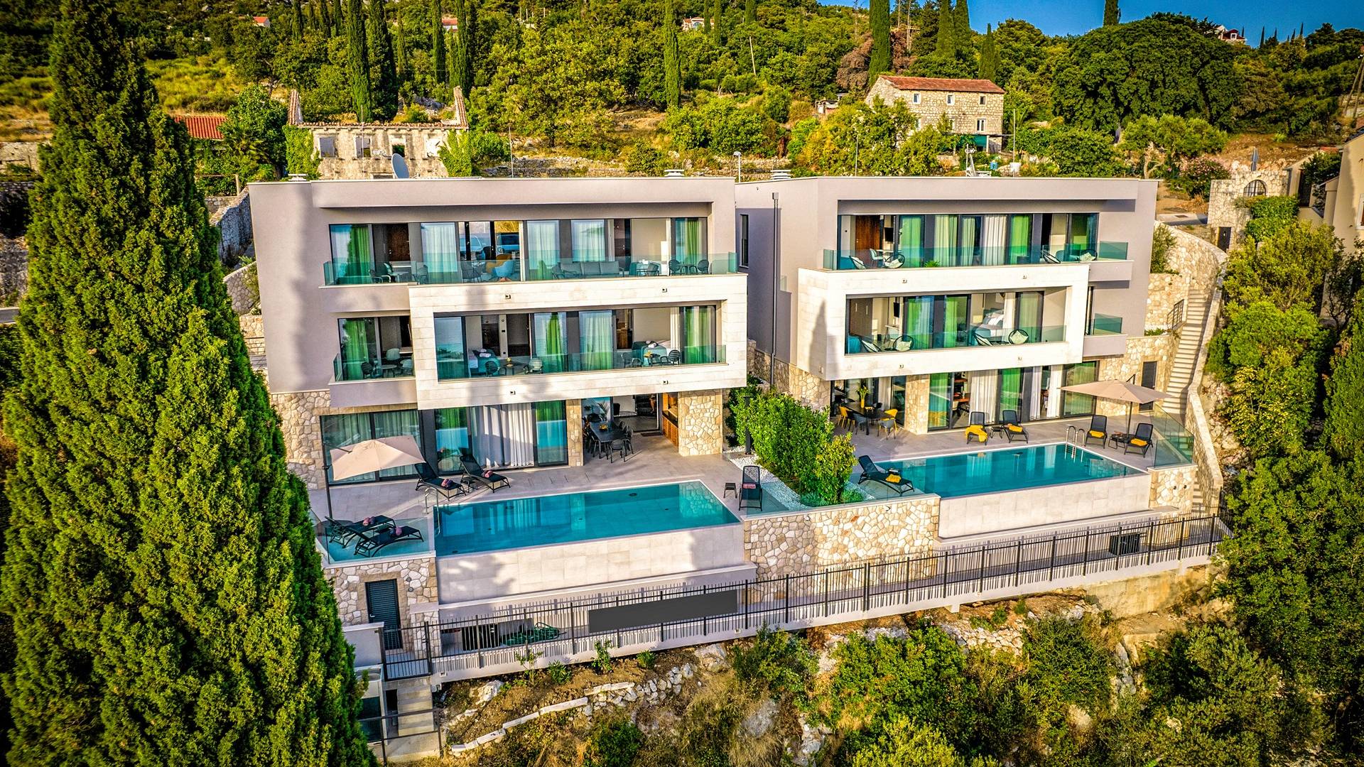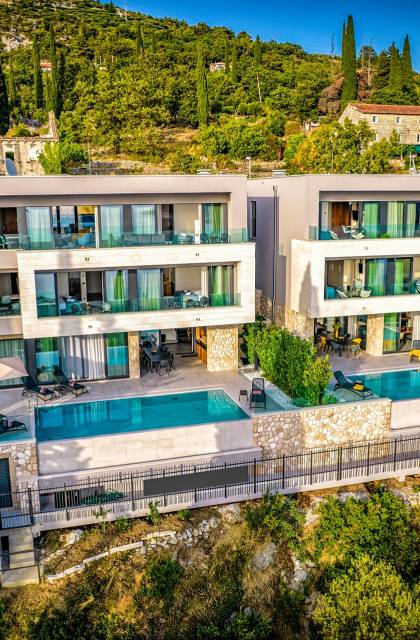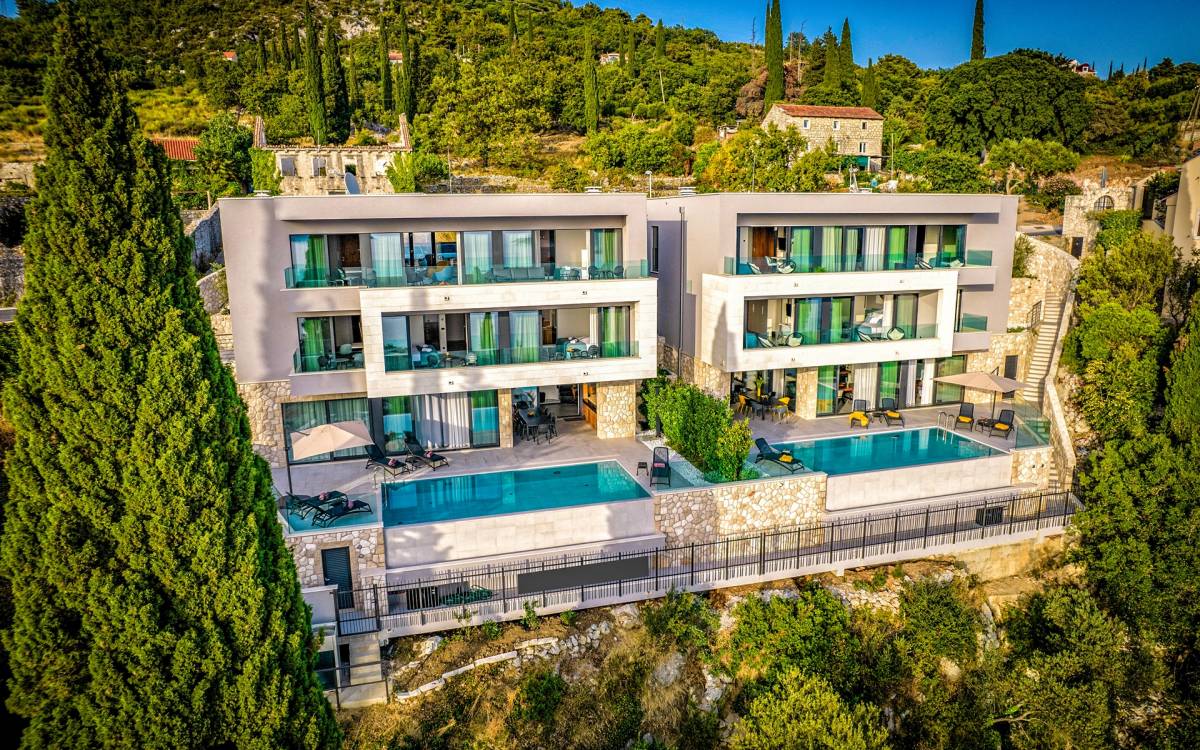 Estas villas de nueva construcción son un maravilloso ejemplo de arquitectura moderna e innovadora, espaciosas y aireadas, y los techos altos y las paredes de vidrio dan la sensación de libertad y abren la vista de las islas Dubrovnik. Los opuestos, es decir, las islas y el mar Adriático por un lado y las colinas circundantes por el otro, hacen que Orasac sea único. En medio de un hermoso paisaje natural, construido en una colina elevada, la villa ofrece una vista fantástica sobre el mar y la costa circundante. La villa con su mobiliario de alta calidad se ha integrado perfectamente en el paisaje de ladera mediterránea y se construyó en terrazas de varios niveles.