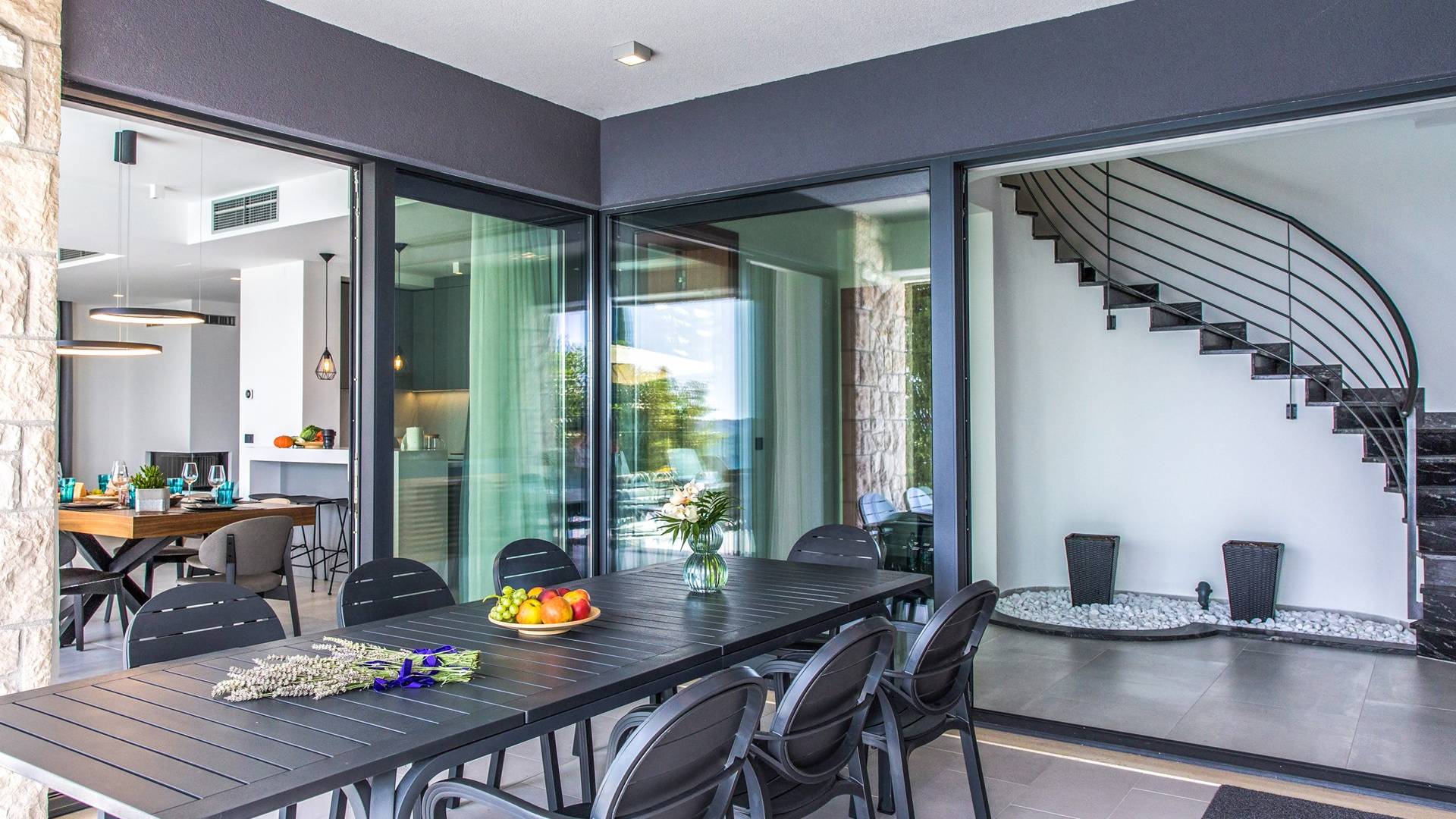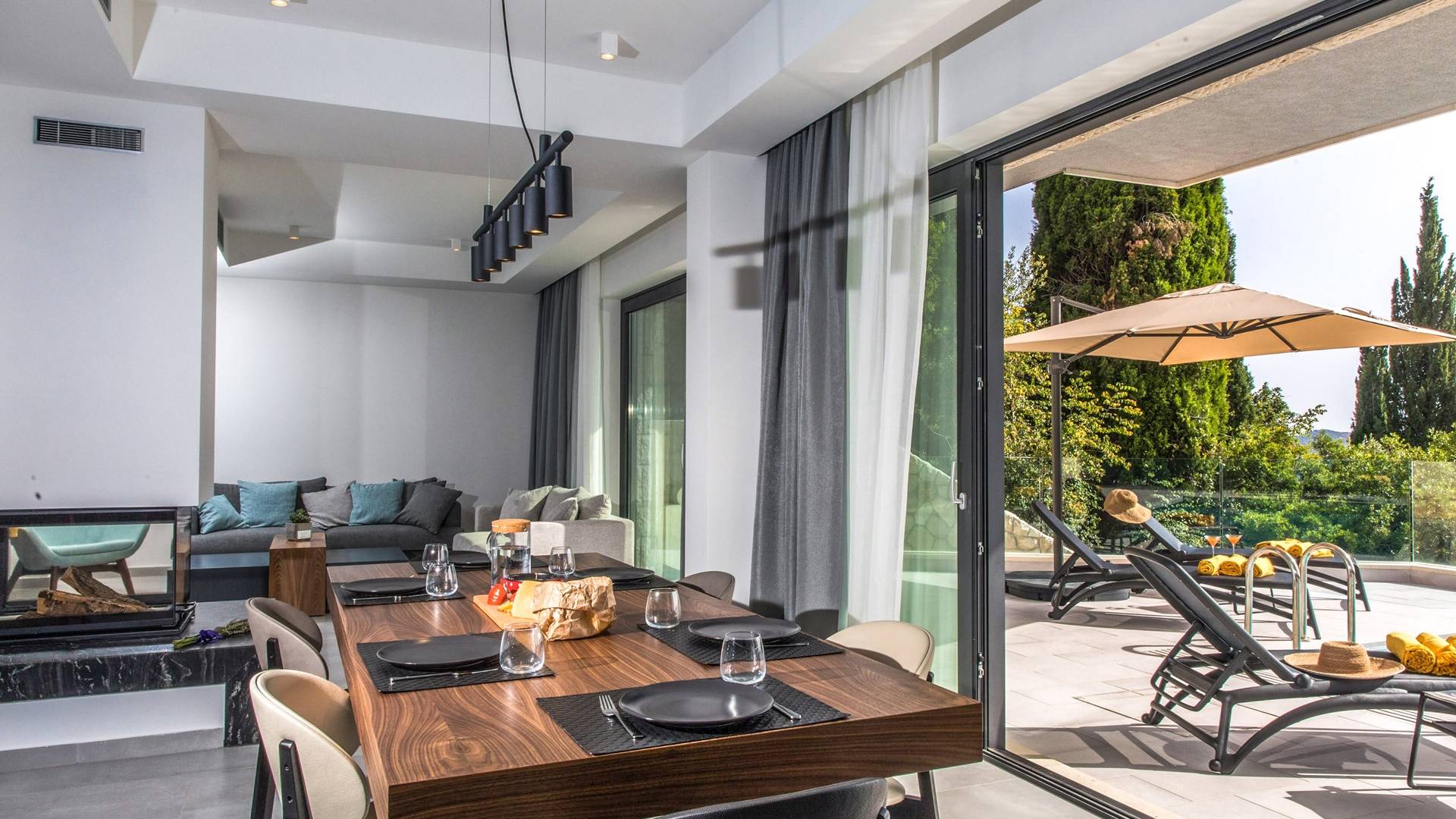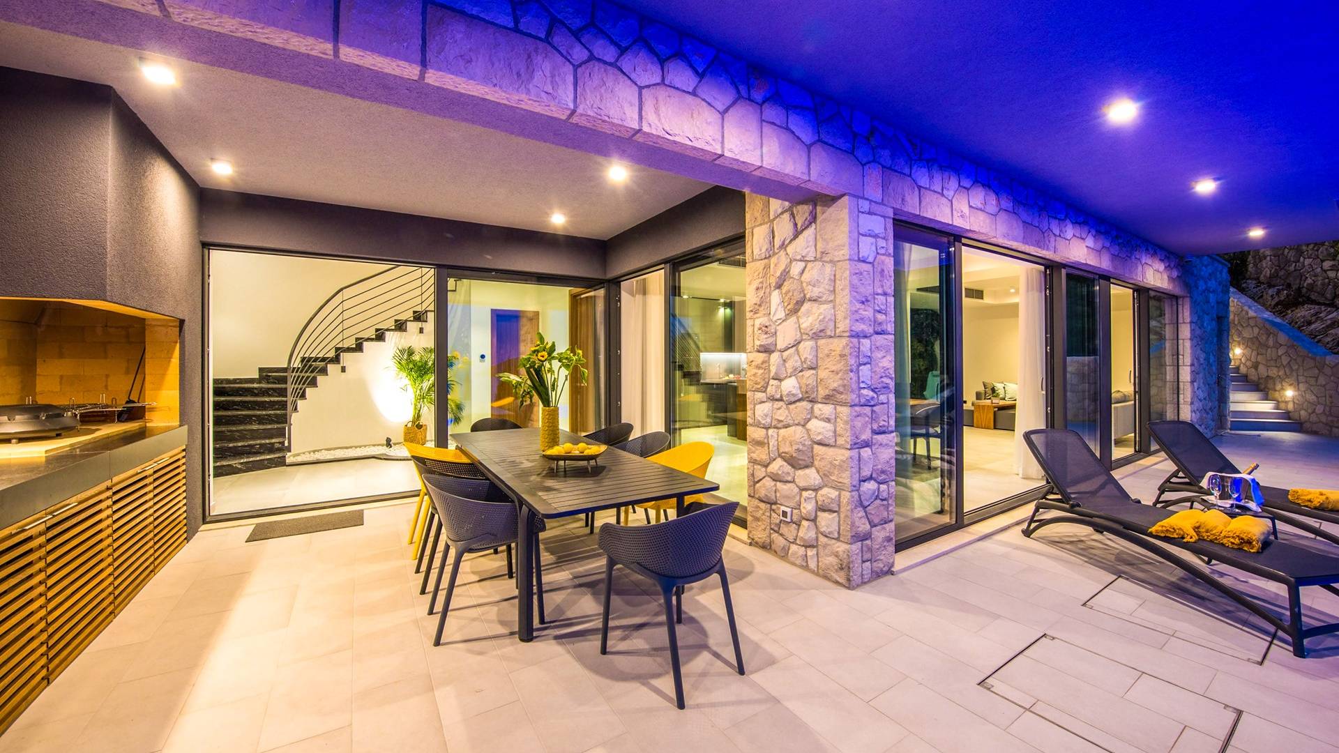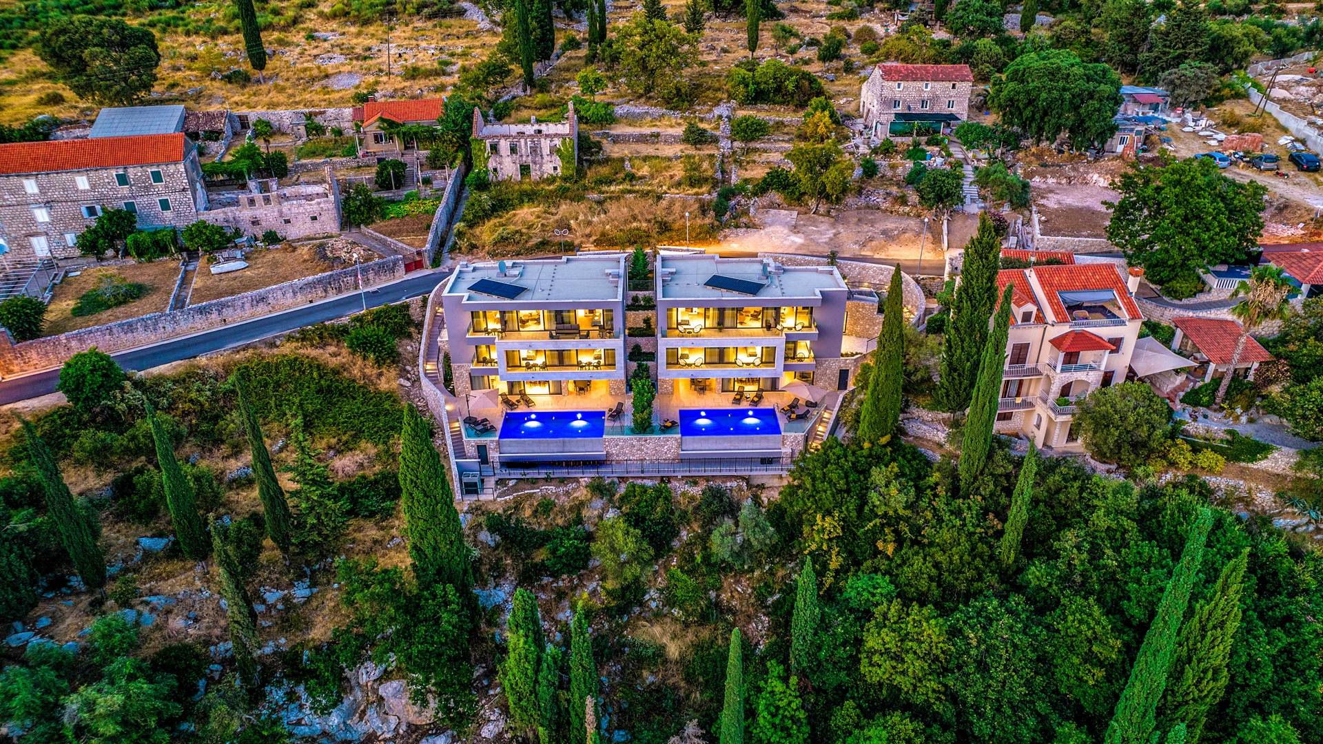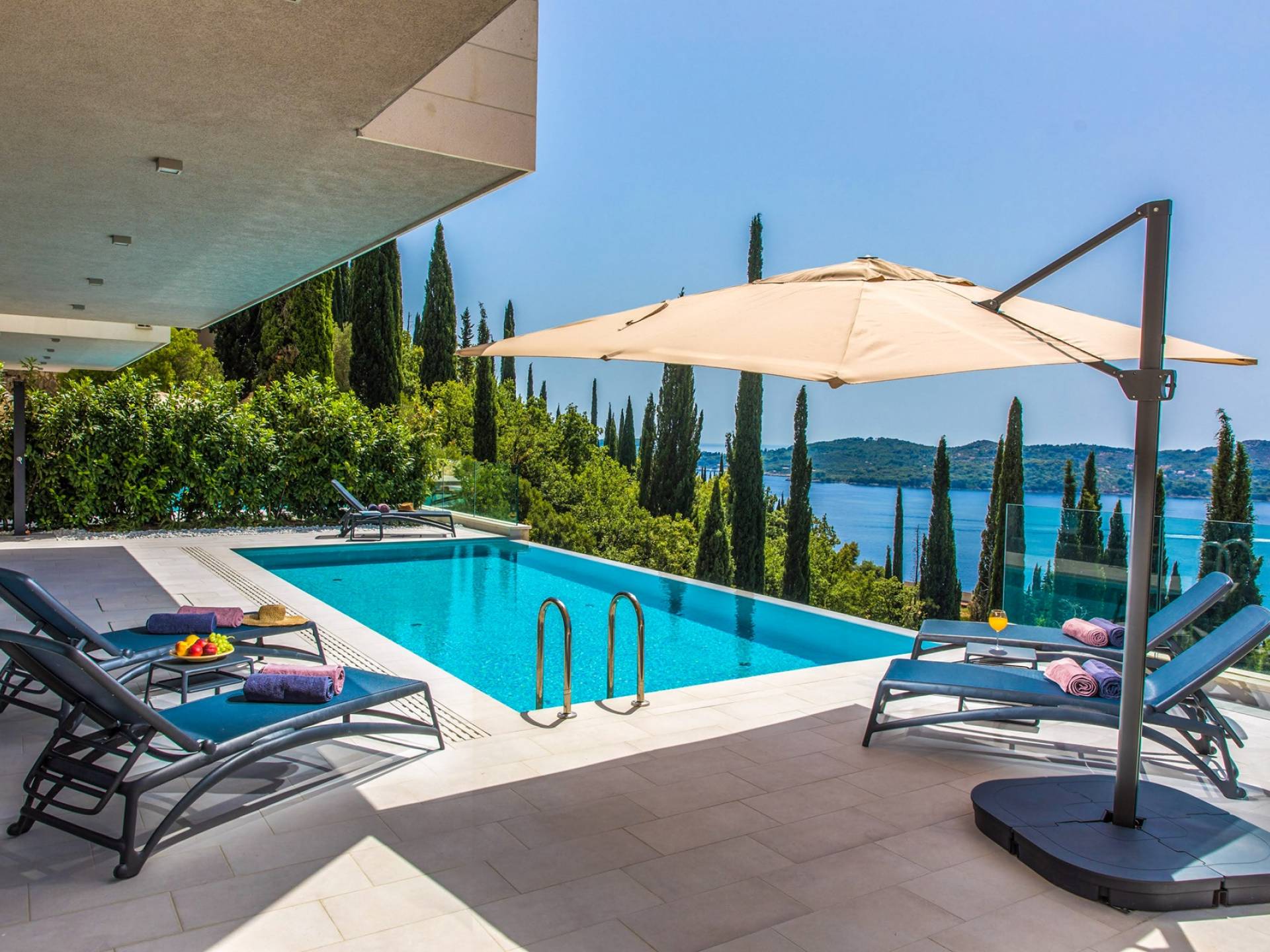 Estas villas de nueva construcción son un maravilloso ejemplo de arquitectura moderna e innovadora, espaciosas y aireadas, y los techos altos y las paredes de vidrio dan la sensación de libertad y abren la vista de las islas Dubrovnik. Los opuestos, es decir, las islas y el mar Adriático por un lado y las colinas circundantes por el otro, hacen que Orasac sea único. En medio de un hermoso paisaje natural, construido en una colina elevada, la villa ofrece una vista fantástica sobre el mar y la costa circundante. La villa con su mobiliario de alta calidad se ha integrado perfectamente en el paisaje de ladera mediterránea y se construyó en terrazas de varios niveles.