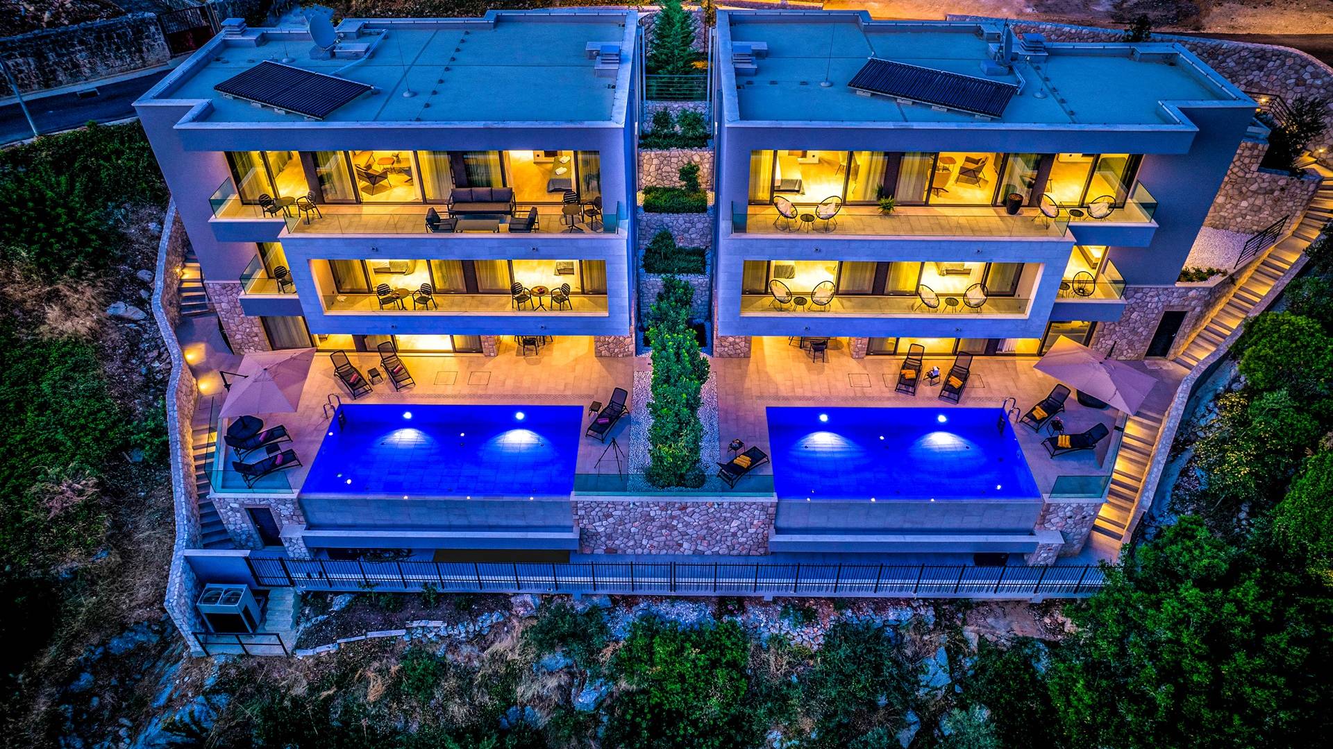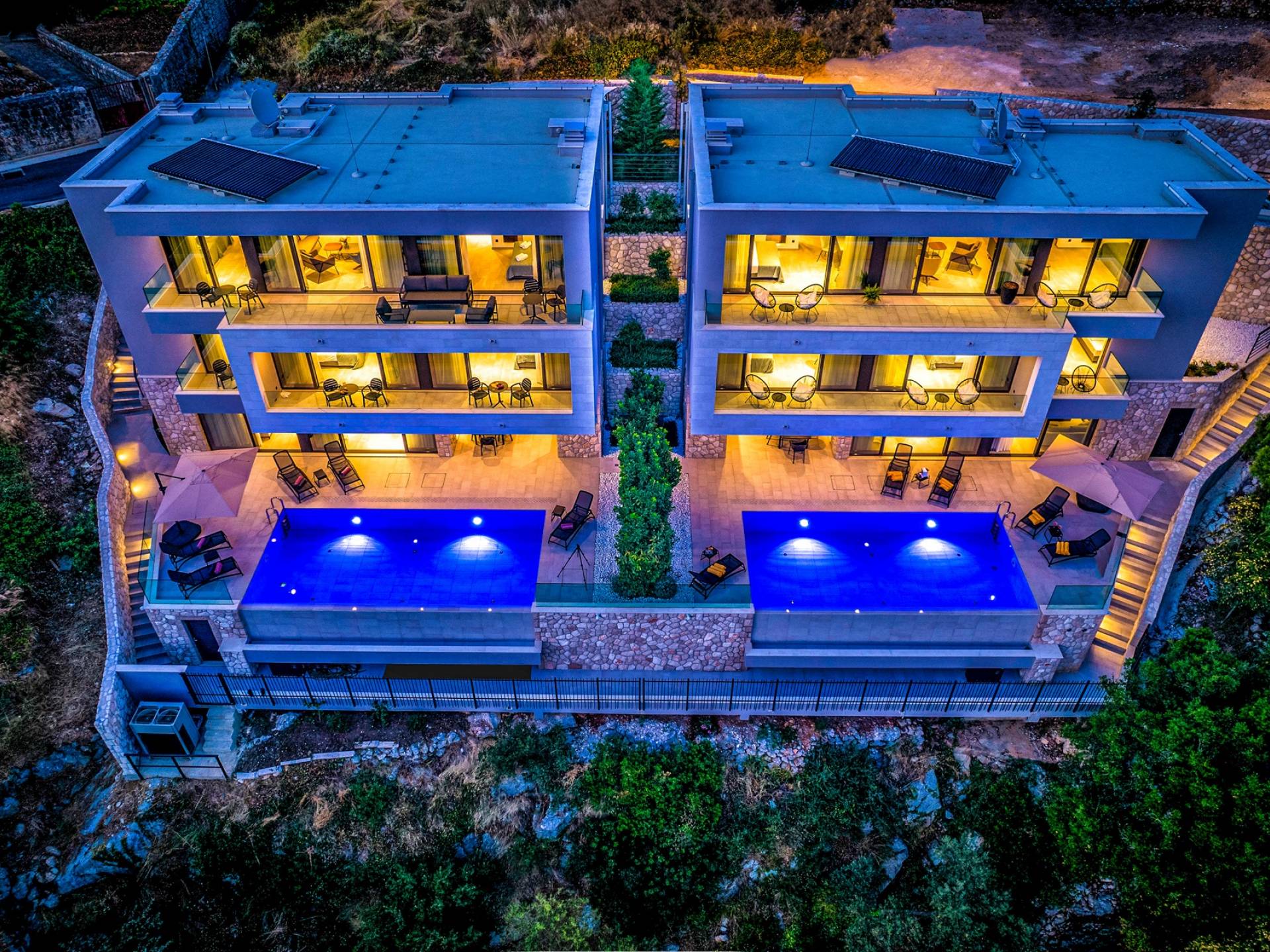 Villa Alba y Rea son villas modernas de tres plantas con 5 dormitorios con baño en suite, ideales para un grupo de 10 personas. Al entrar por las puertas principales de la planta principal, llegará a dos habitaciones dobles. Todas las habitaciones con aire acondicionado tienen ropa de cama agradable con baños opulentos y muchas toallas suaves para mimarse después de un día en el mar o alrededor de la piscina. Las habitaciones ofrecen una vista impresionante directamente del mar o del paisaje verde circundante.
