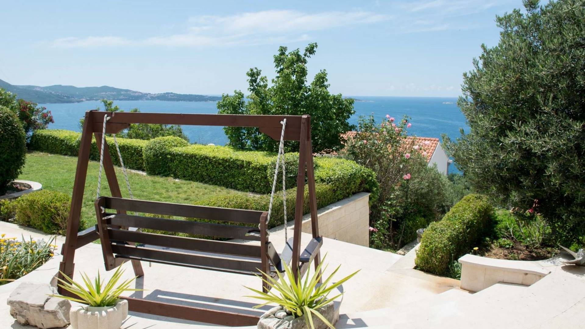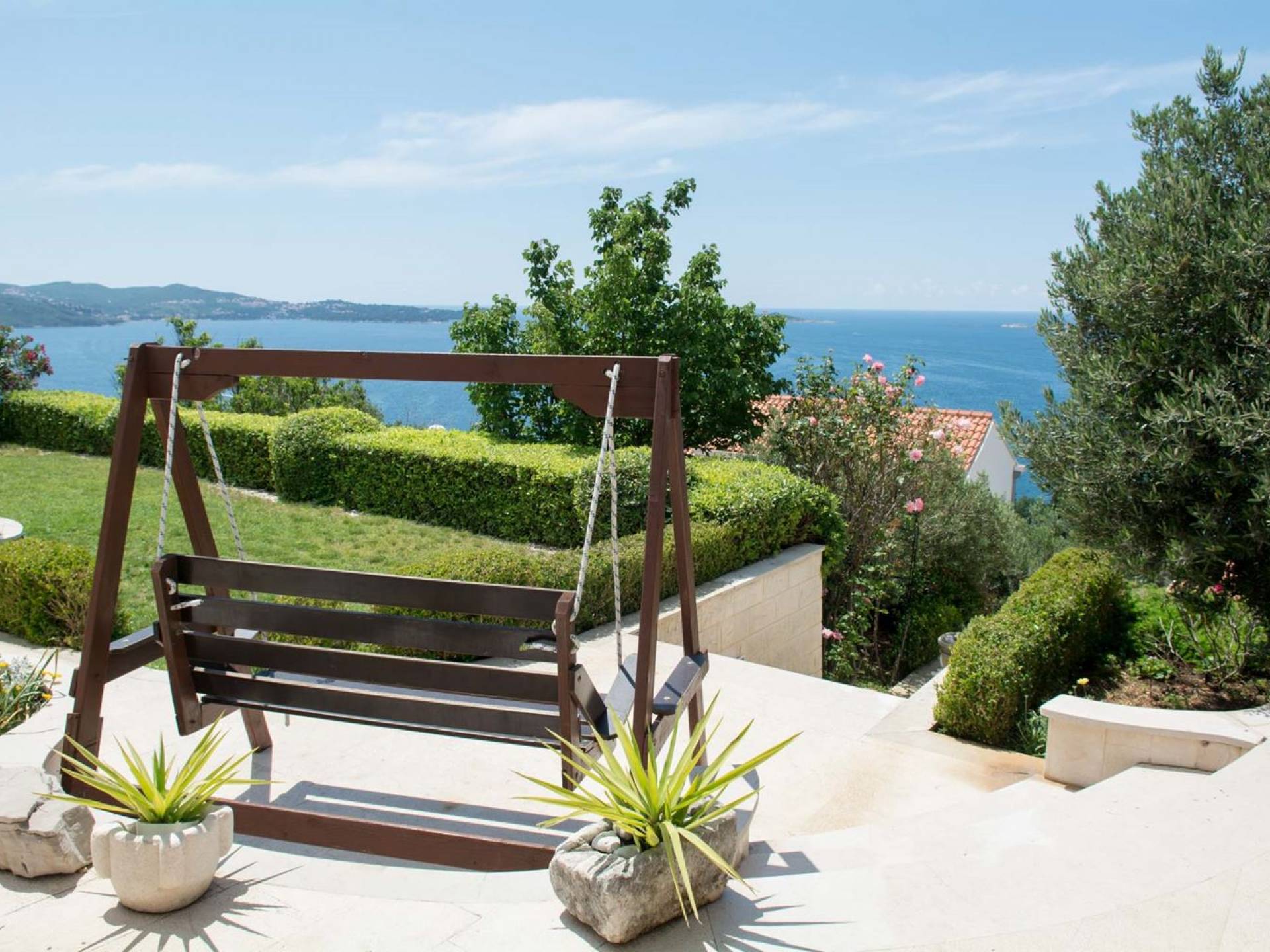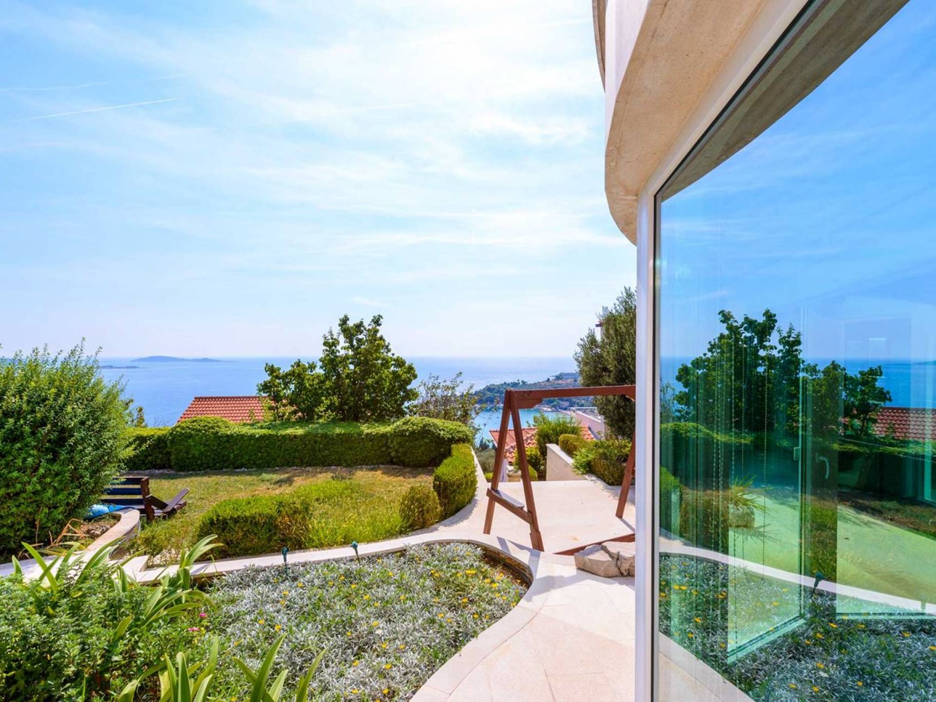 En el primer nivel, donde se encuentra la entrada principal a la villa, hay una gran pérgola con cocina de verano, chimenea y comedor que le brinda la posibilidad de disfrutar de la impresionante vista. En la villa hay una sala de estar con sofás y una vista panorámica única del mar y la naturaleza circundante. El jardín circundante incluye, además de una variedad de árboles, plantas y flores, una variedad de hierbas, junto con un espacioso garaje cubierto para 3 autos, estacionamiento adicional no cubierto y videovigilancia de toda la instalación: solo algunos de los detalles proporcionado por una de las residencias más bellas de toda la región de Dubrovnik. Alrededor de la villa hay paredes o árboles para que nadie pueda entrar dentro de la propiedad.