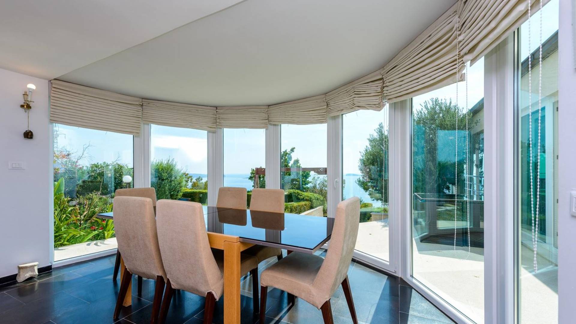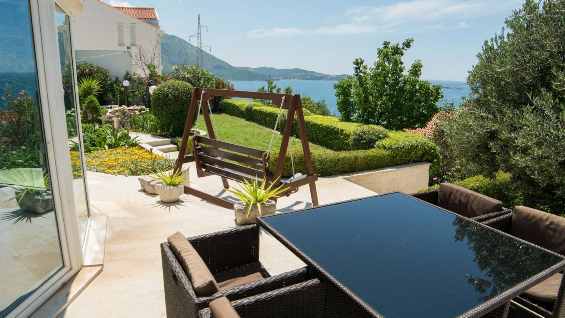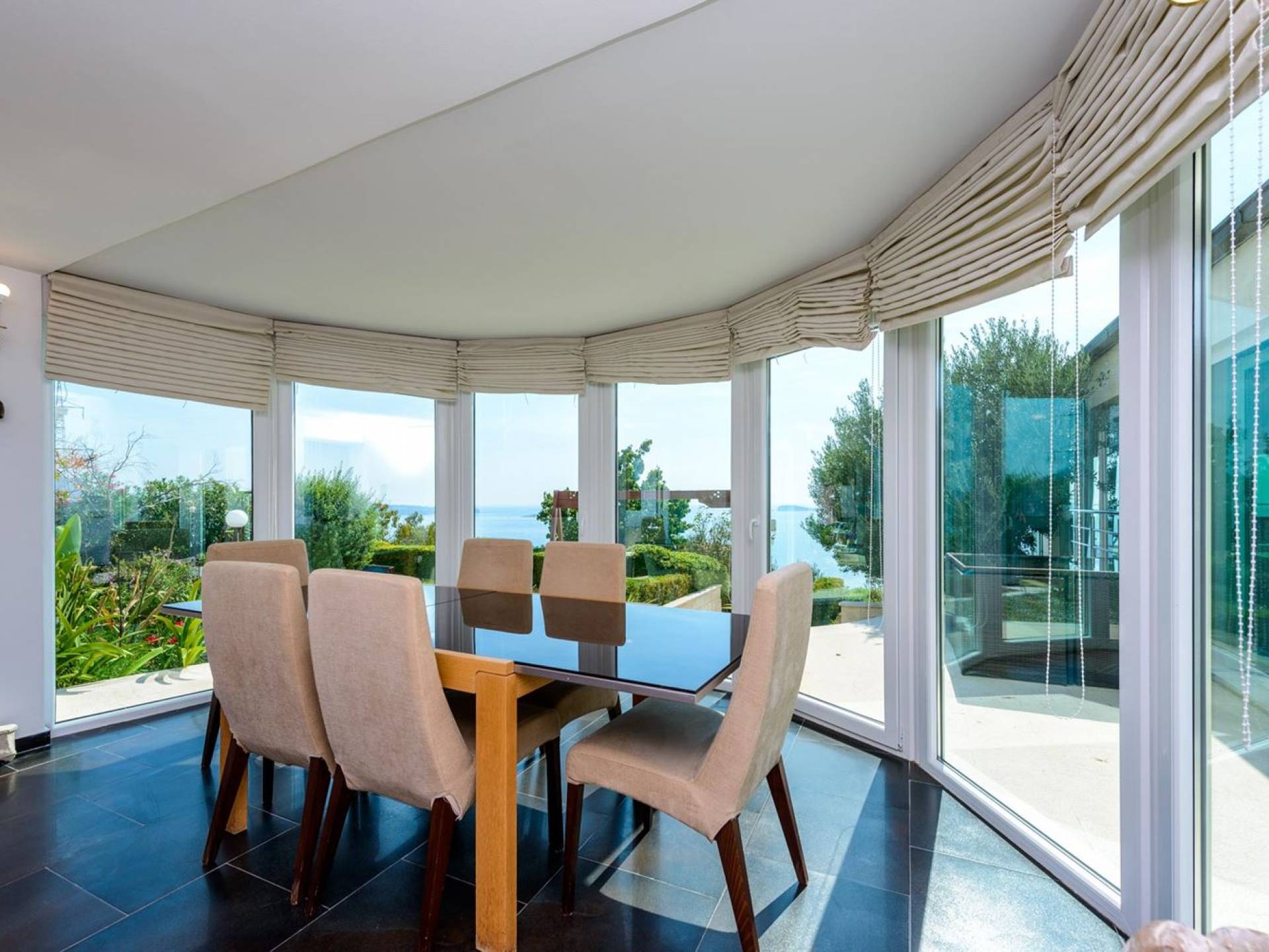 En el primer nivel, donde se encuentra la entrada principal a la villa, hay una gran pérgola con cocina de verano, chimenea y comedor que le brinda la posibilidad de disfrutar de la impresionante vista. En la villa hay una sala de estar con sofás y una vista panorámica única del mar y la naturaleza circundante. El jardín circundante incluye, además de una variedad de árboles, plantas y flores, una variedad de hierbas, junto con un espacioso garaje cubierto para 3 autos, estacionamiento adicional no cubierto y videovigilancia de toda la instalación: solo algunos de los detalles proporcionado por una de las residencias más bellas de toda la región de Dubrovnik. Alrededor de la villa hay paredes o árboles para que nadie pueda entrar dentro de la propiedad.